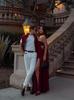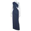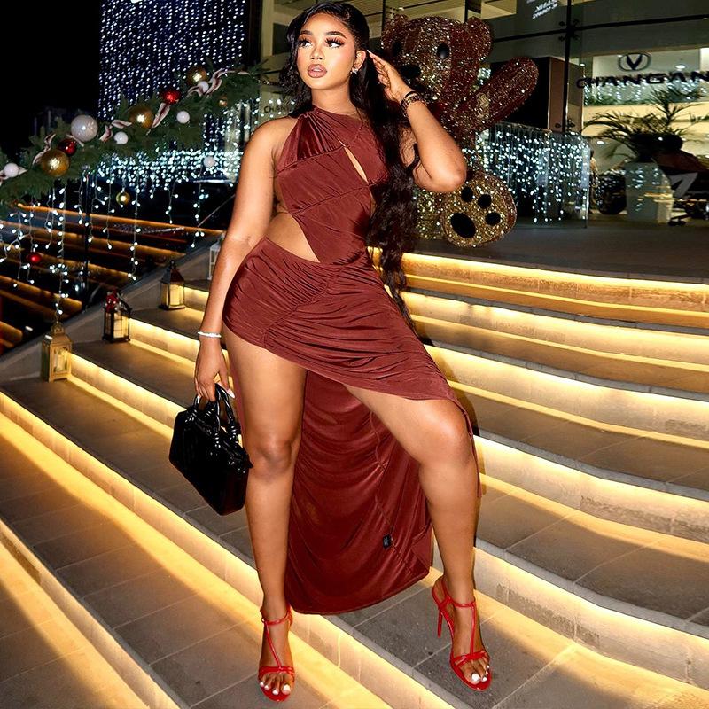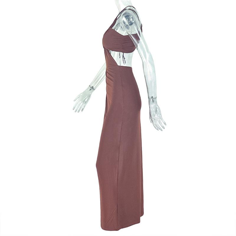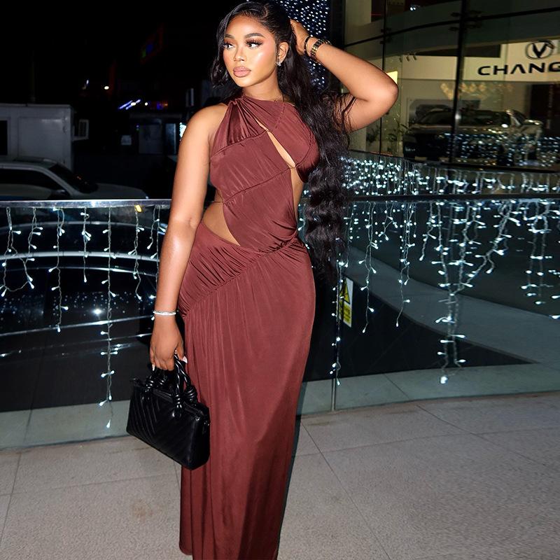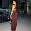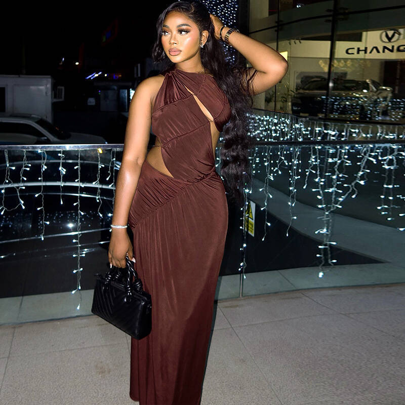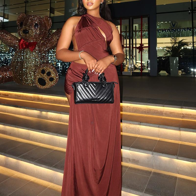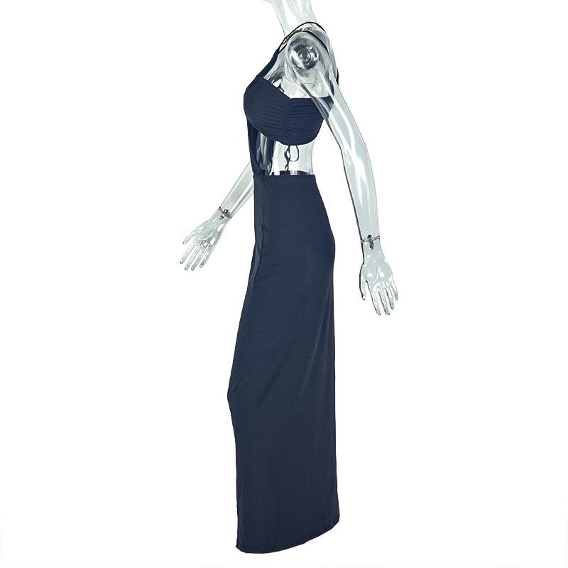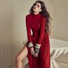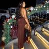 Vestido de noche elegante y sexy de color liso para mujer, estilo europeo y americano, ajustado, sin espalda, con abertura irregular, cuello alto, largo