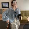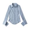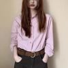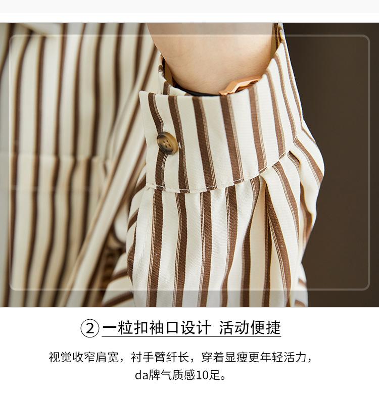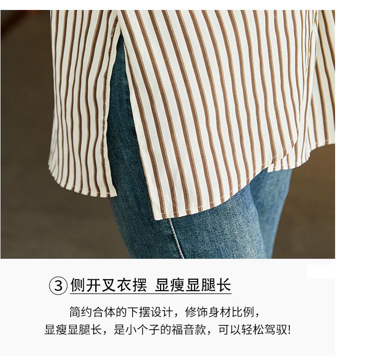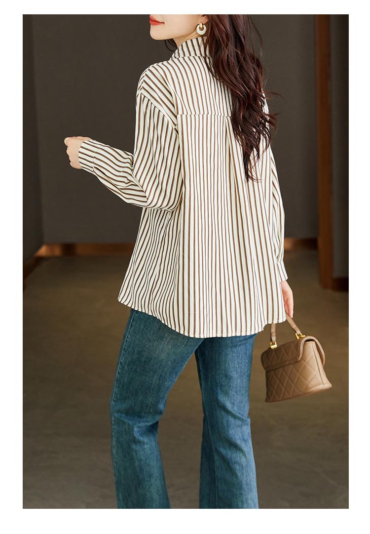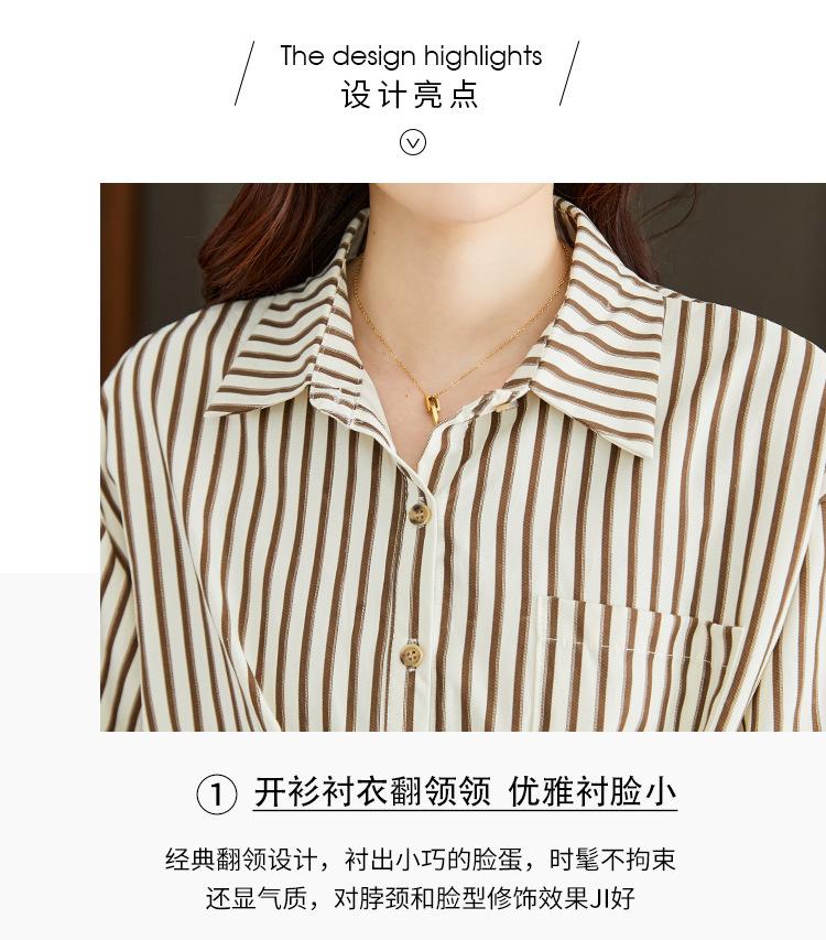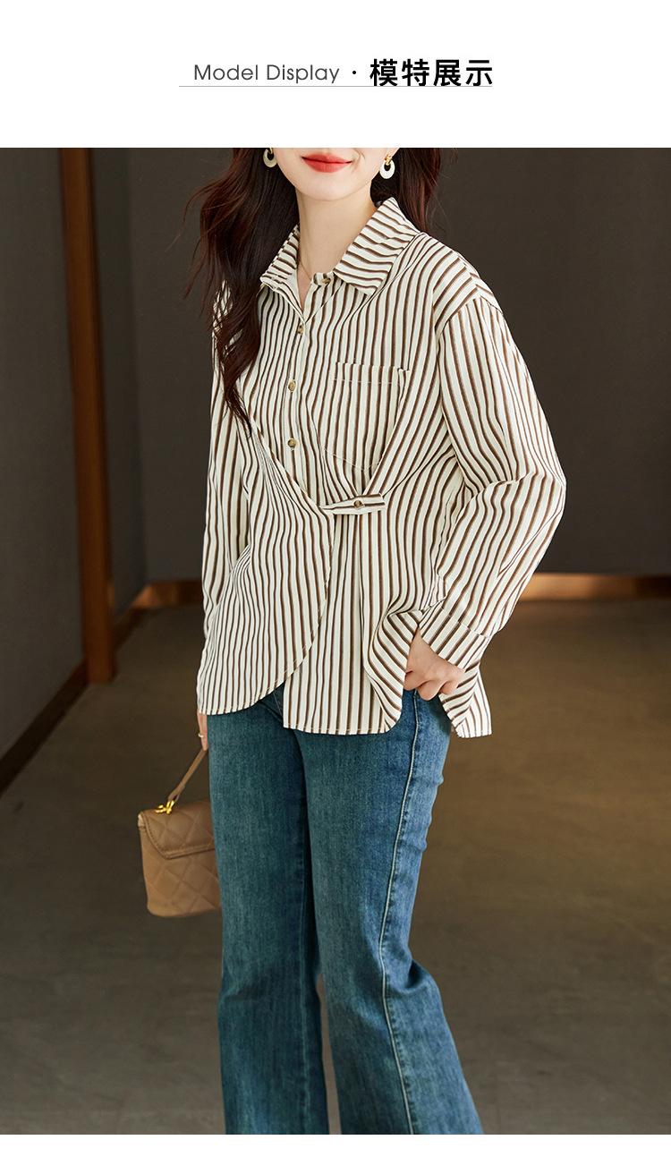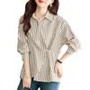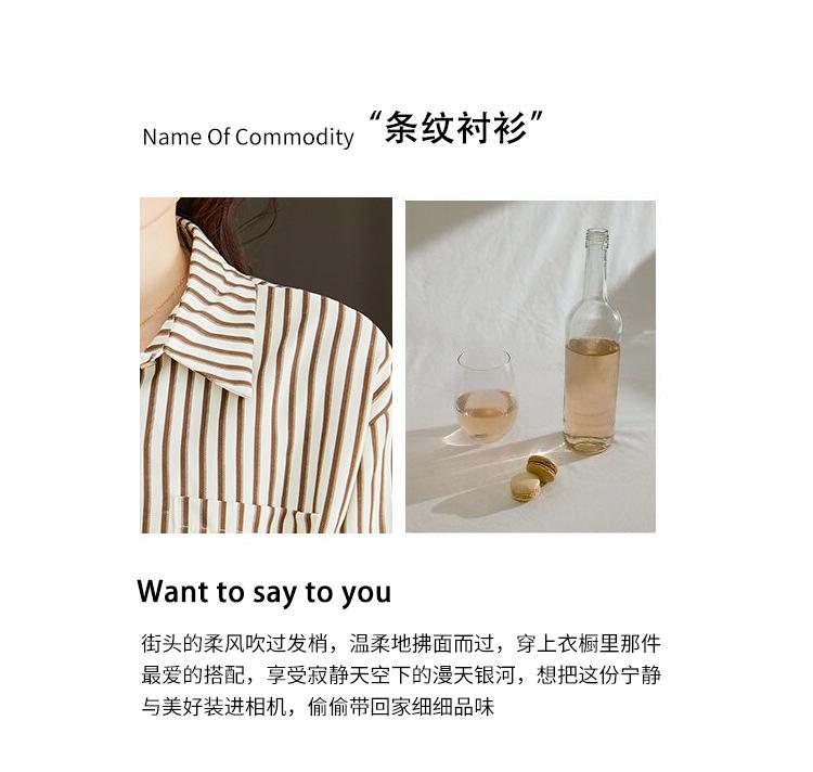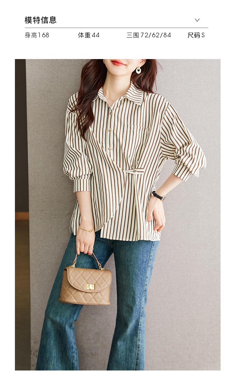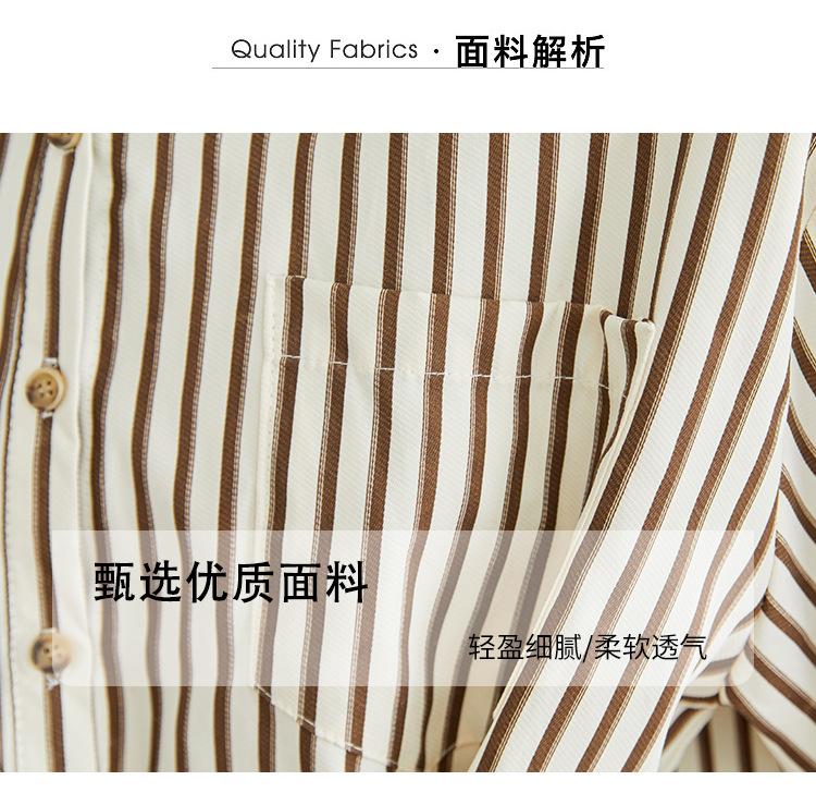 Primavera/Verano 2025 Nuevo Estilo Francés Rayado Color Café Manga Larga Mujer Holgada Asimétrica Commuter Versátil Camisa Casual