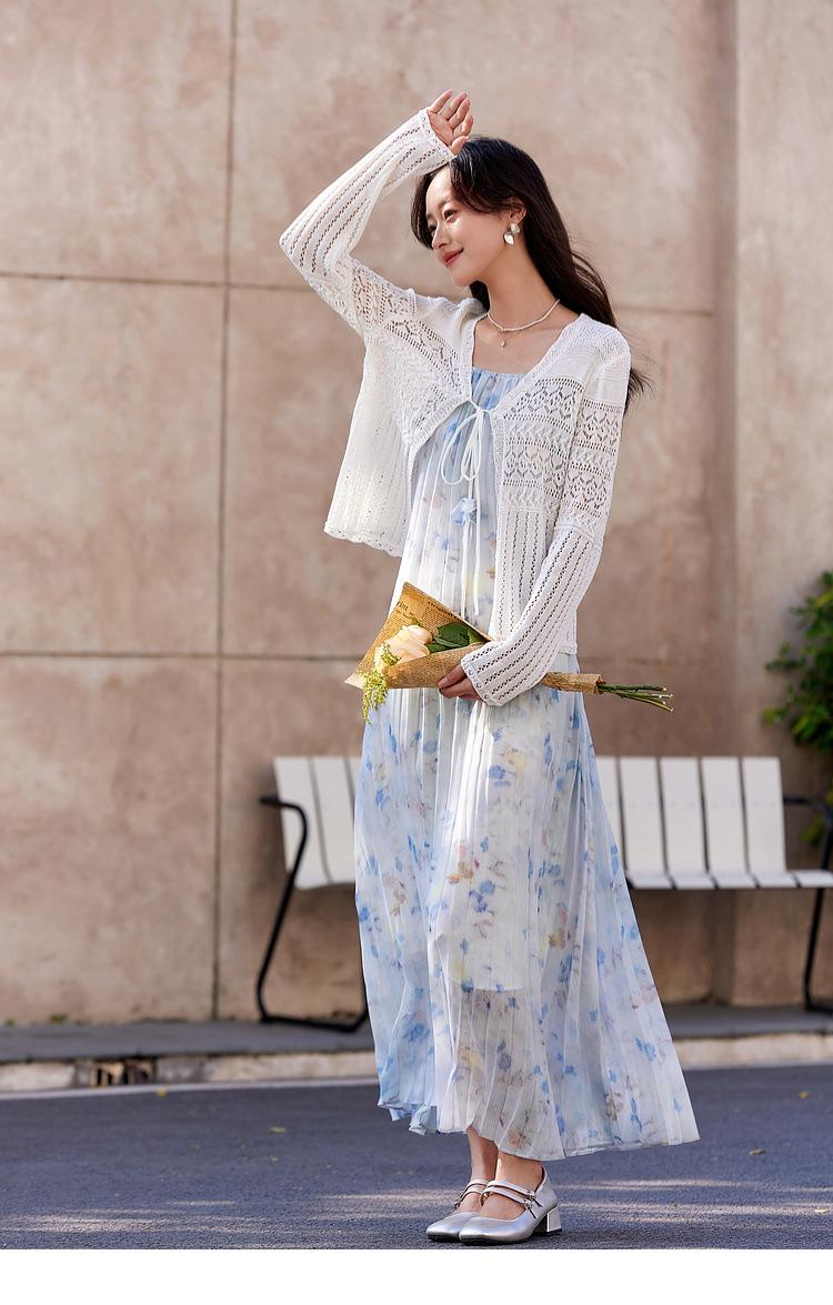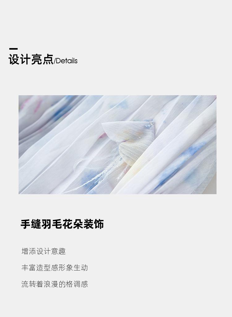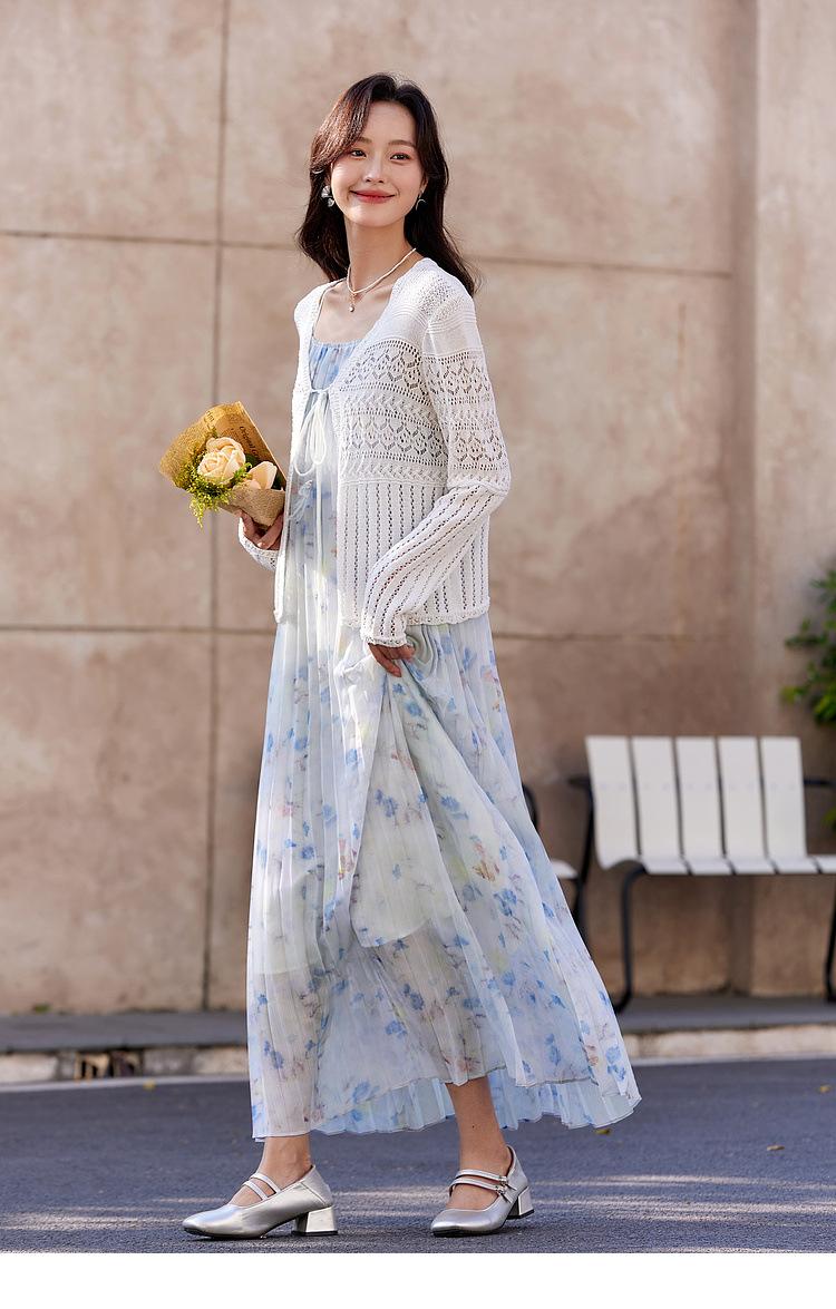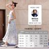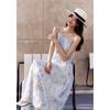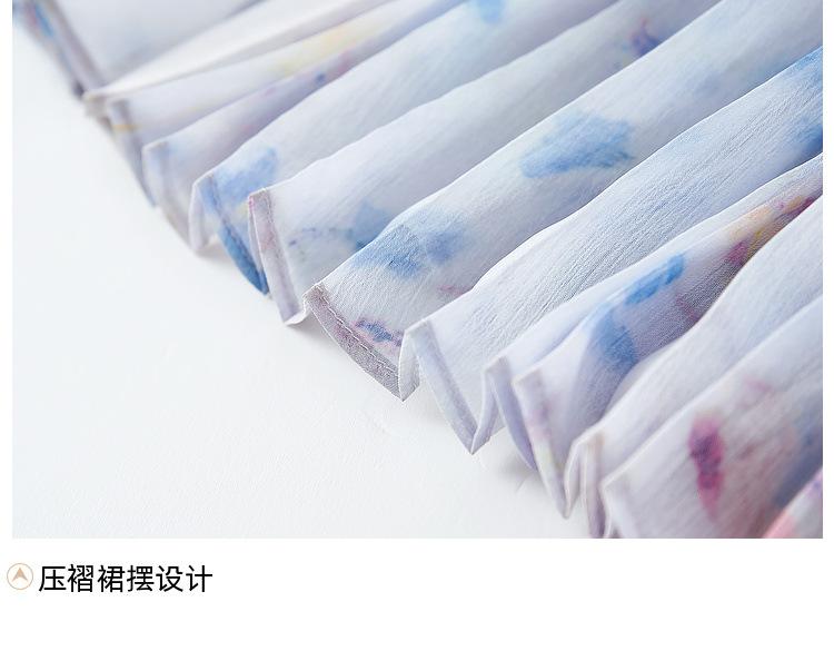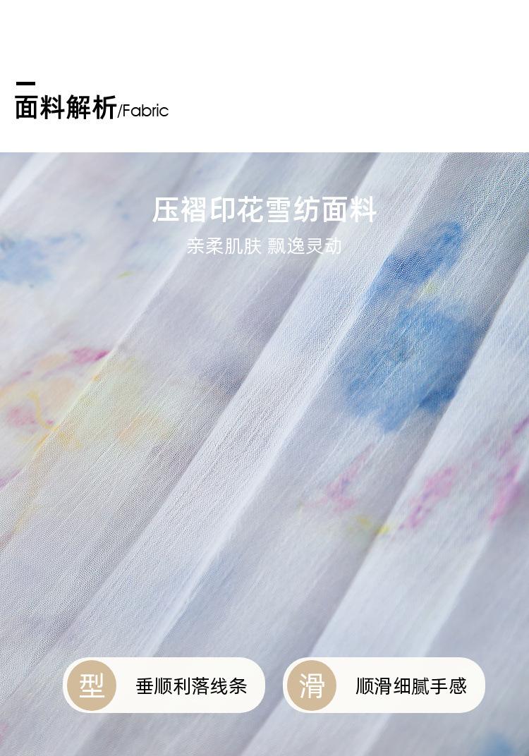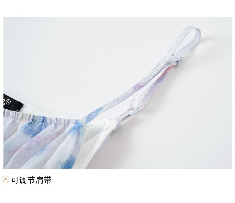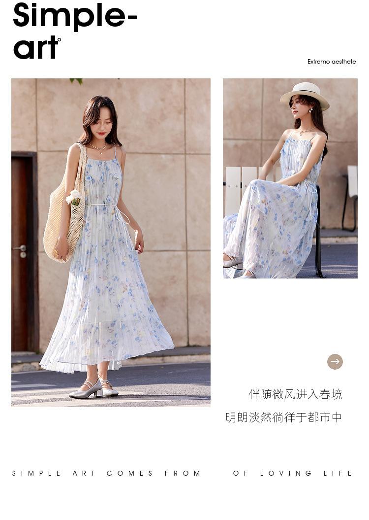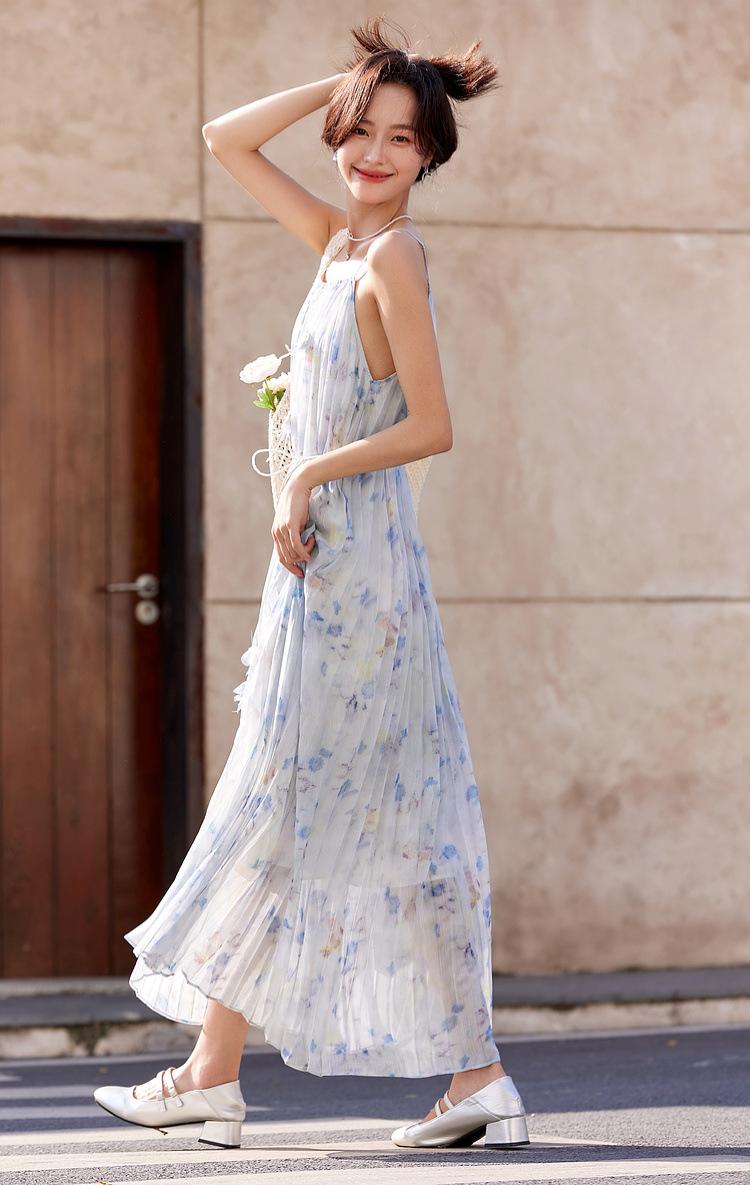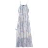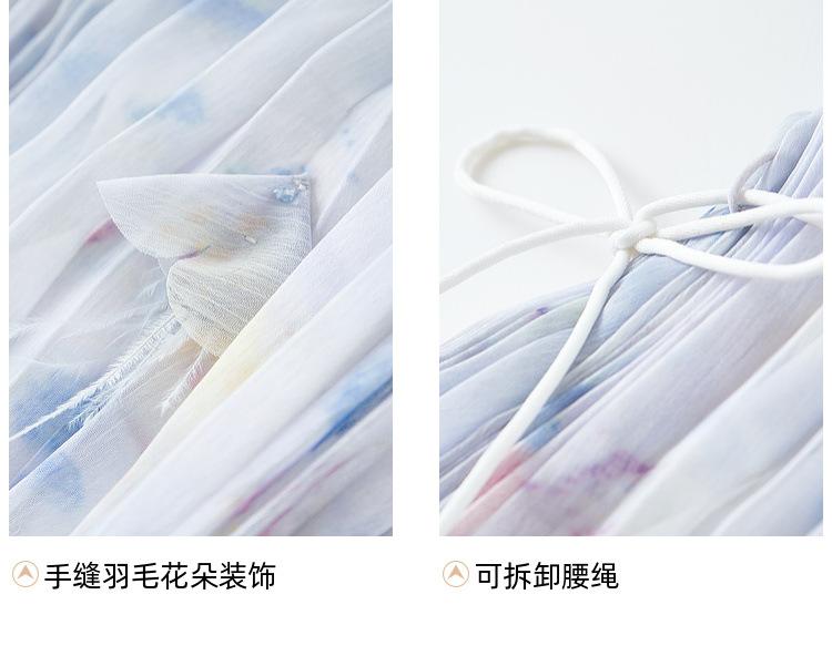 Zhen Xi - Vestido elegante de gasa con cintura alta, estampado plisado y tirantes finos, nuevo modelo DQ297