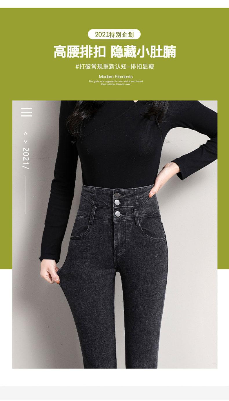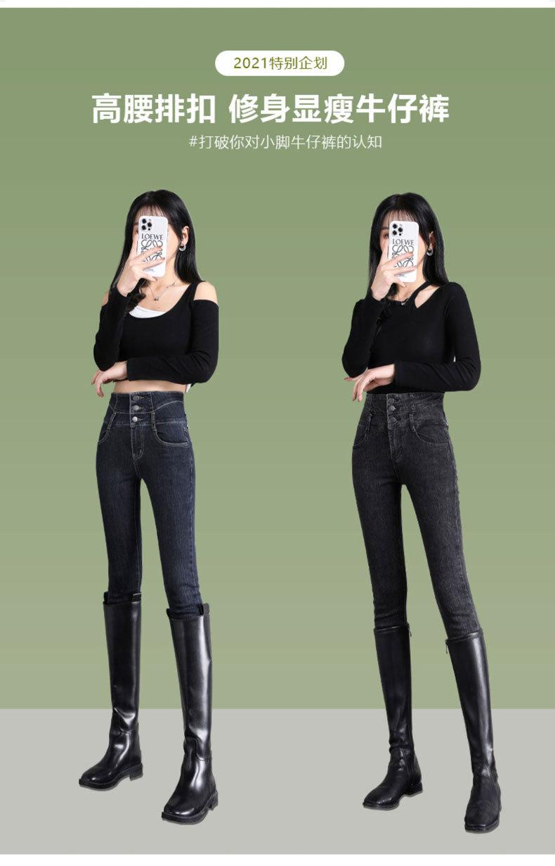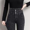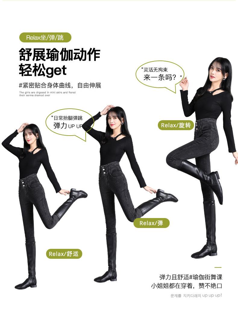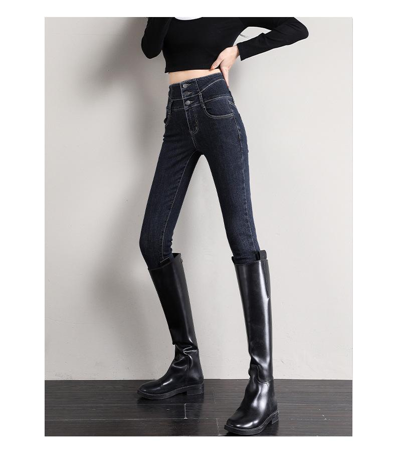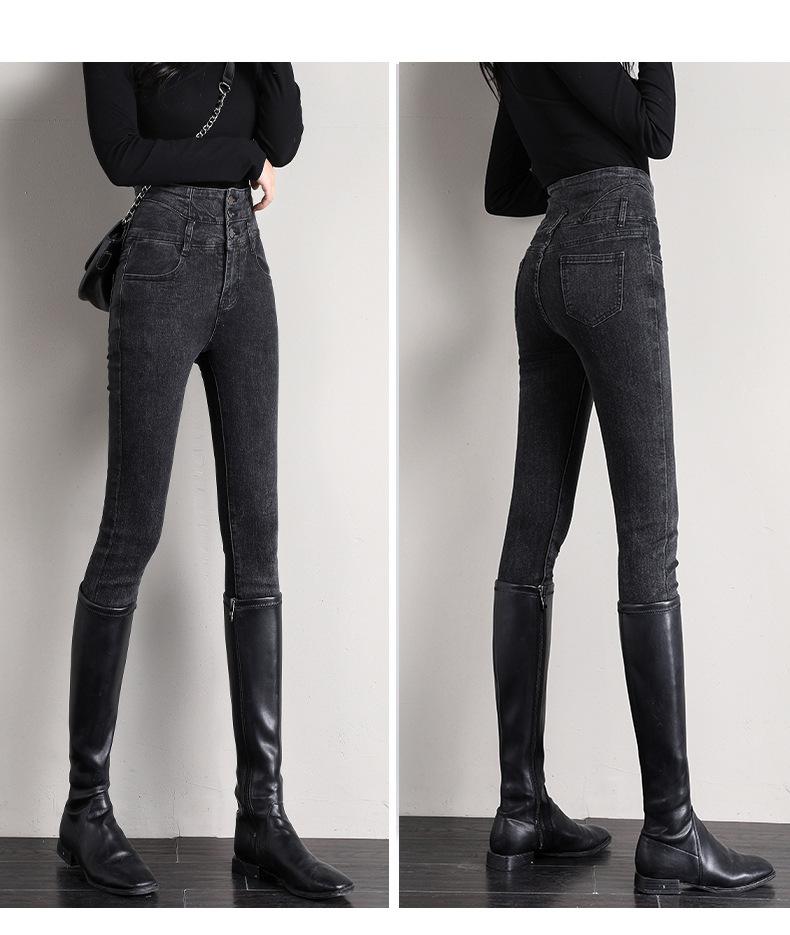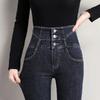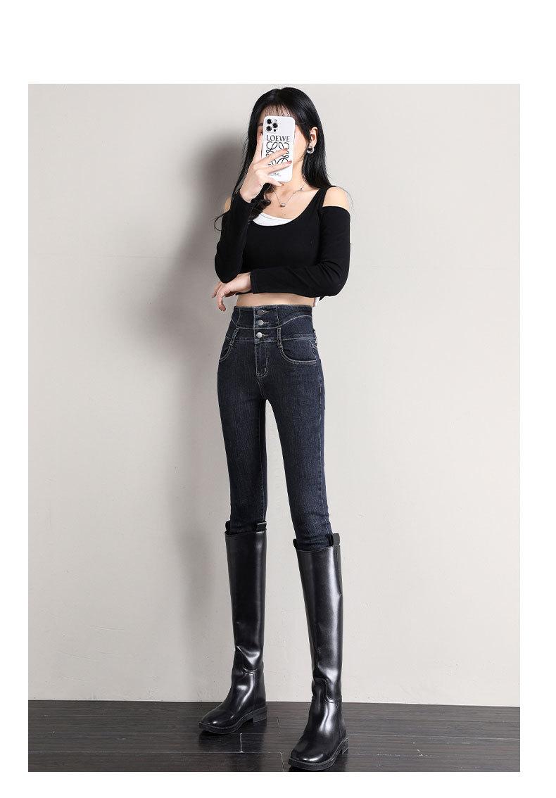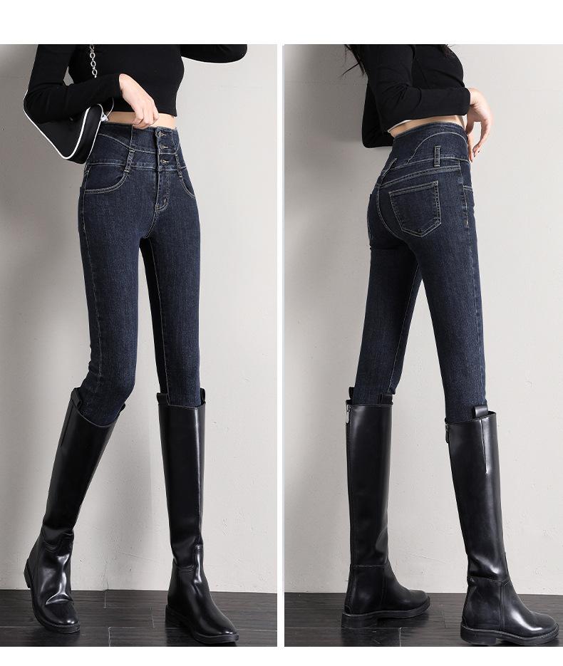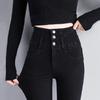 Jeans Elásticos de Cintura Alta Levanta Caderas para Mujer 2025 Primavera y Otoño Nuevo Pequeño Ajustado Adelgazante Recto Lápiz Pantalones