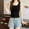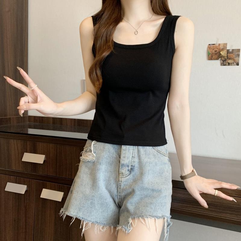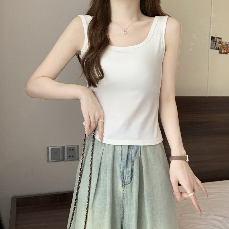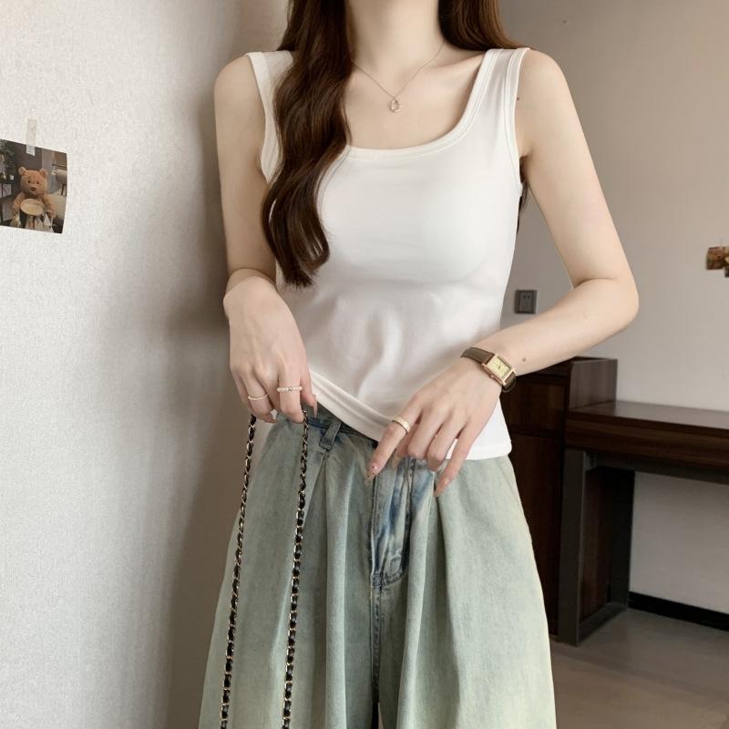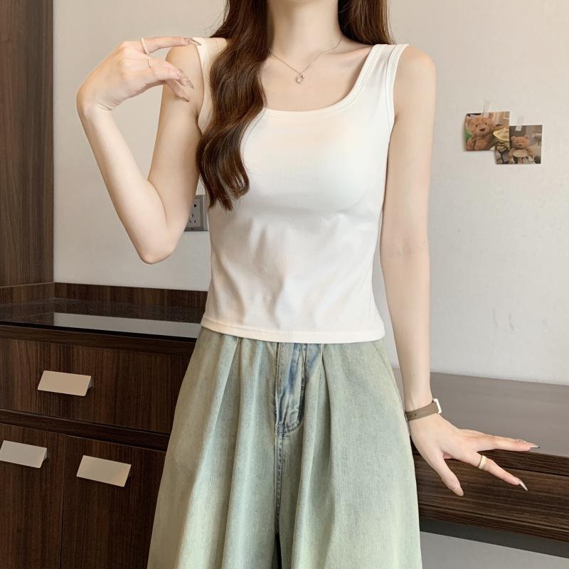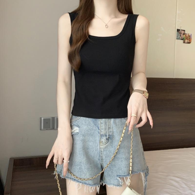 Ropa Exterior de Verano y Ropa Interior Deportiva Base Chaleco de Color Puro para Mujer Ajustado Corto Camisola Top sin Mangas