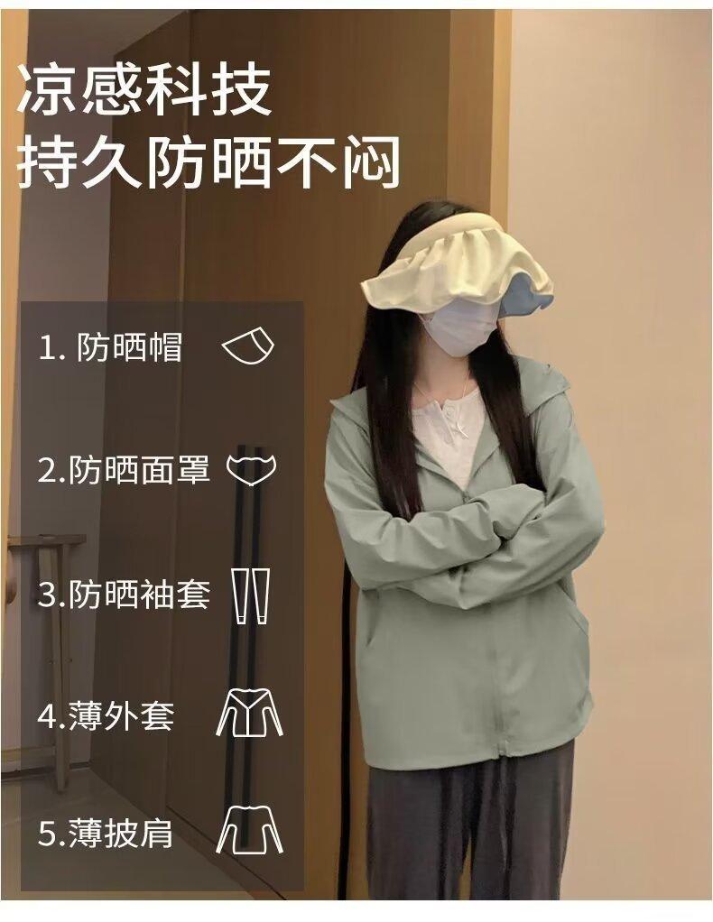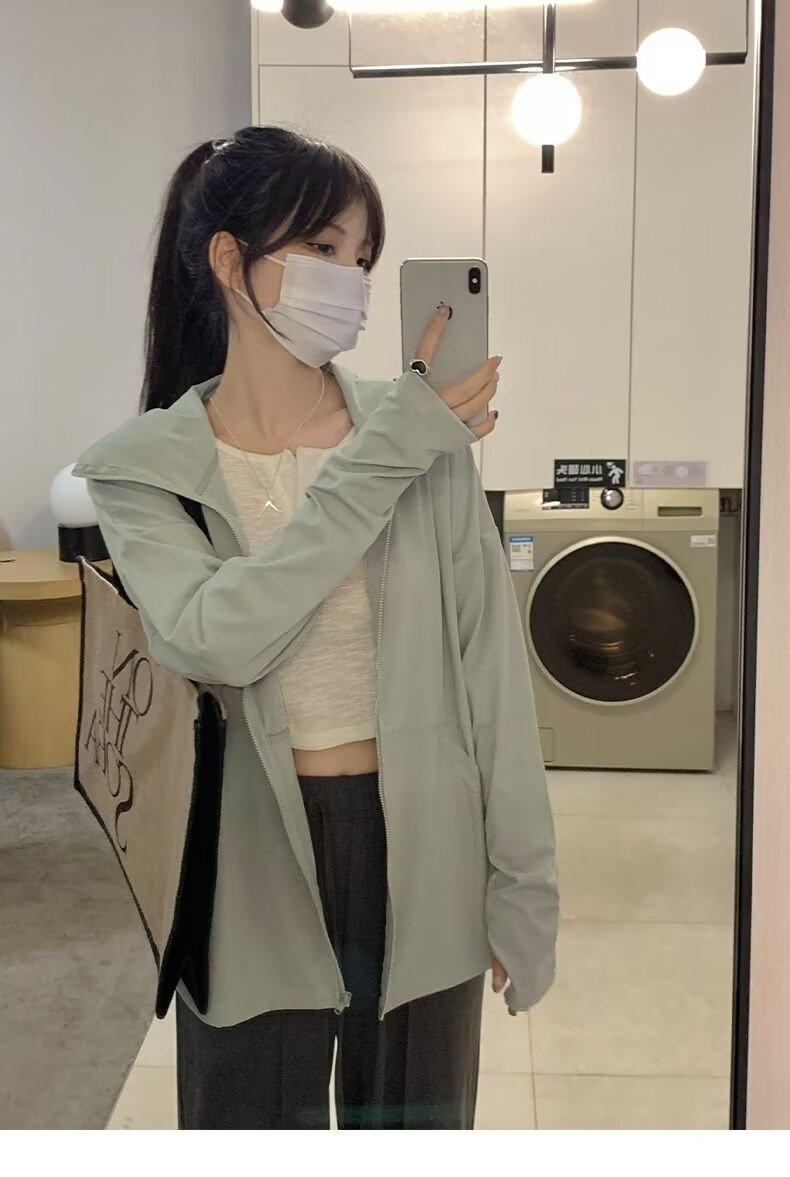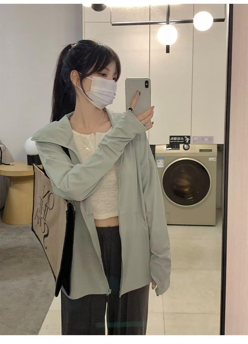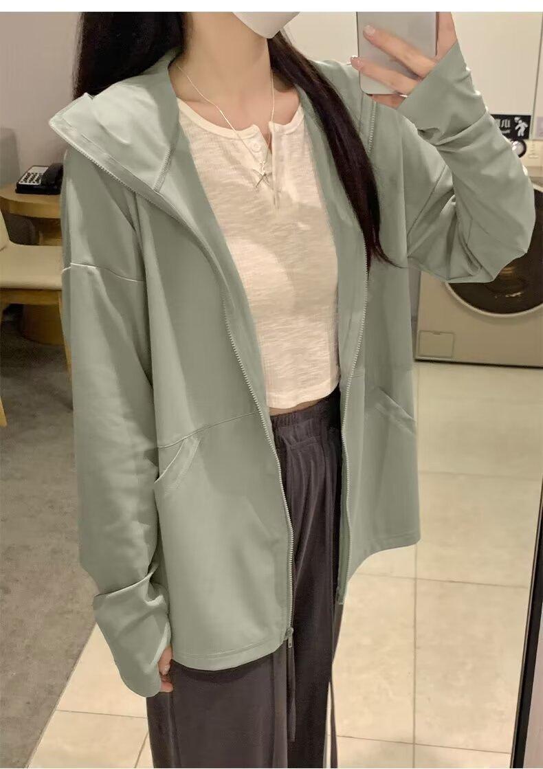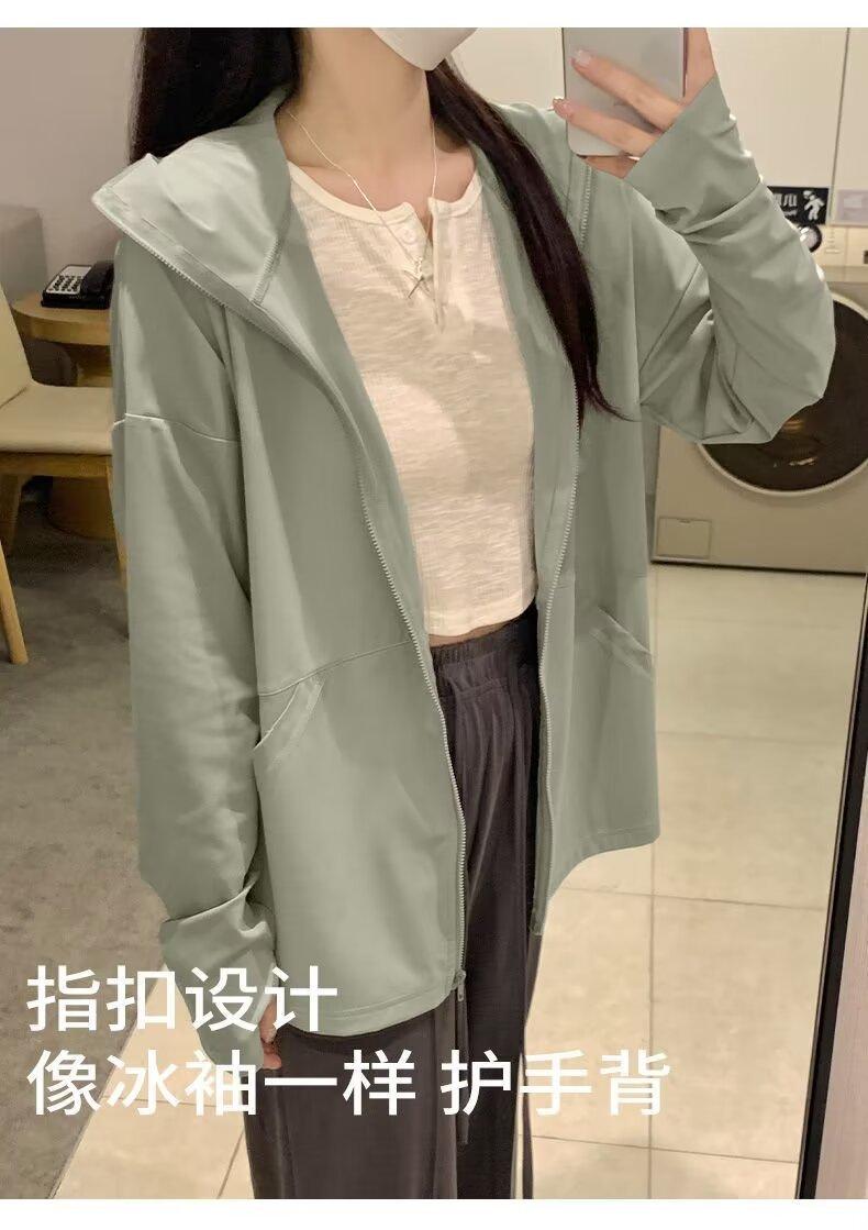 Ropa protectora solar de manga larga anti-ultravioleta para mujer, transpirable, fresca, ligera, con capucha, abrigo corto holgado tipo cárdigan para exteriores