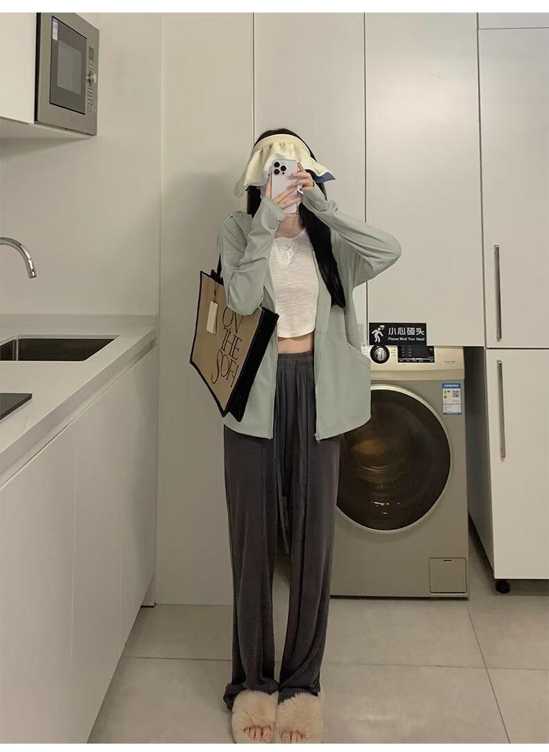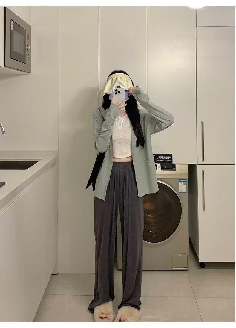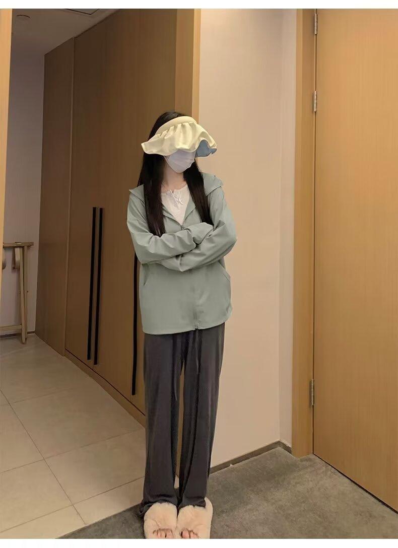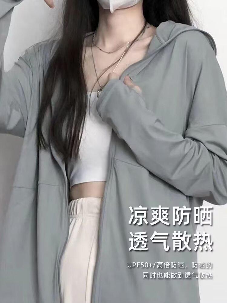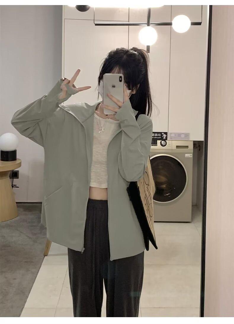 Ropa protectora solar de manga larga anti-ultravioleta para mujer, transpirable, fresca, ligera, con capucha, abrigo corto holgado tipo cárdigan para exteriores