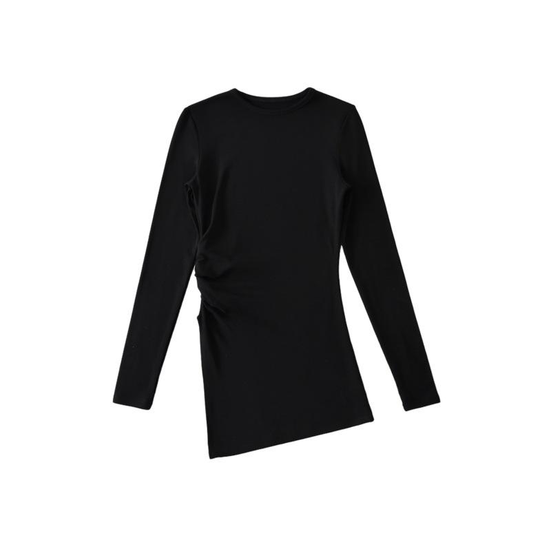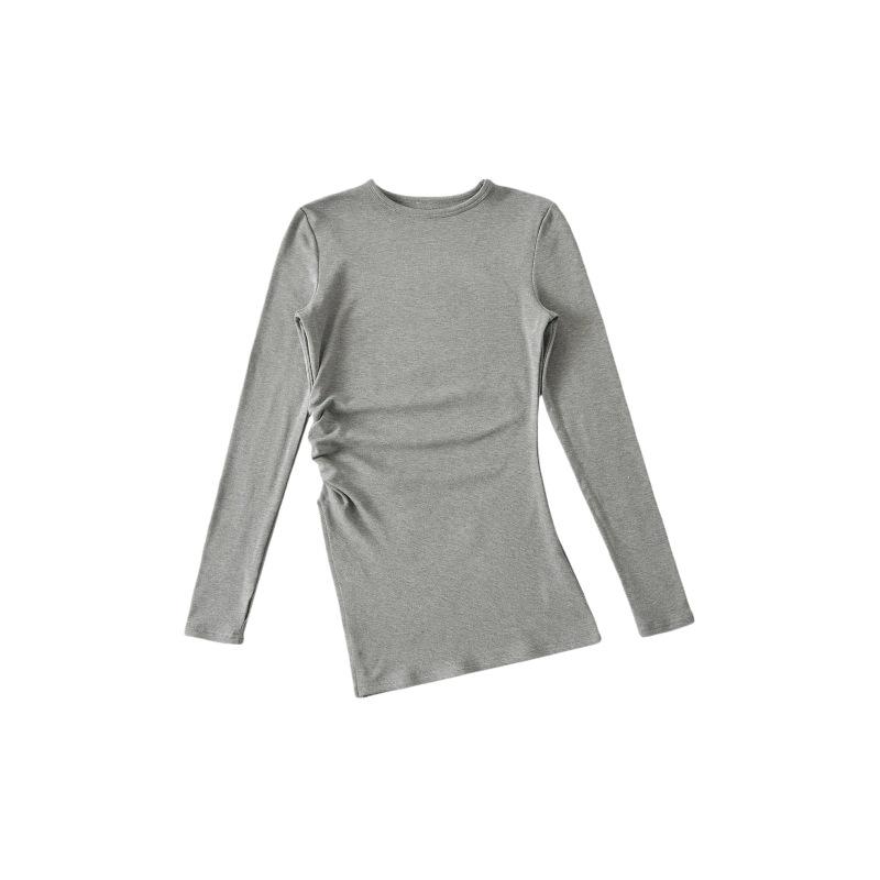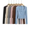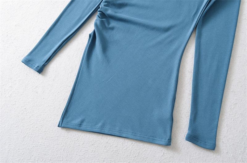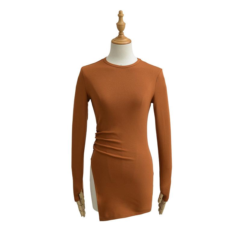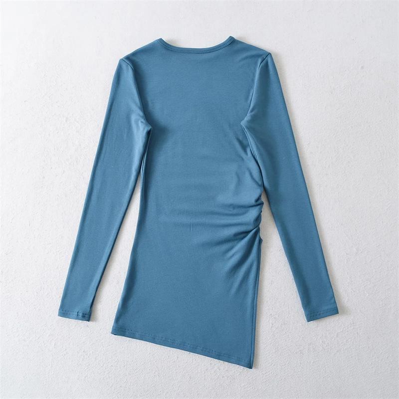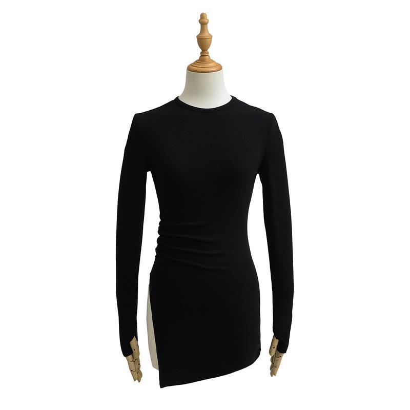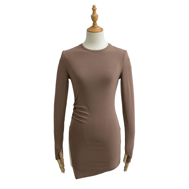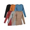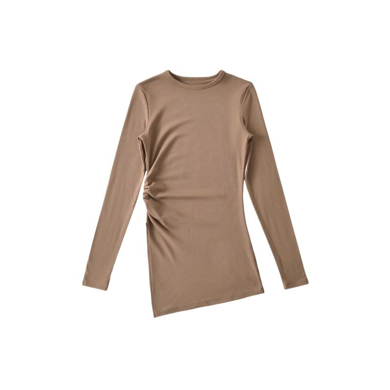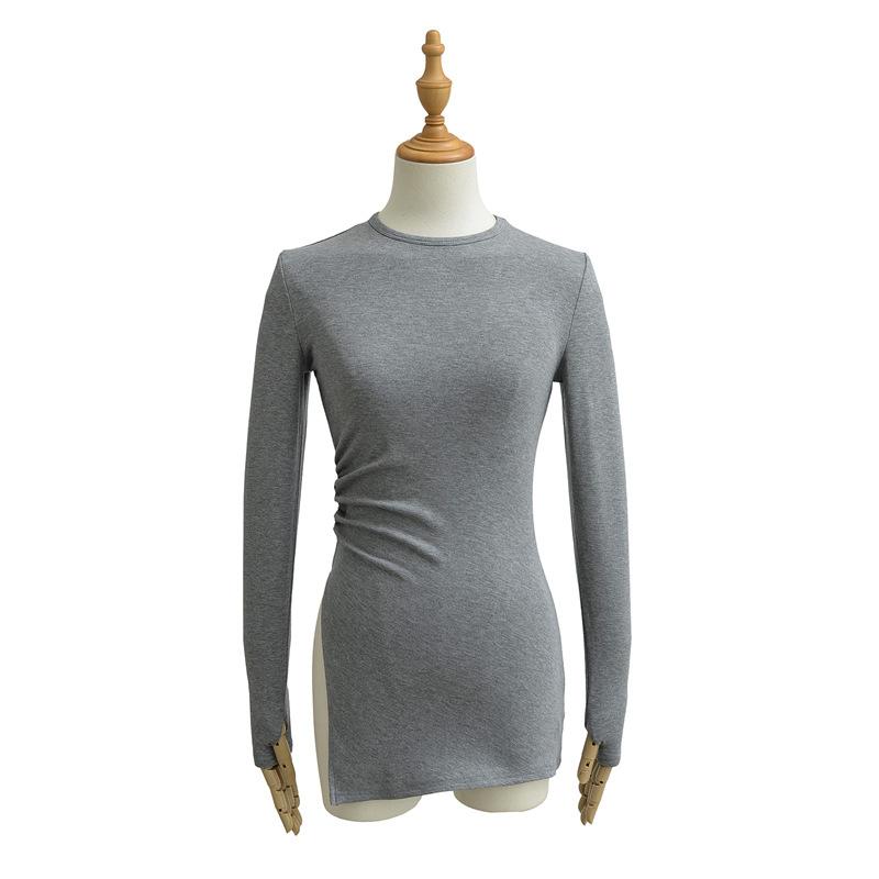 Camiseta americana de cuello redondo, manga larga, forrada con polar, diseño Sense, plisada, ajustada, elástica, de color liso, para mujer