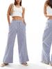 2024 Suministro Transfronterizo Europeo y Americano Pantalones Nuevos Moda Casual Rayas Estampado Cintura Alta Pierna Ancha