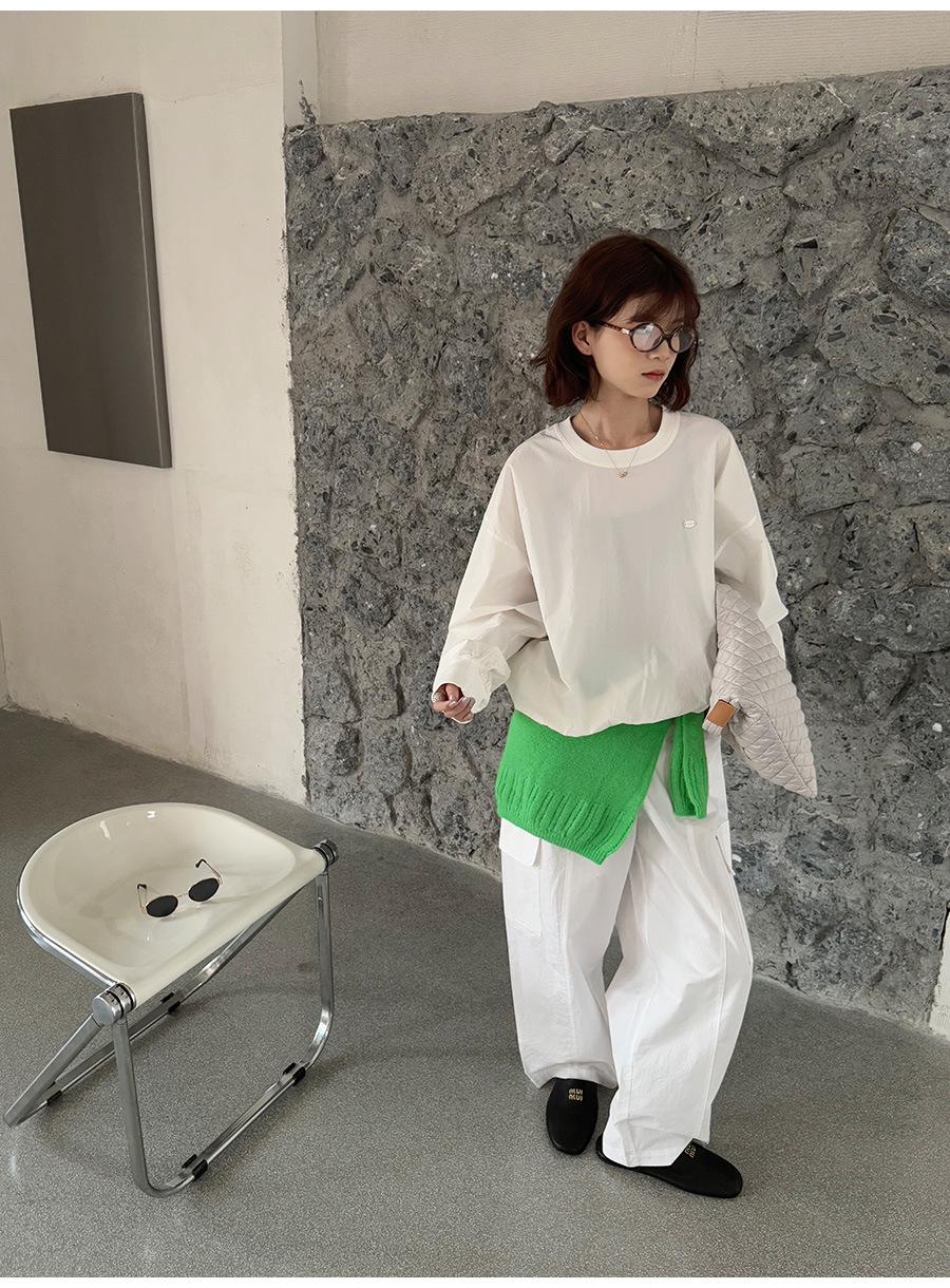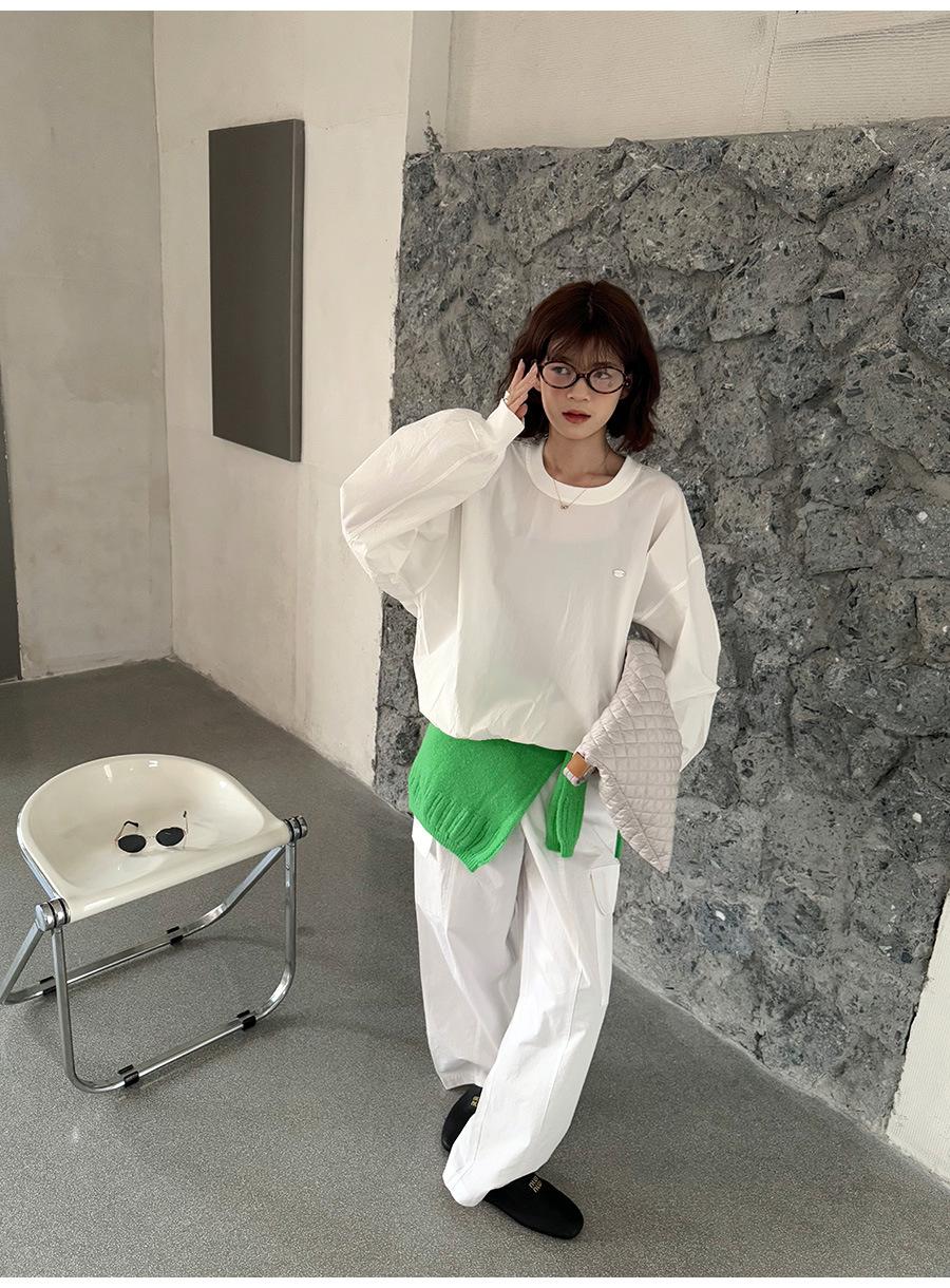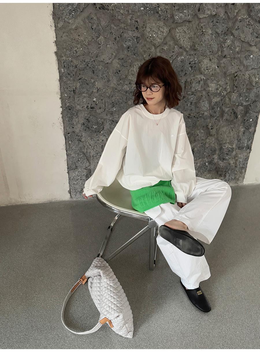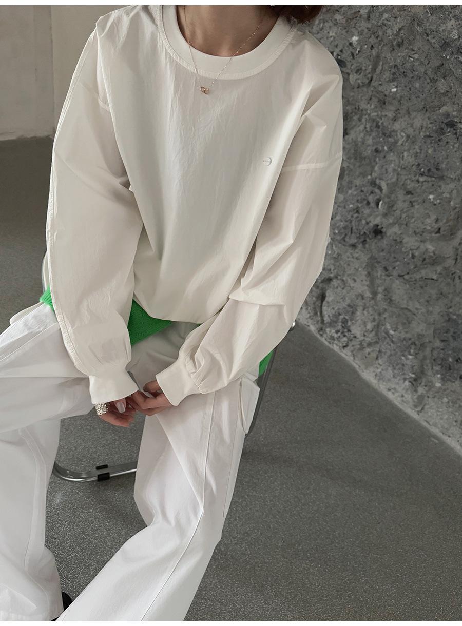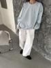 Lino Principios de Otoño Nuevo Camiseta Sudadera Cuello Redondo para Mujer 2025 Estilo Coreano Etiqueta Uña Color Puro Simple Manga Larga Algodón