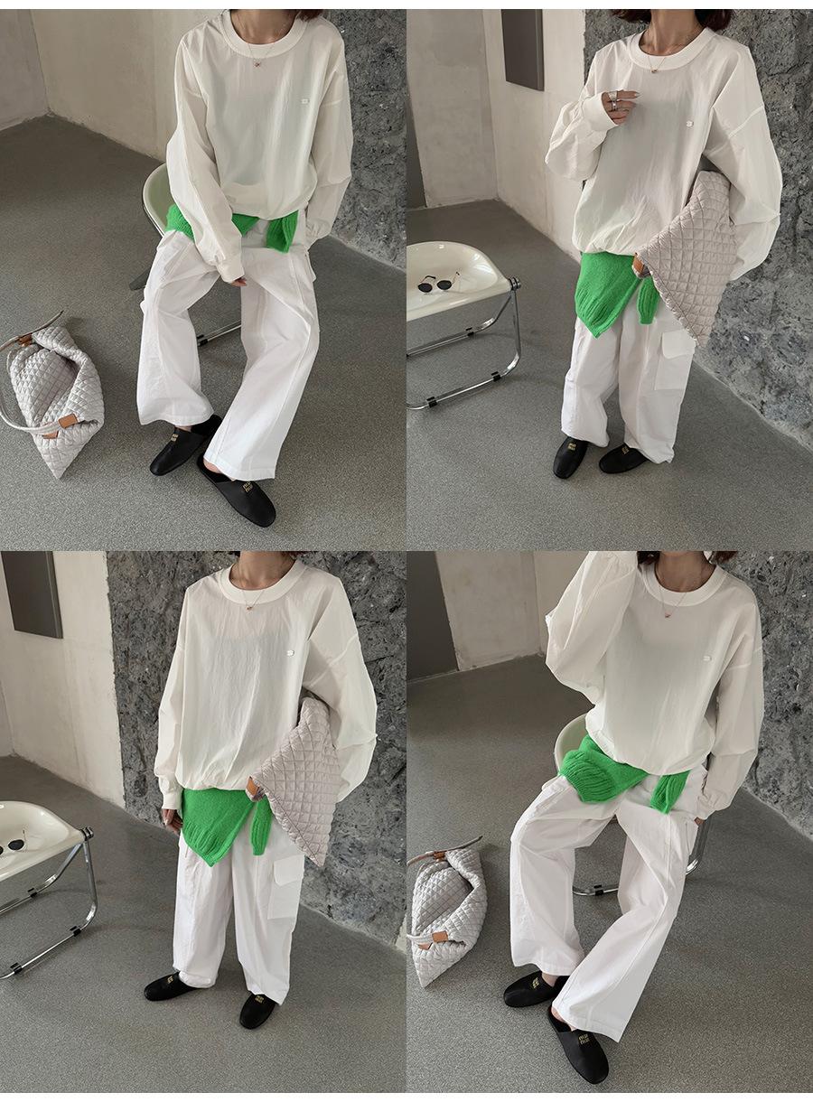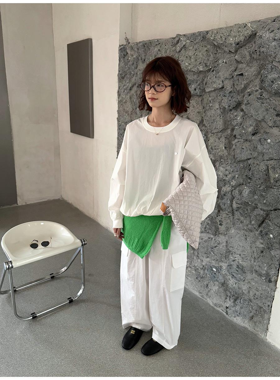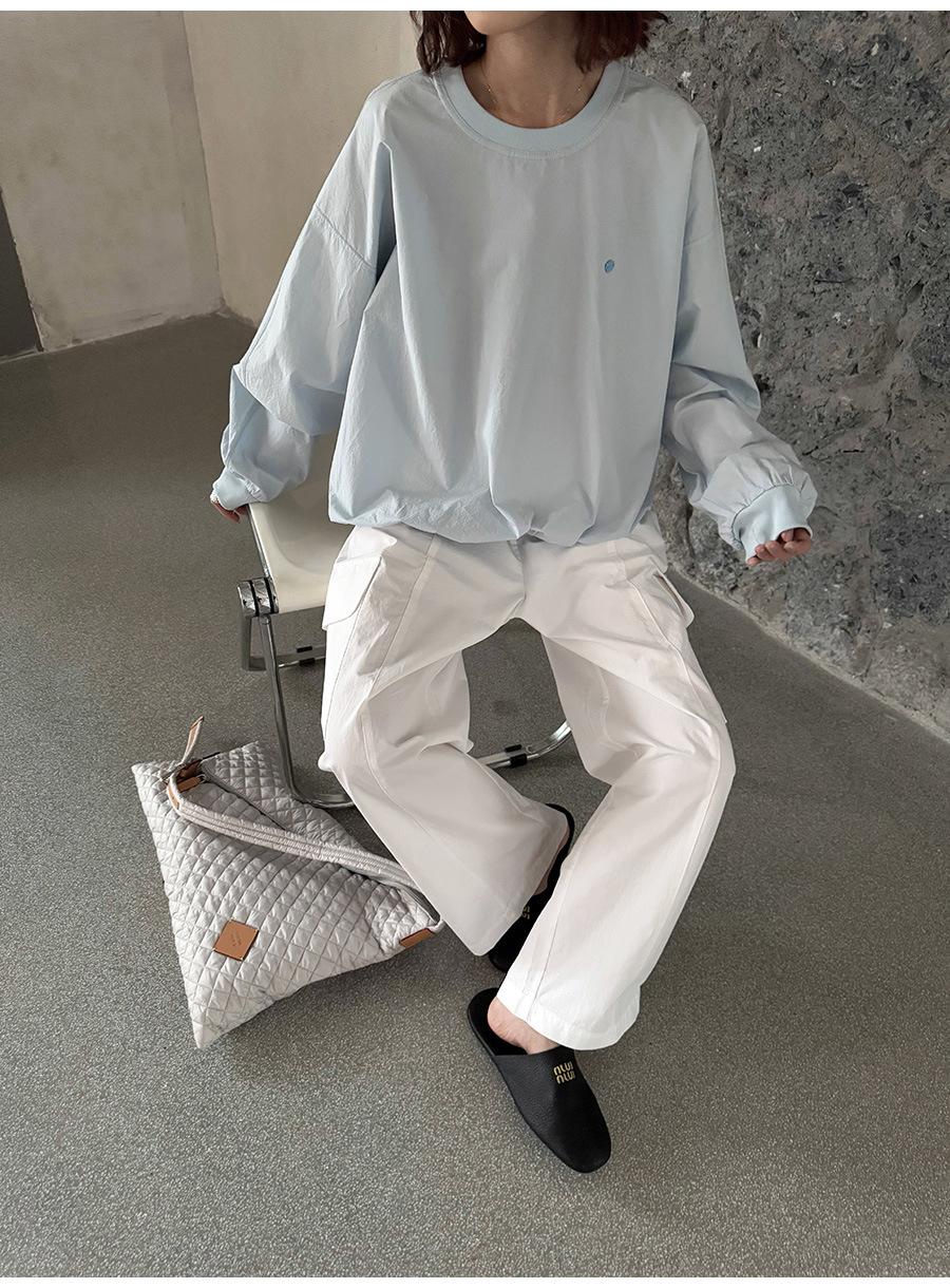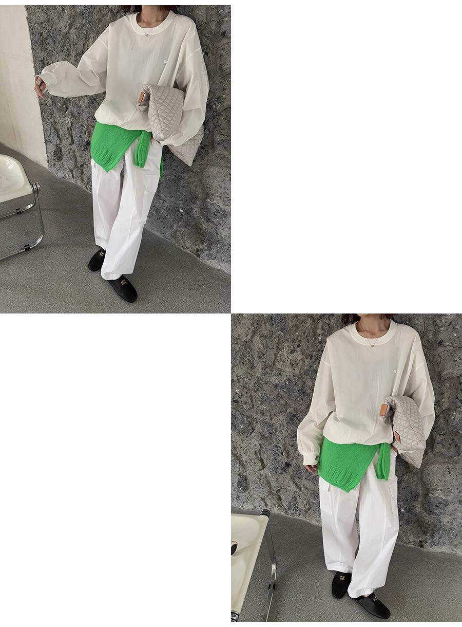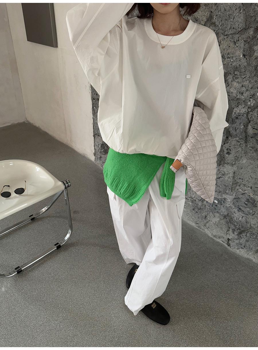 Lino Principios de Otoño Nuevo Camiseta Sudadera Cuello Redondo para Mujer 2025 Estilo Coreano Etiqueta Uña Color Puro Simple Manga Larga Algodón