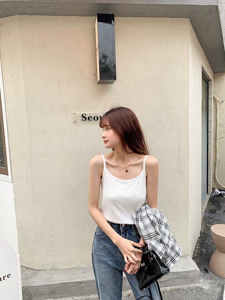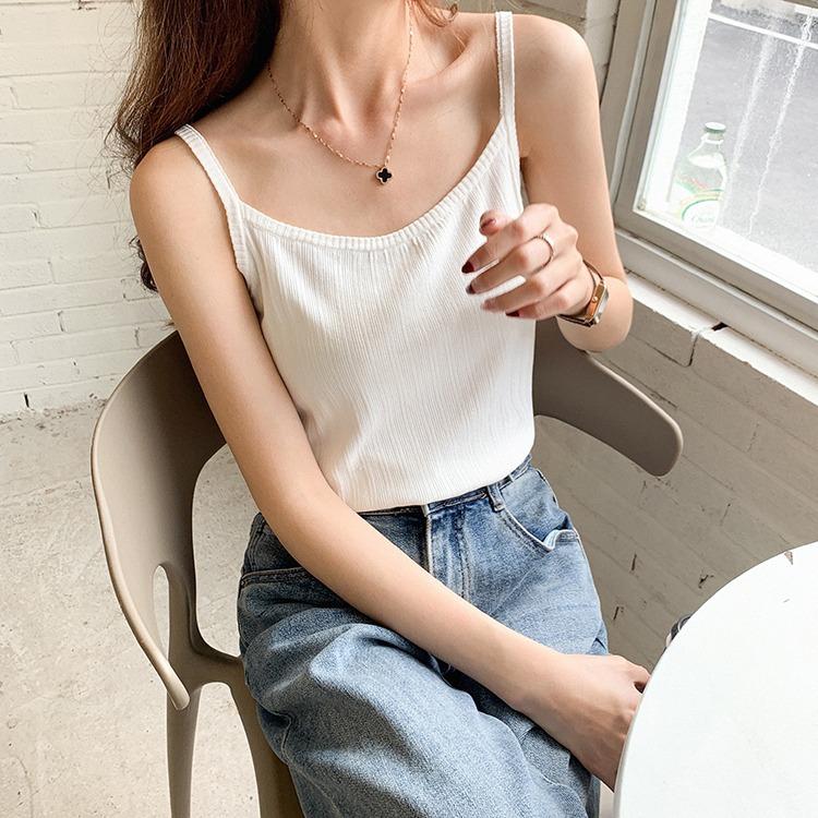 Top Camisola de Seda de Hielo Ropa Interior de Mujer Verano Ropa Exterior 2025 Nuevo Popular Estilo Caliente Sin Mangas Tejido Base