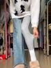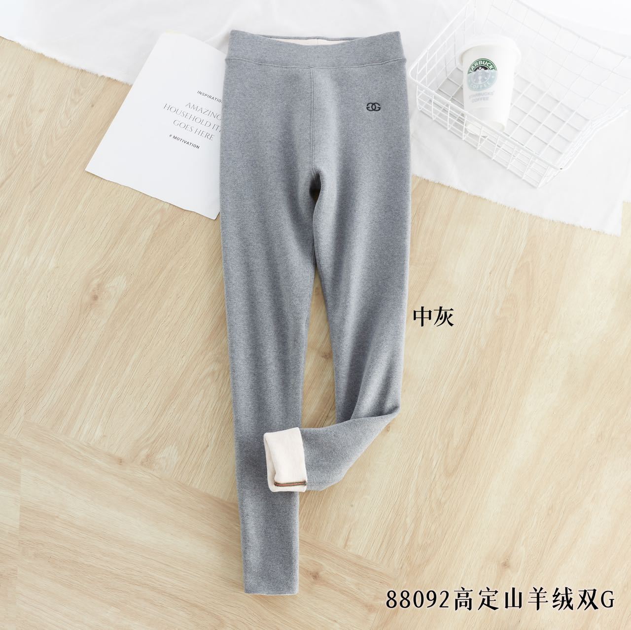 Leggings de Terciopelo de Otoño e Invierno para Mujer, Leggings Ajustados, Grises Lisos con Aspecto Adelgazante, Pantalones Gruesos de Cachemira Cálidos de Algodón para Uso Exterior