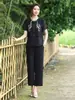 Cárdigan con cremallera y cuello alto para mujer de mediana edad y anciana, nuevo conjunto de dos piezas de primavera 2025 de estilo nacional, traje de madre retro