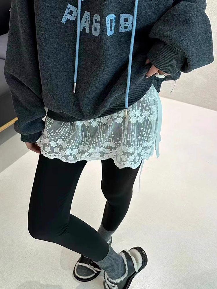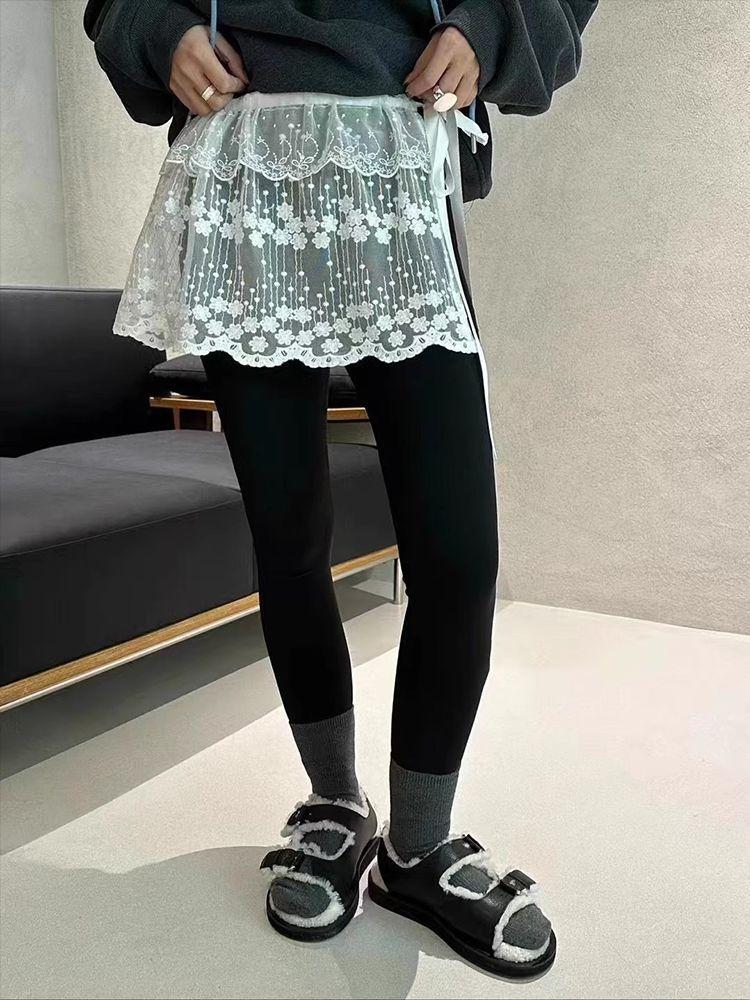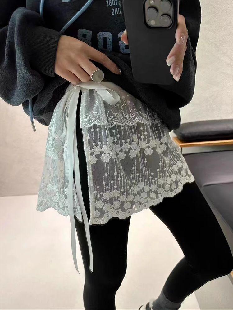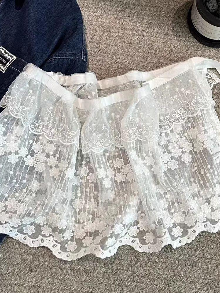 Cortina de pedos de encaje de malla blanca estilo coreano para mujer primavera nueva 2025 con cordones apilada que combina con todo falda que cubre las caderas