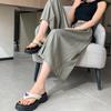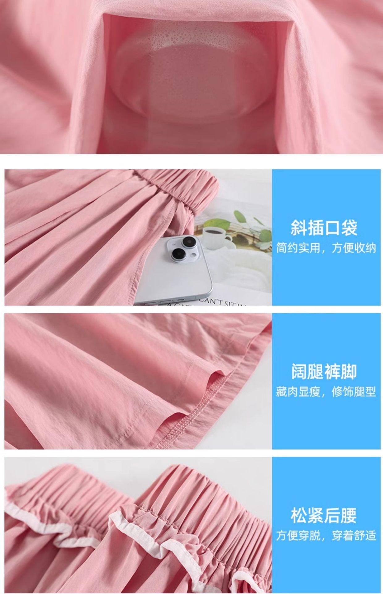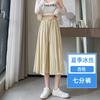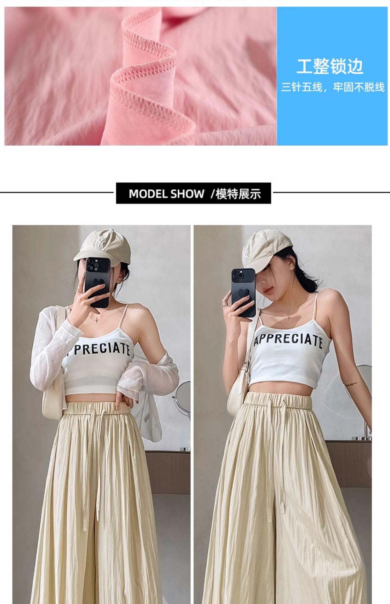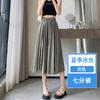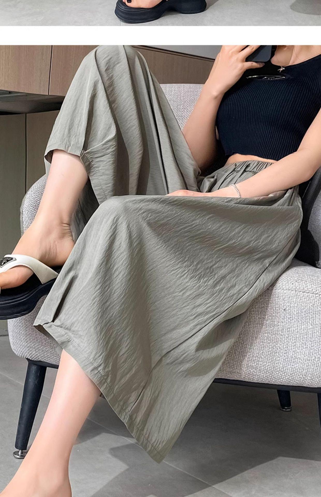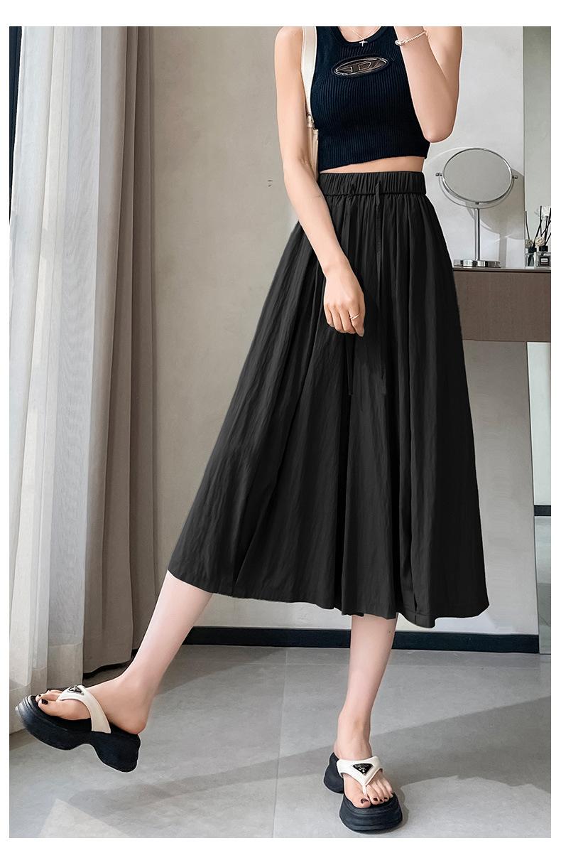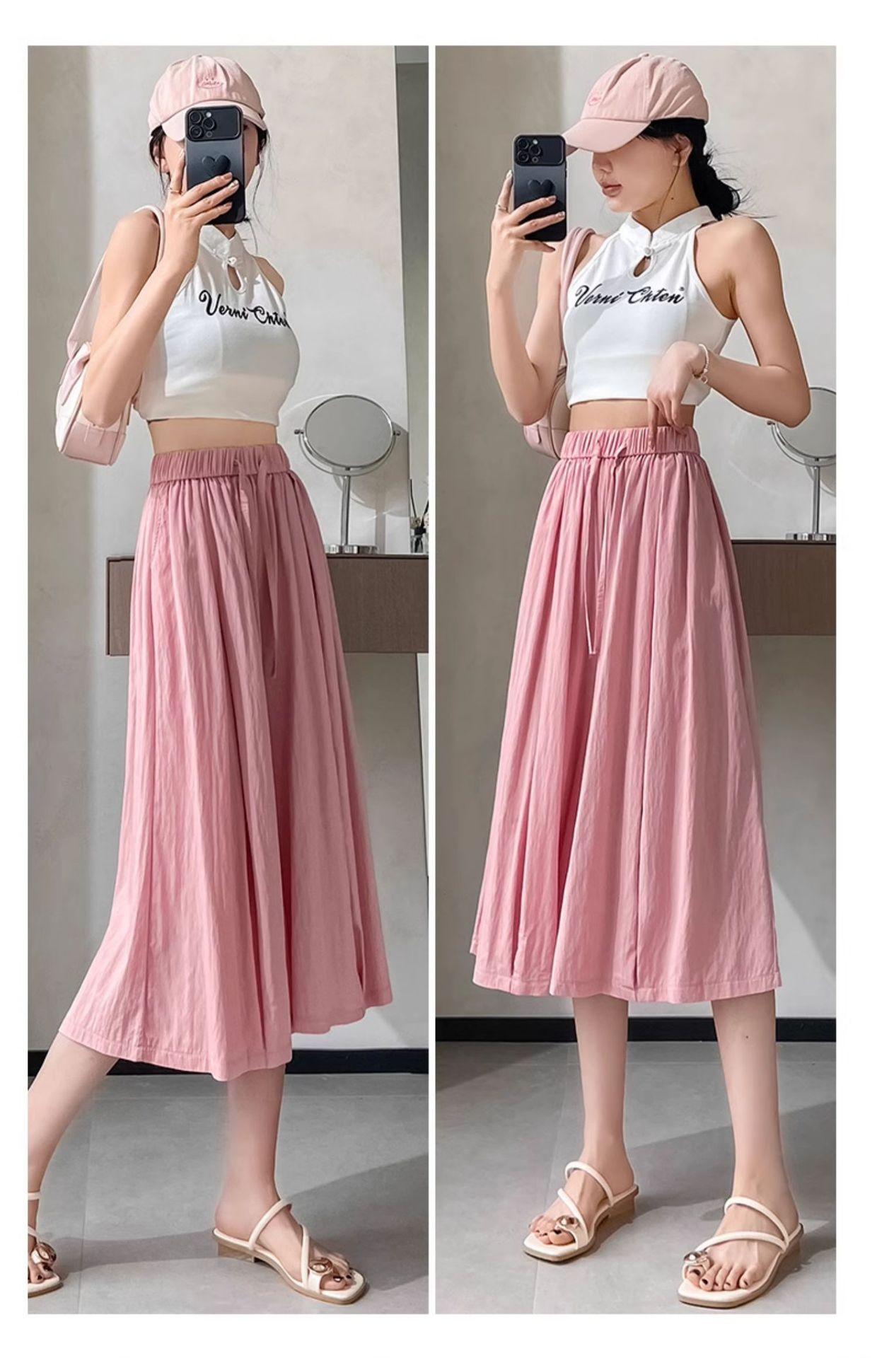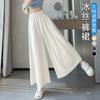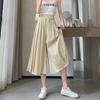 Pantalones de Falda Ancha Tres Cuartos de Talla Grande para Mujer, Estilo Delgado de Verano 2025 Nuevos Pantalones Frescos de Seda de Hielo, Pantalones de Falda Casual Drapeados de Cintura Alta