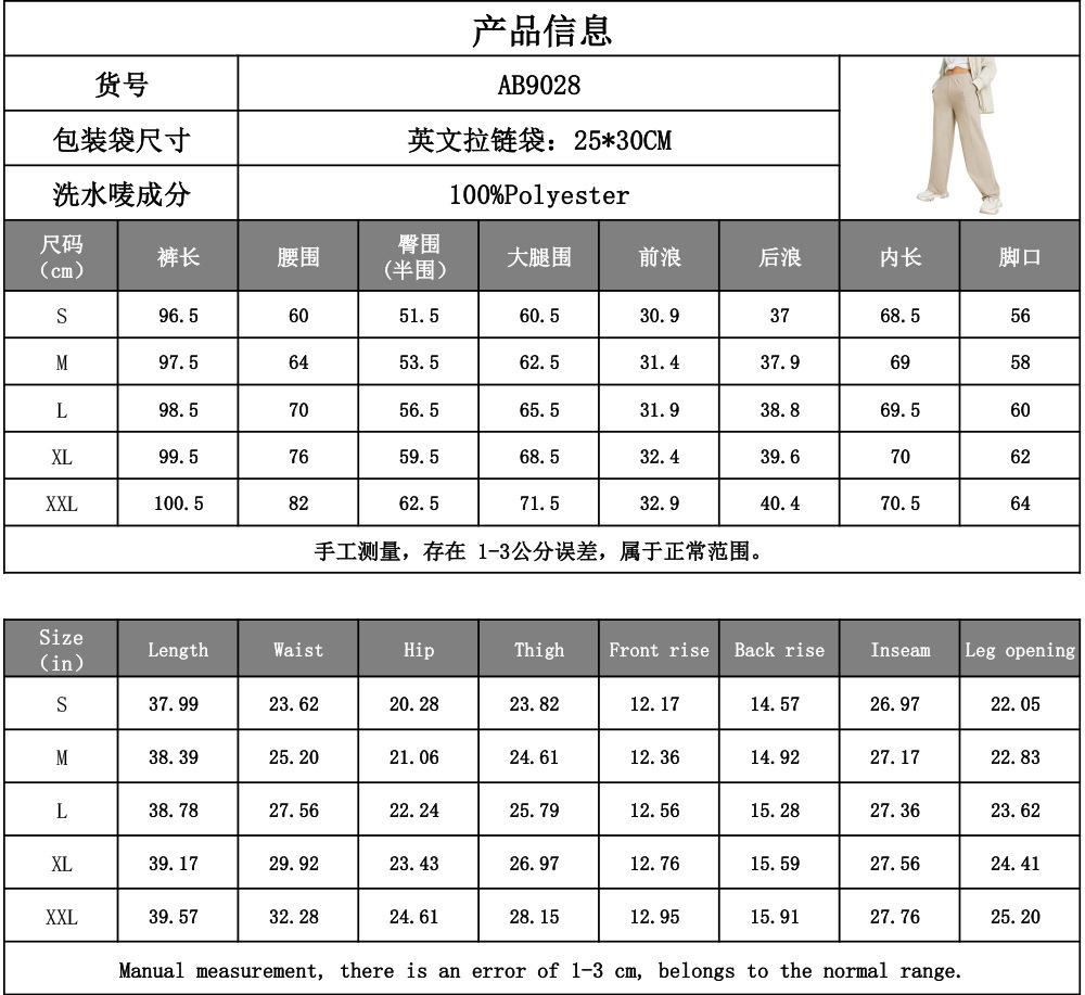 Pantalones Rectos Holgados Transfronterizos de Amazon para Mujer Talla Europea Primavera y Otoño Ocio Pierna Ancha Deportivos Cómodos para Casa Venta al por Mayor de Fábrica