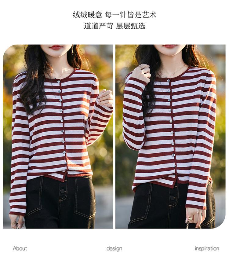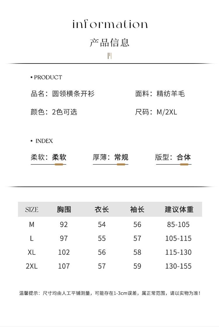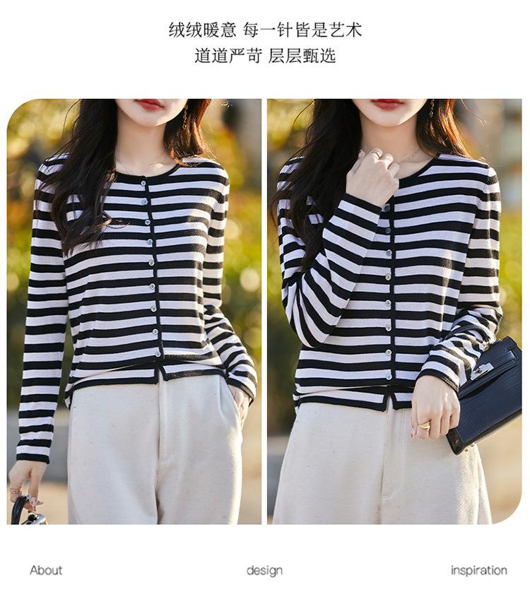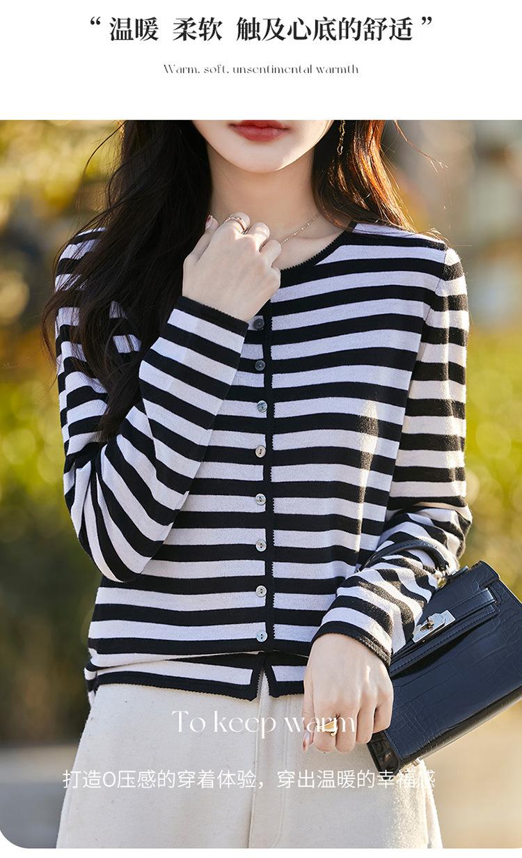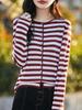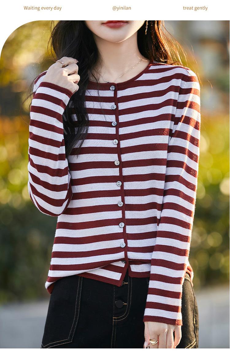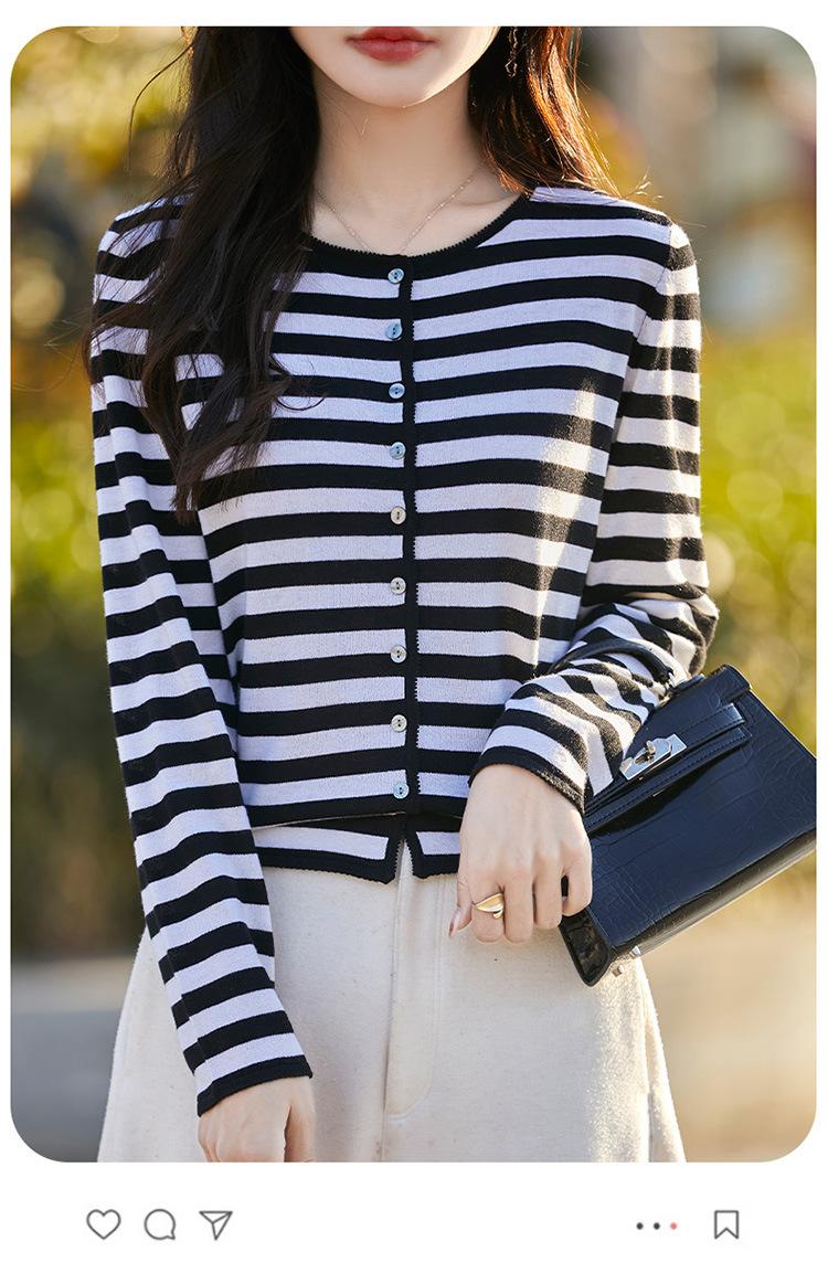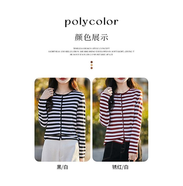Chaqueta de punto de lana peinada, novedad de primavera 2025, suéter tipo cárdigan informal fino y combinable con todo, con cuello redondo y rayas.