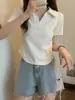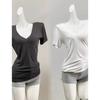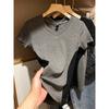Camiseta de Algodón Puro con Cuello en V de Hombro Derecho y Manga Corta para Mujer Verano Nuevo Corta Versátil Versión Ligera para Fondo Top Interior Básico