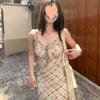 Vestido plisado con cuello cuadrado francés para mujer, primavera 2025, nuevo, cintura alta, vuelo amplio, manga larga, vestido tipo paraguas