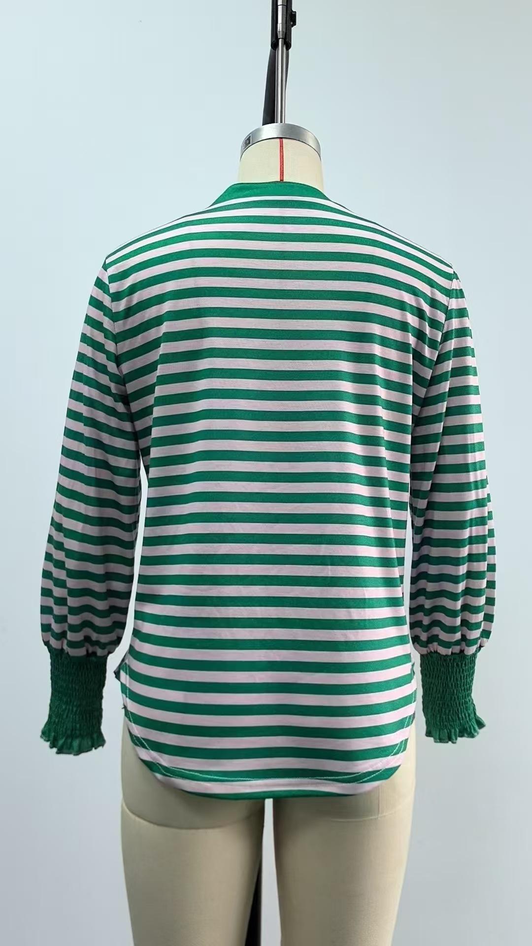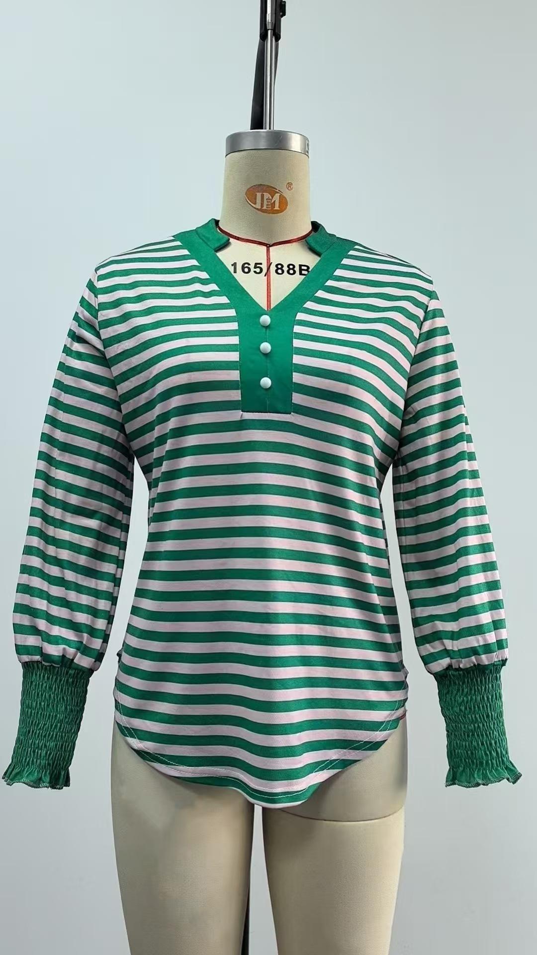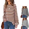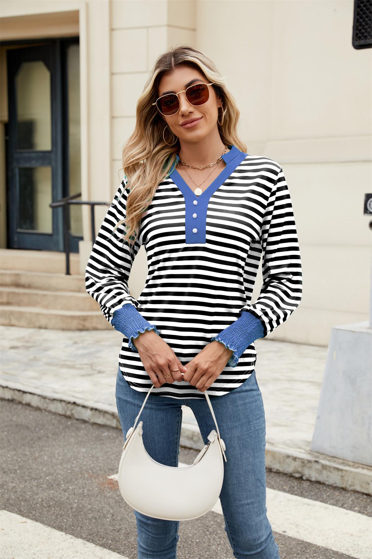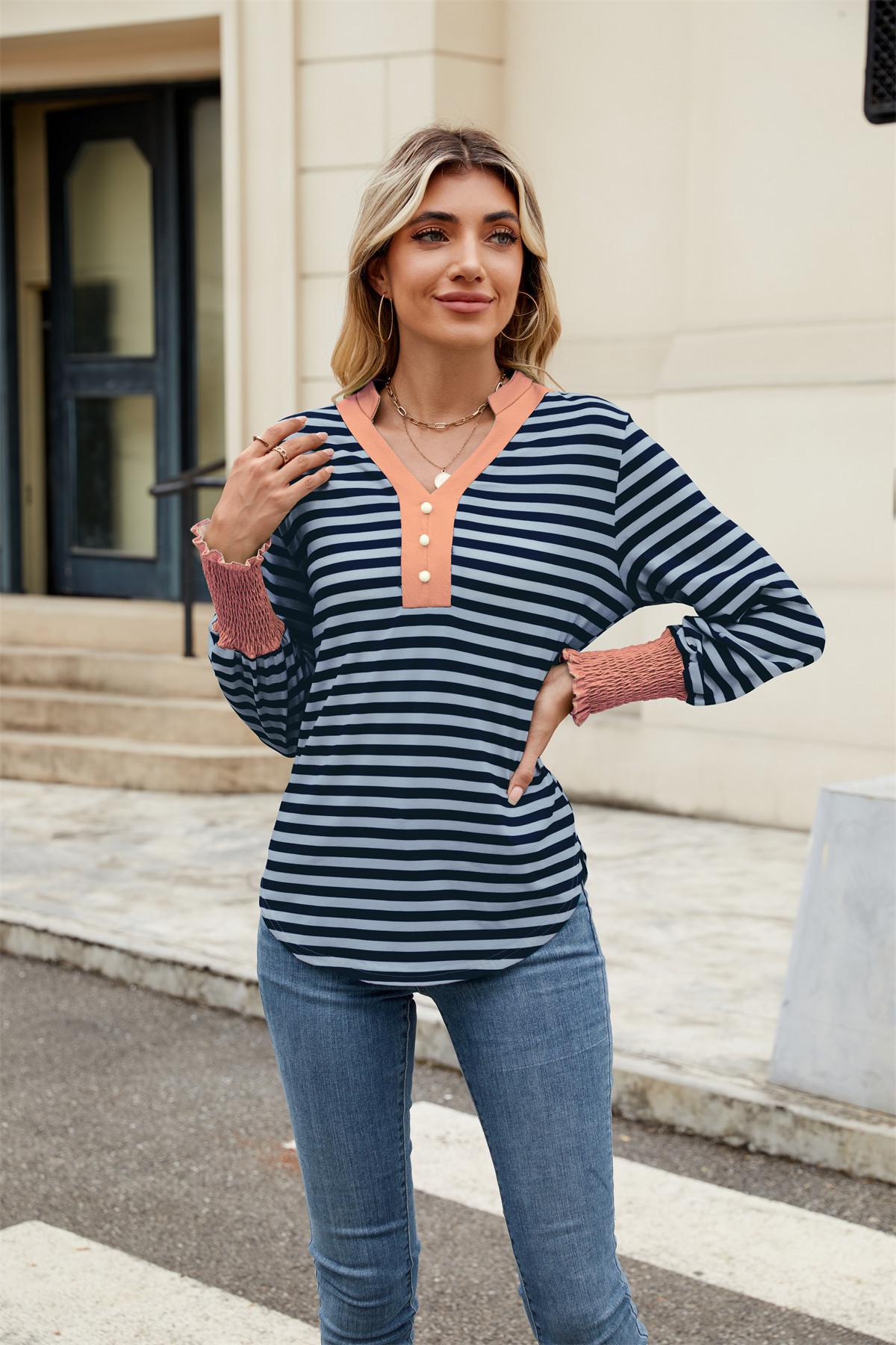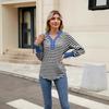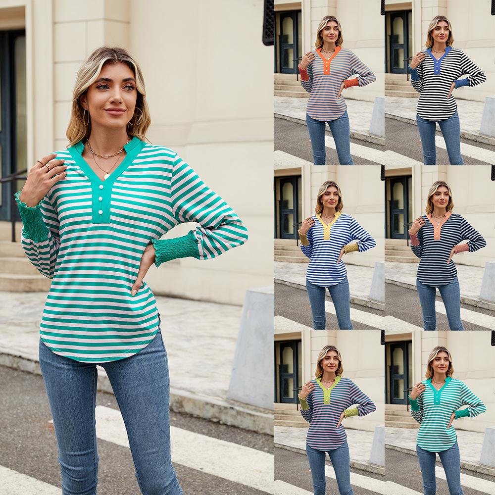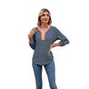 Comercio exterior transfronterizo de Amazon, Europa y Estados Unidos, primavera y verano 2025, nuevo top a rayas a juego con cuello en V y manga larga para mujer