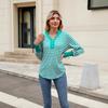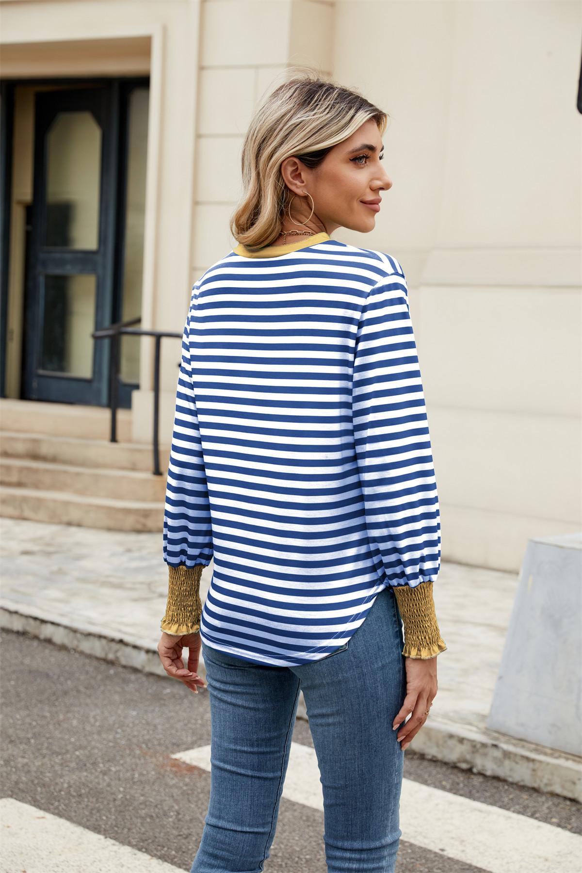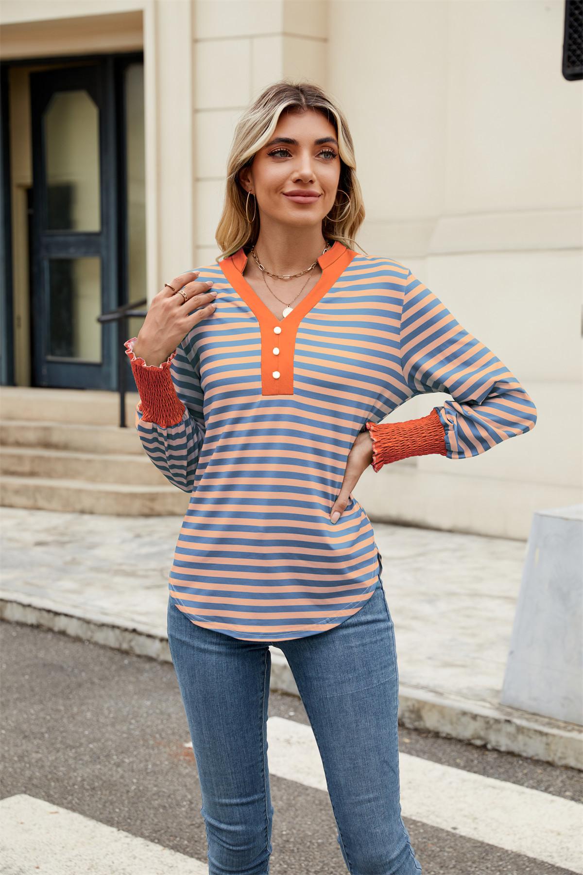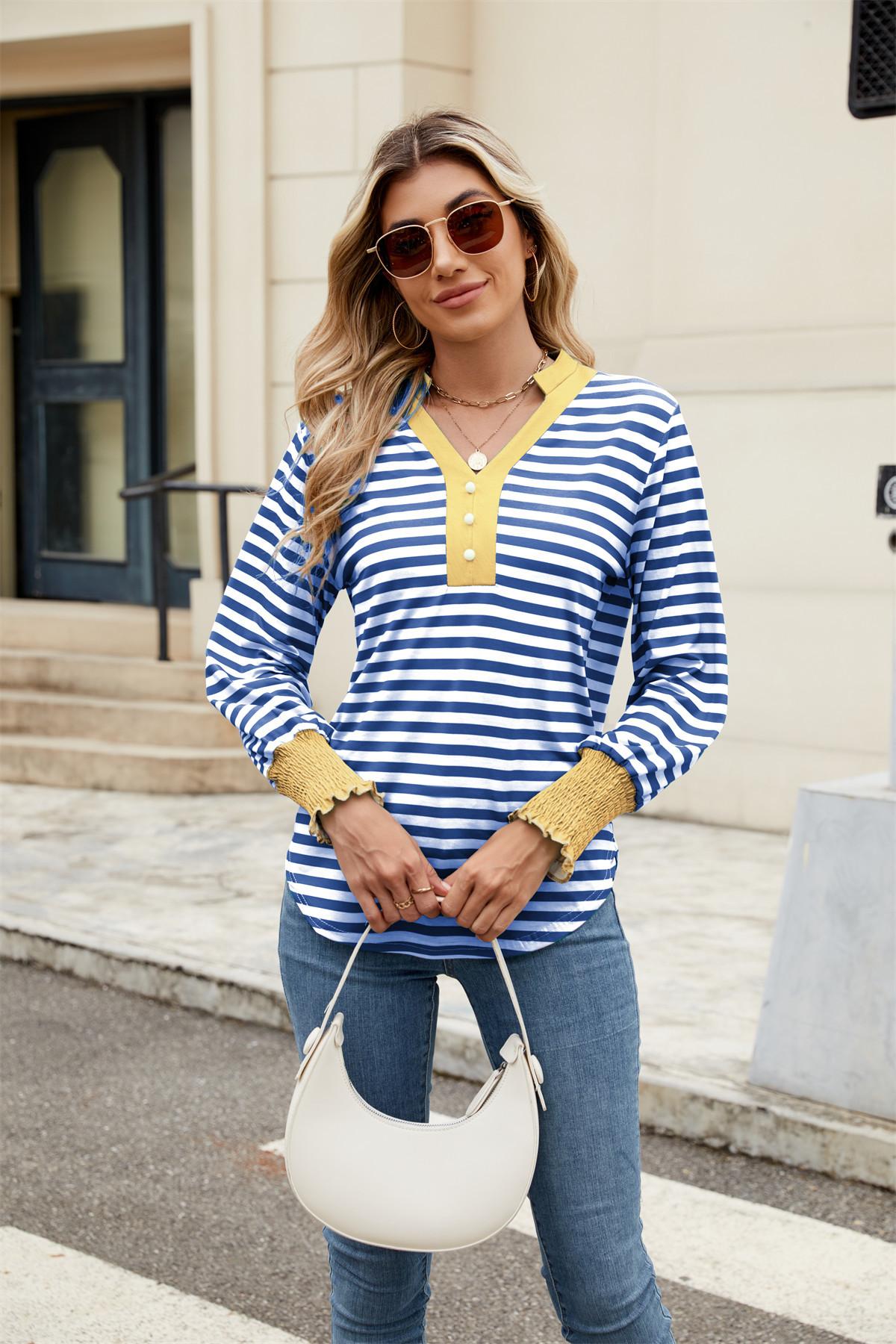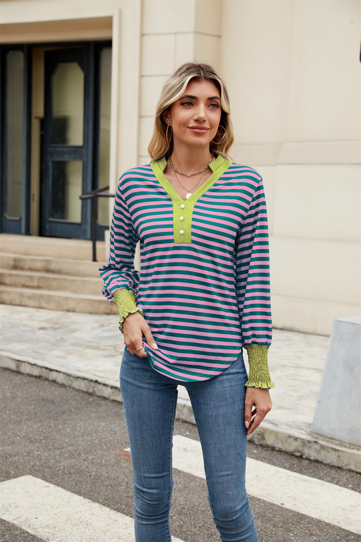 Comercio exterior transfronterizo de Amazon, Europa y Estados Unidos, primavera y verano 2025, nuevo top a rayas a juego con cuello en V y manga larga para mujer