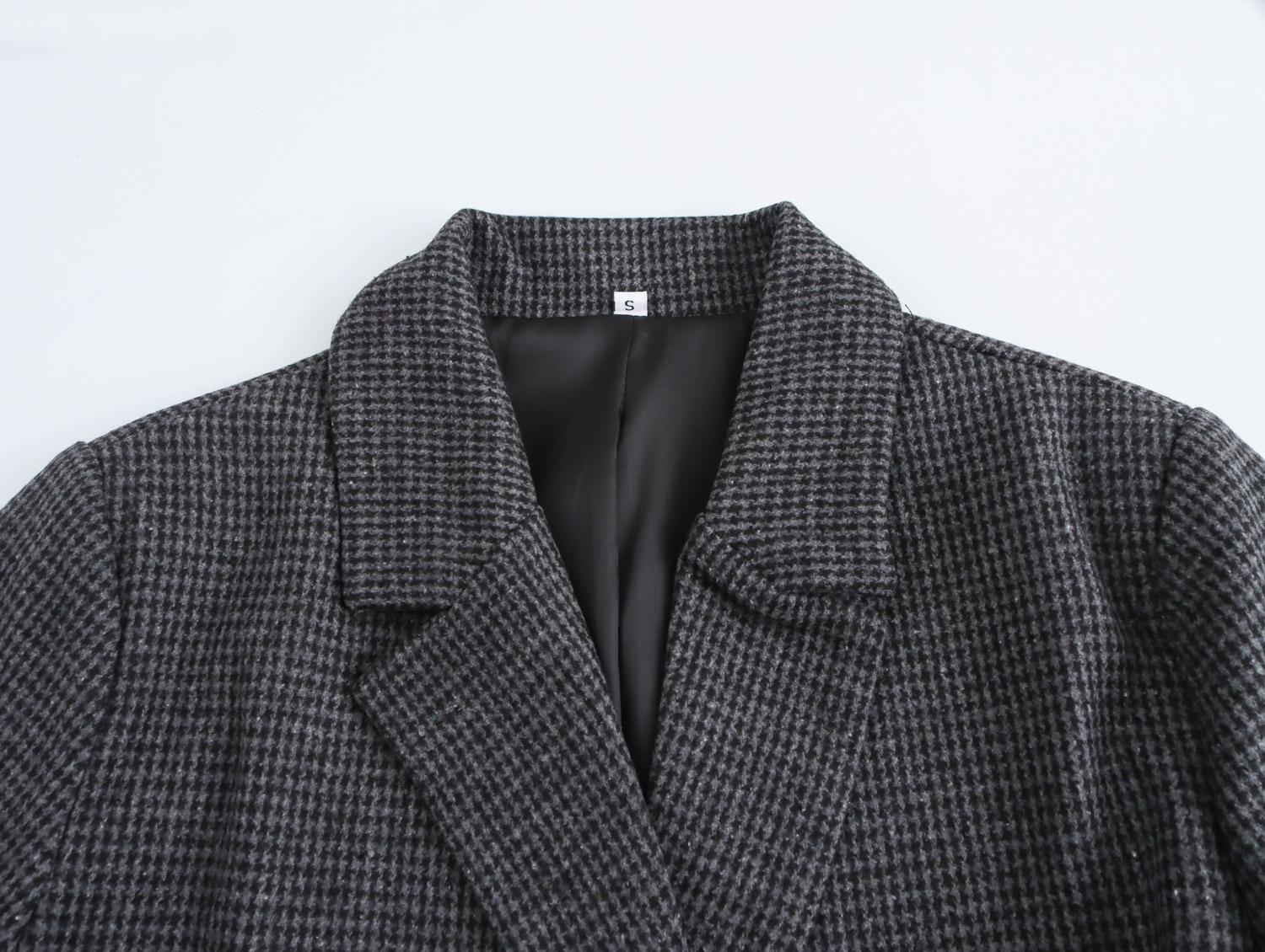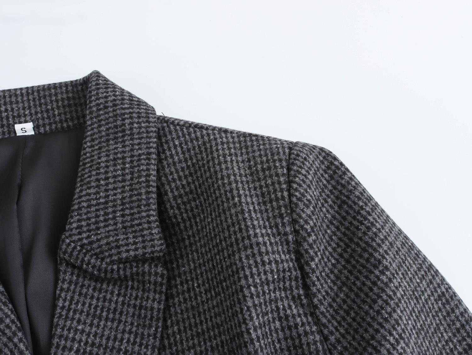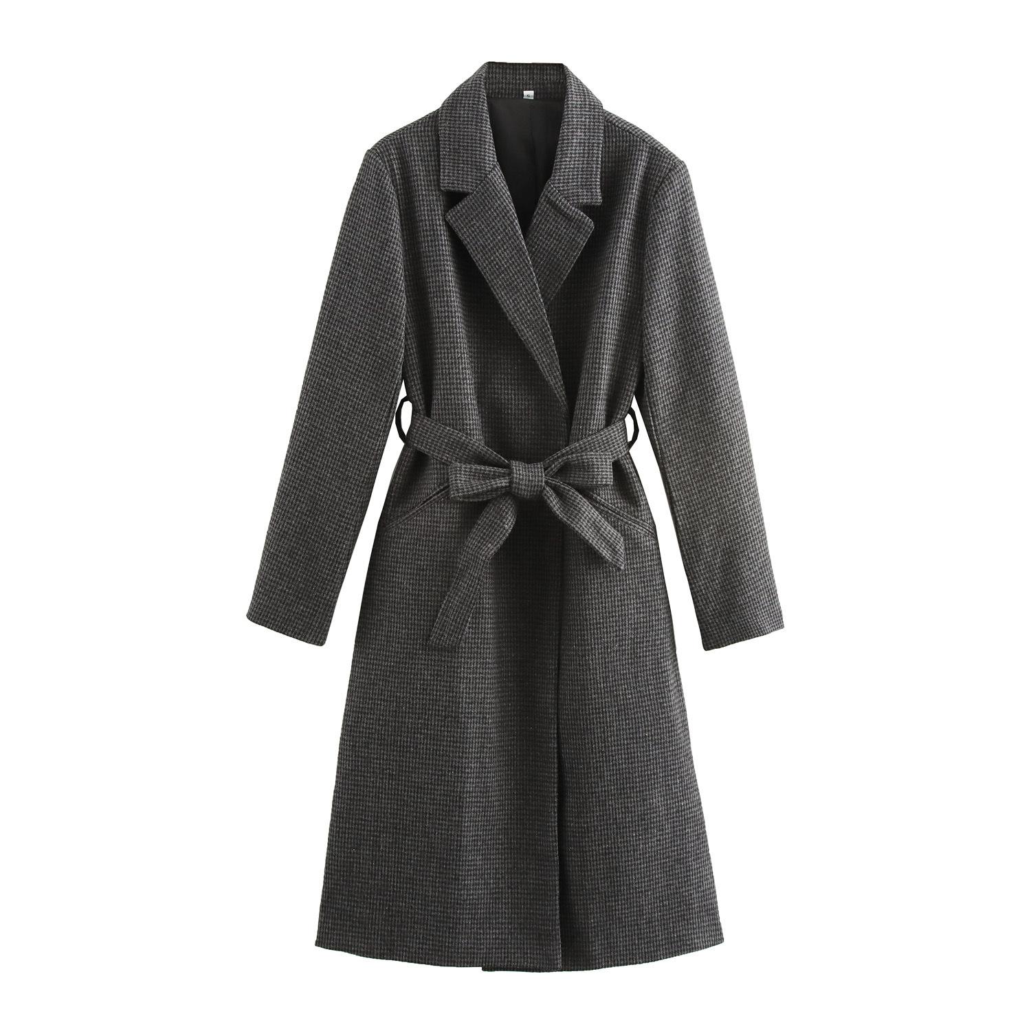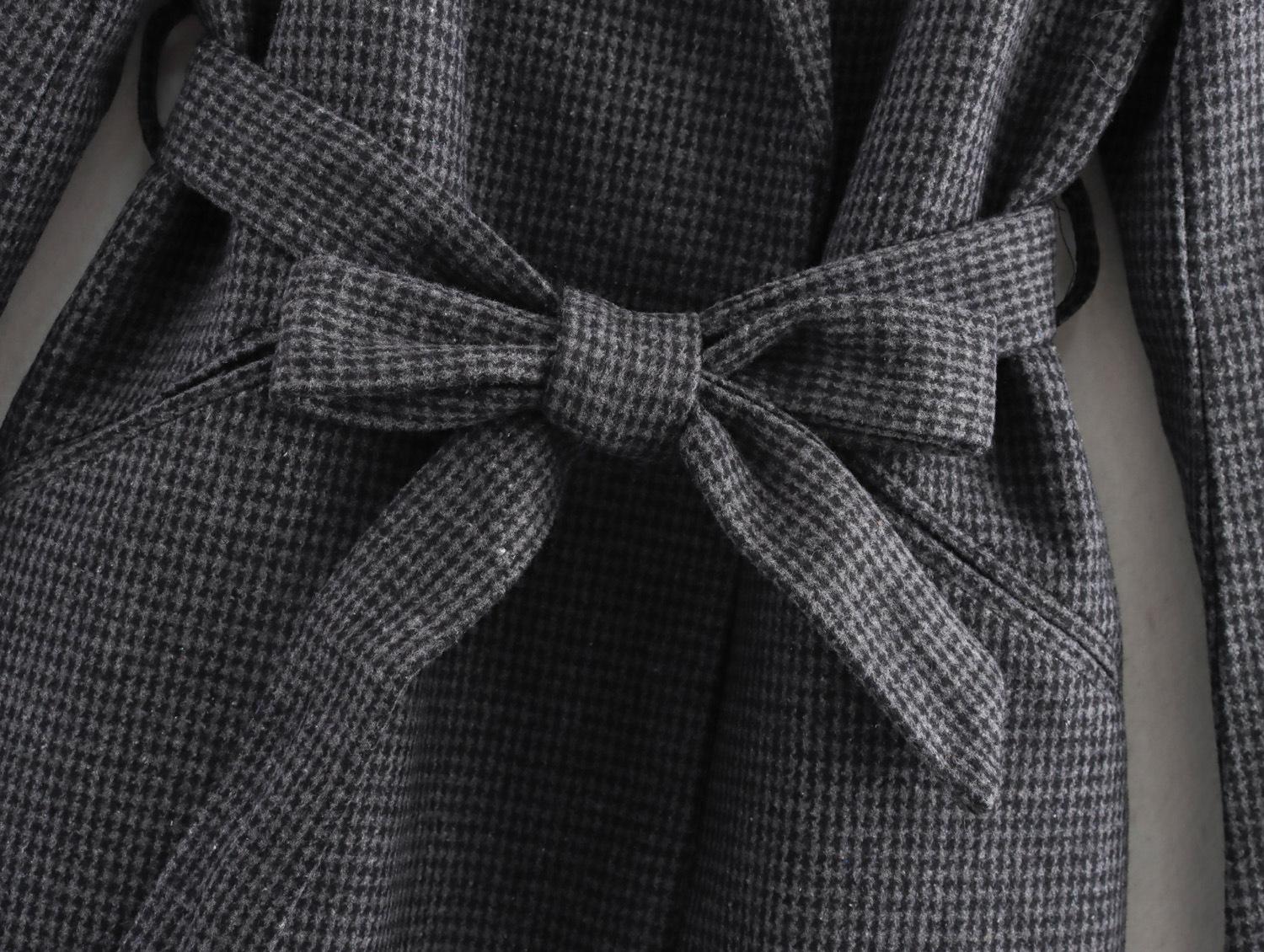 Abrigo de lana cortavientos con cordones y manga larga a cuadros, informal, estilo francés, primavera 6939-25