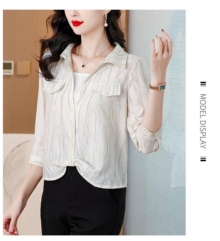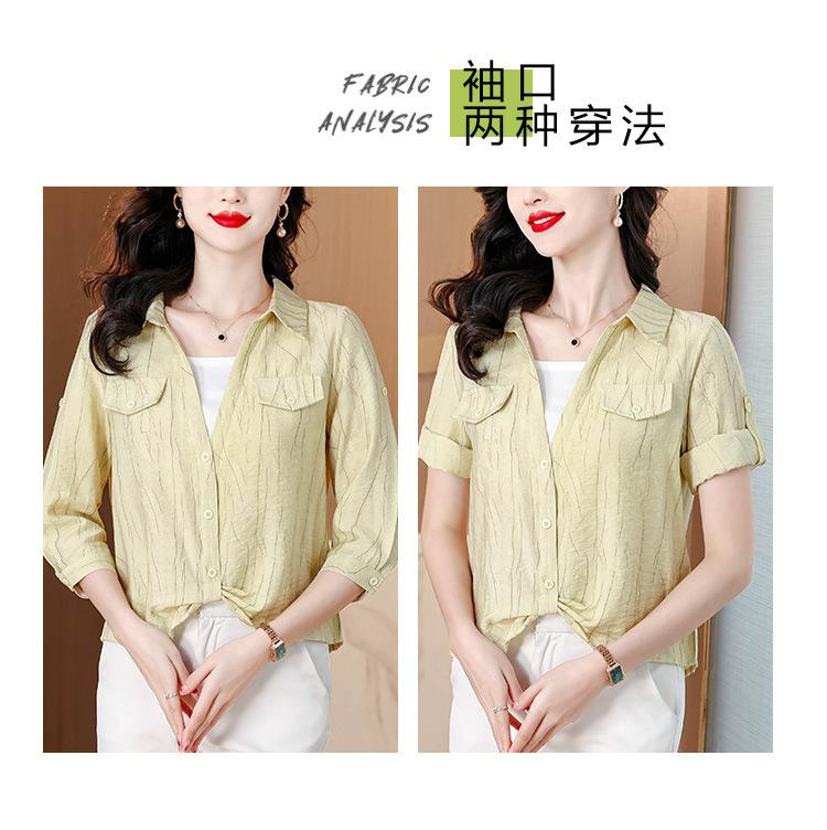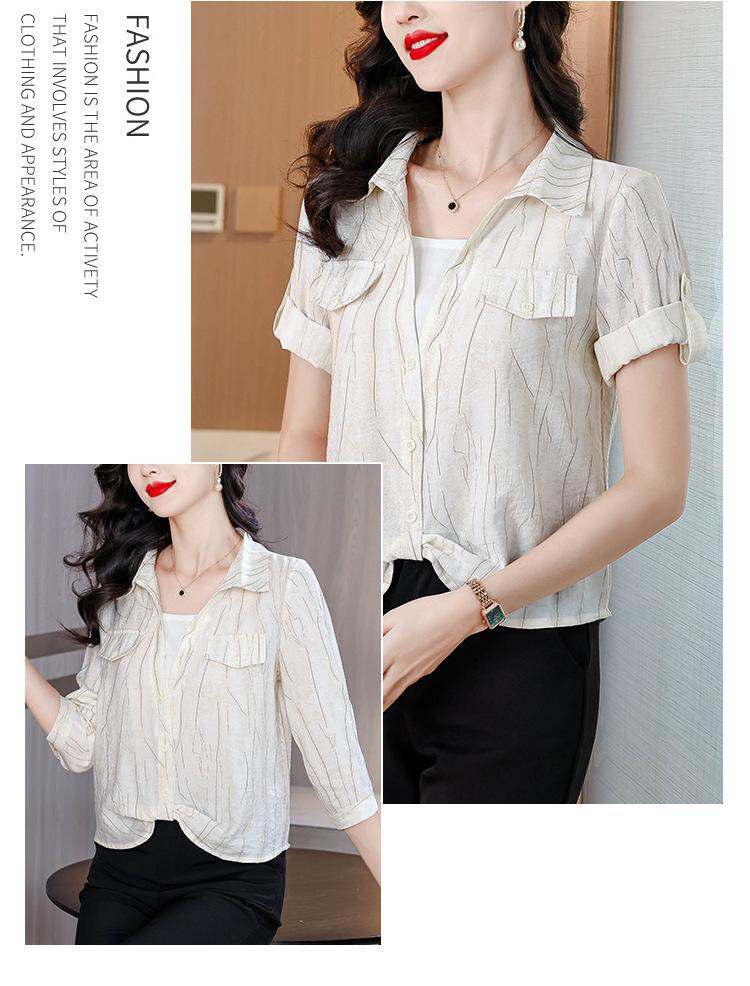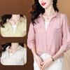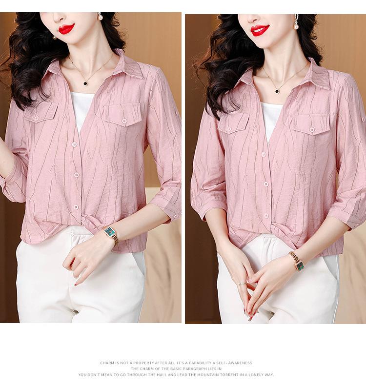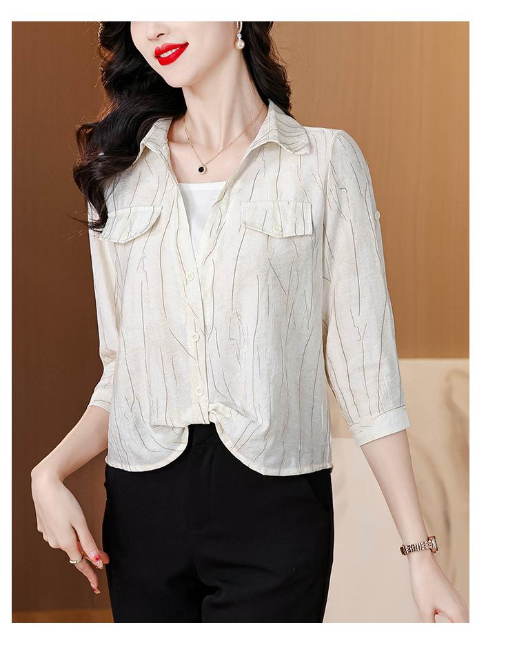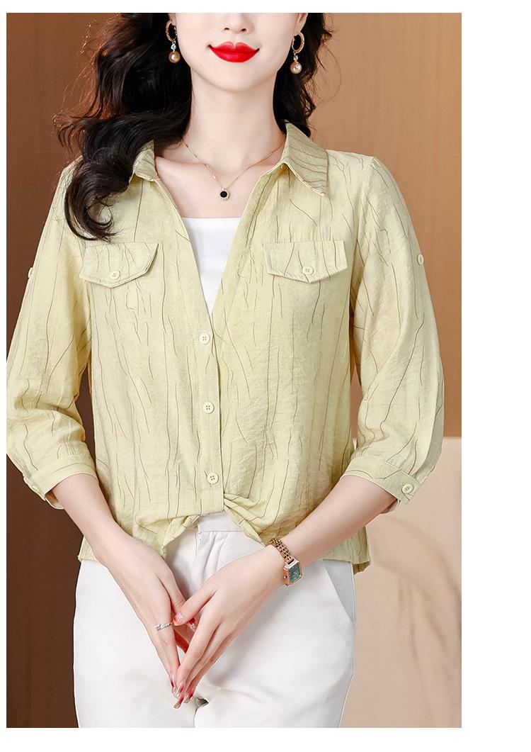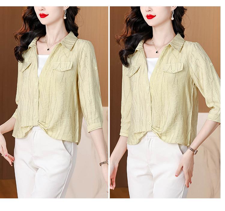 Camisa de dos piezas con cuello polo y mangas de nueve puntos para mujer, primavera 2025, nuevo diseño, estilo irregular, elegante y de nicho.