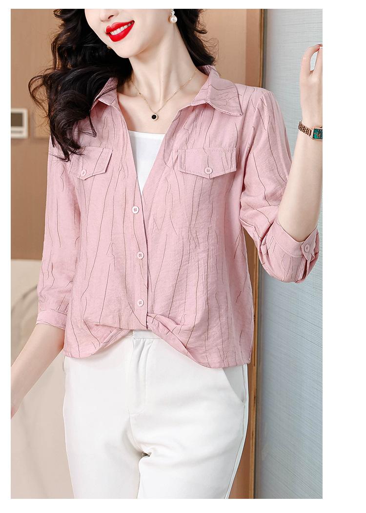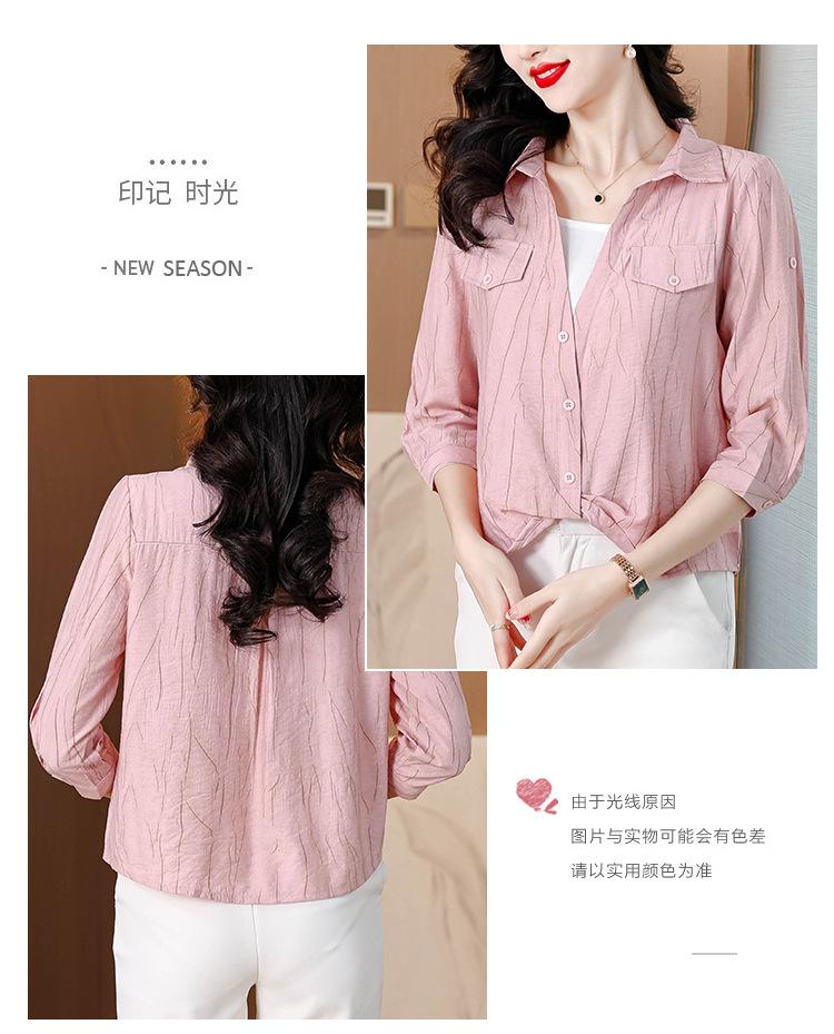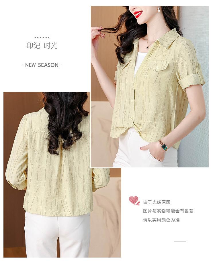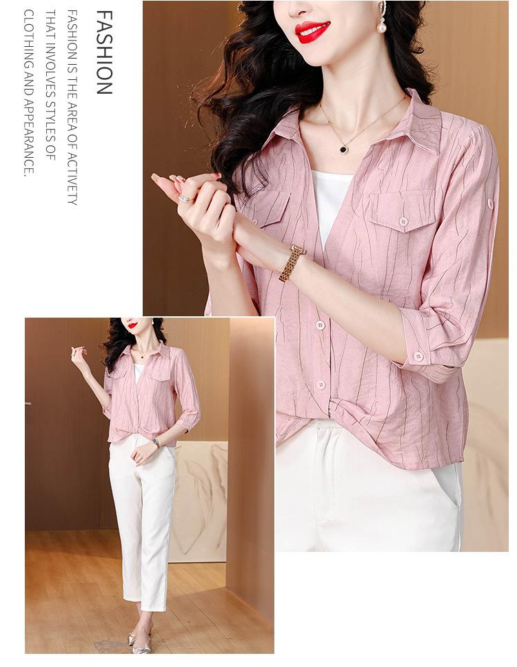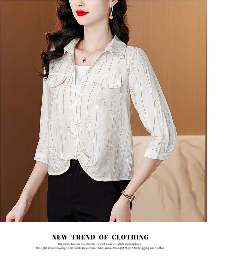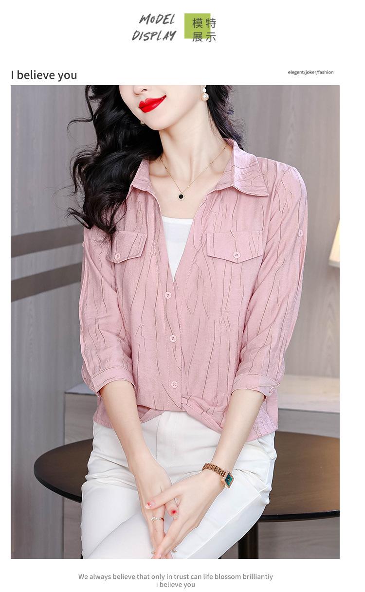 Camisa de dos piezas con cuello polo y mangas de nueve puntos para mujer, primavera 2025, nuevo diseño, estilo irregular, elegante y de nicho.