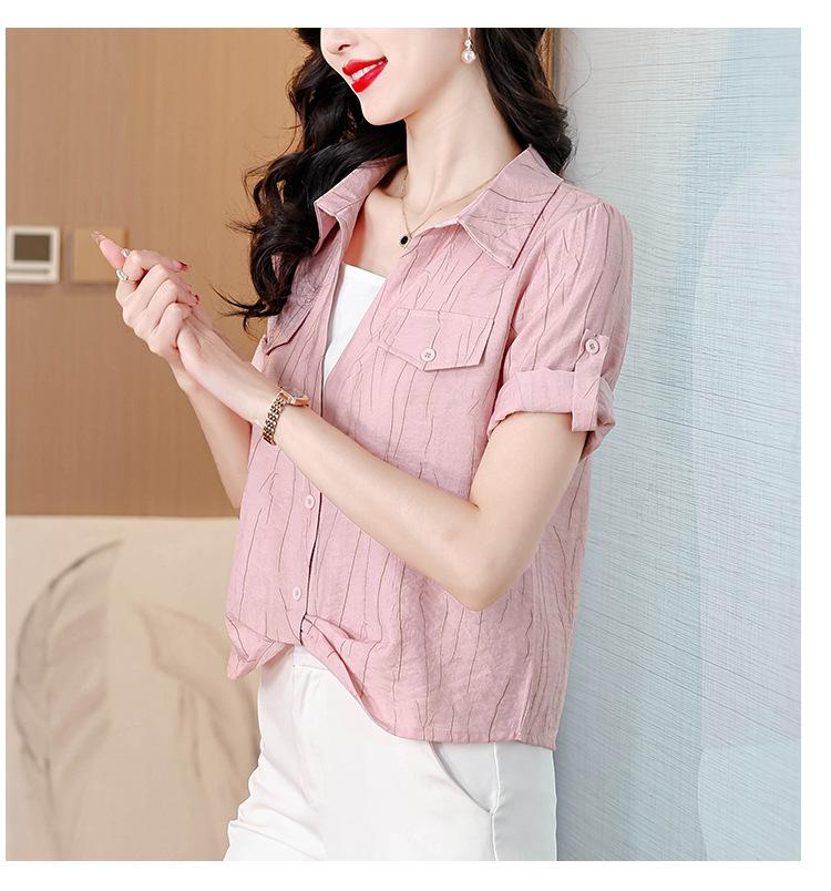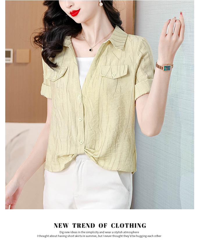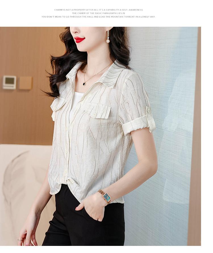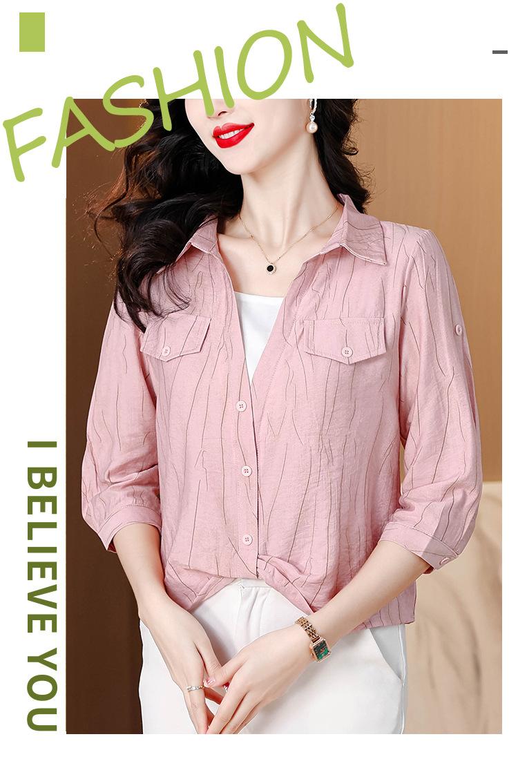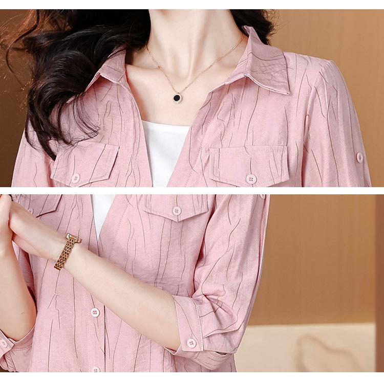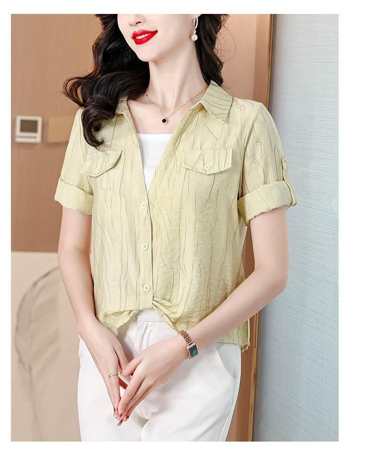 Camisa de dos piezas con cuello polo y mangas de nueve puntos para mujer, primavera 2025, nuevo diseño, estilo irregular, elegante y de nicho.