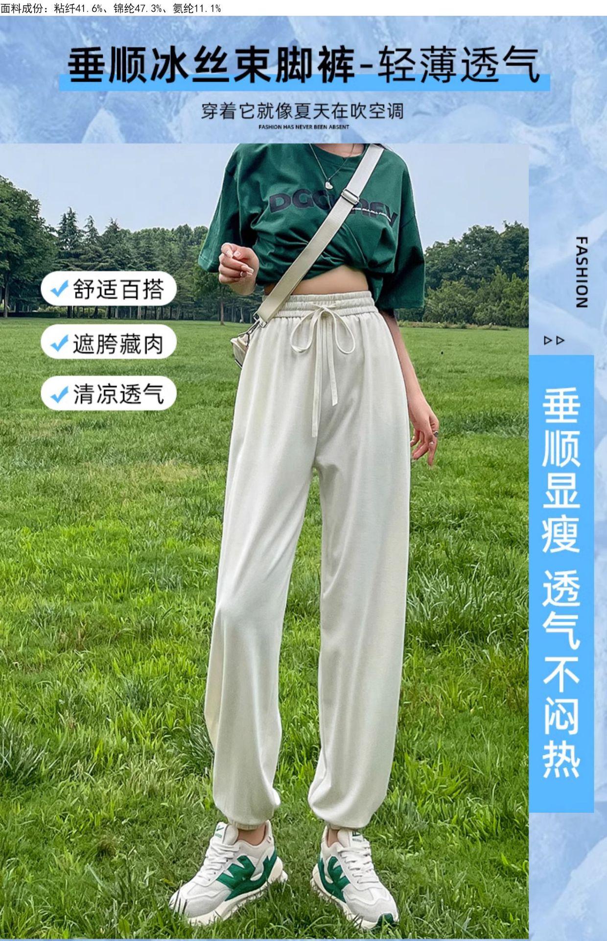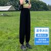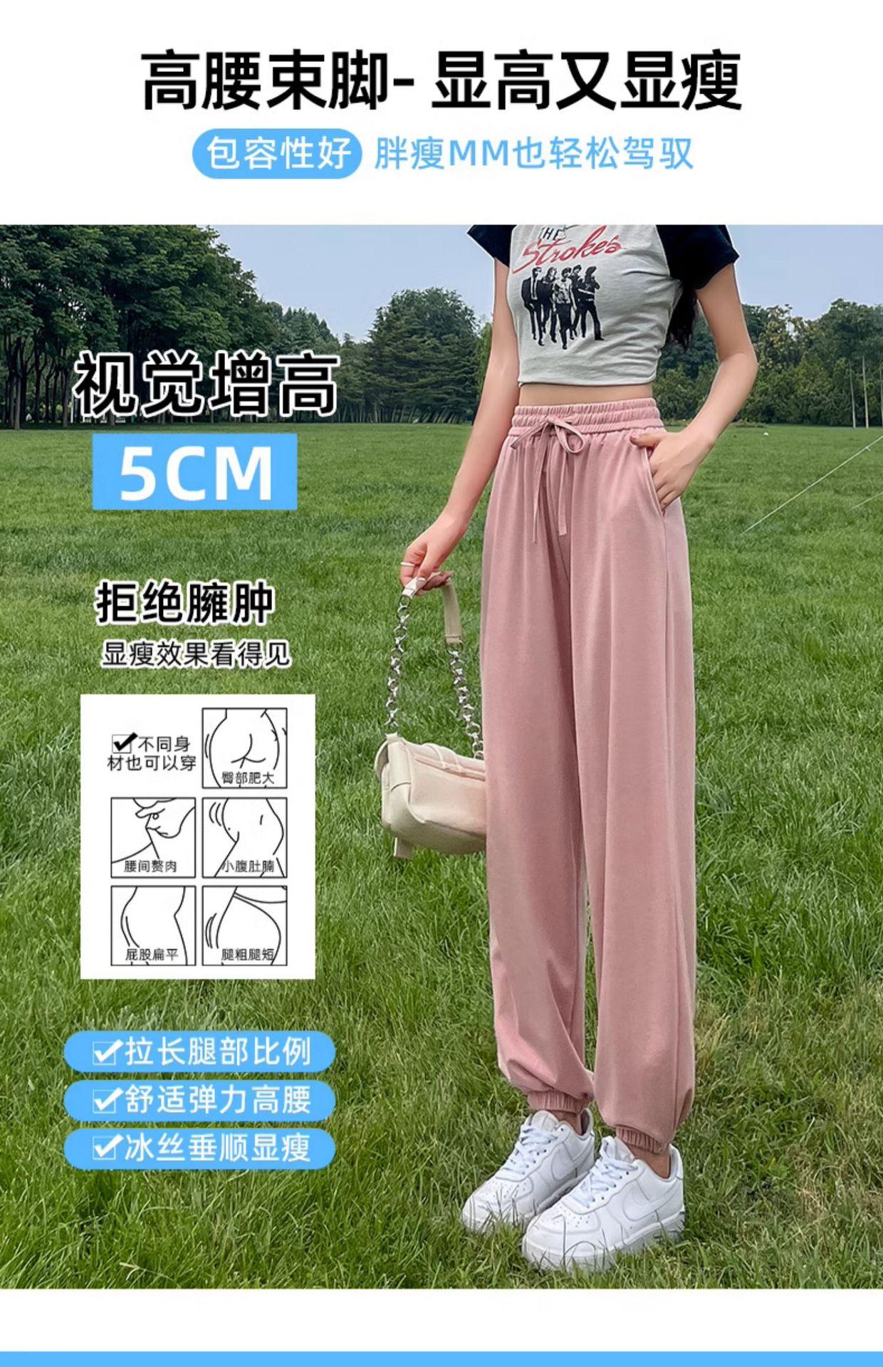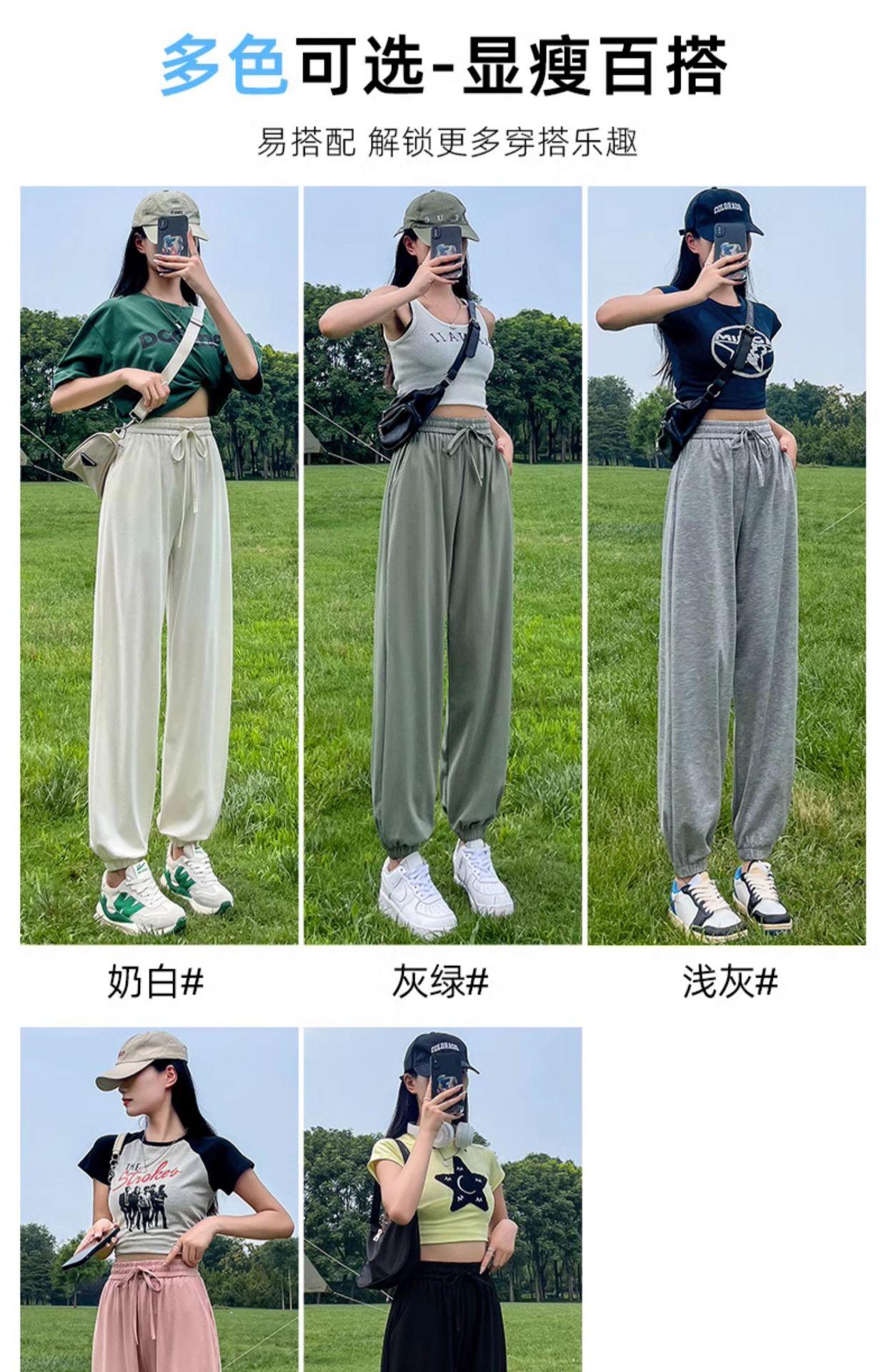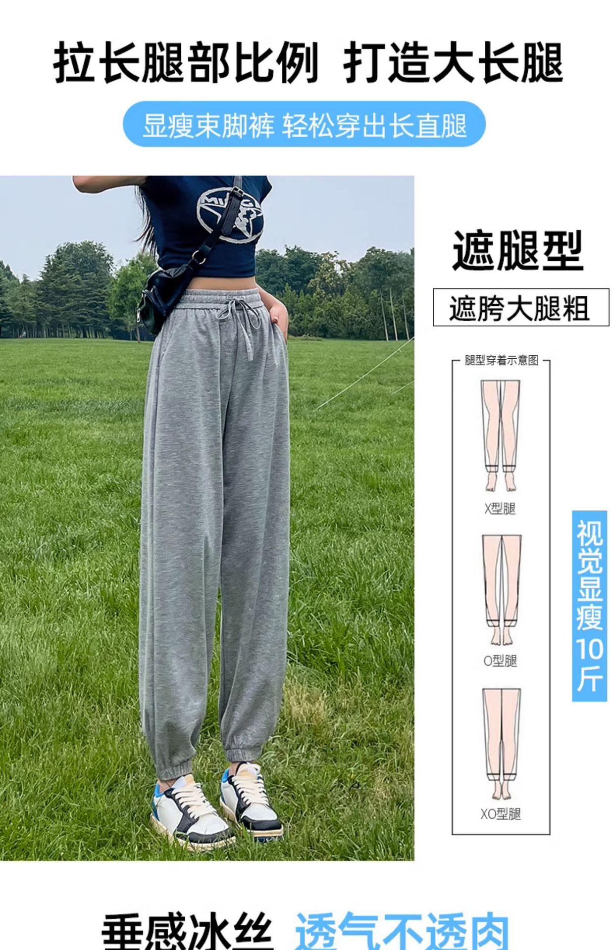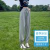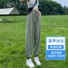 Pantalones deportivos de seda de hielo de talla grande para mujer, nuevos pantalones bombachos holgados de verano, pantalones casuales recortados de cintura alta y finos.