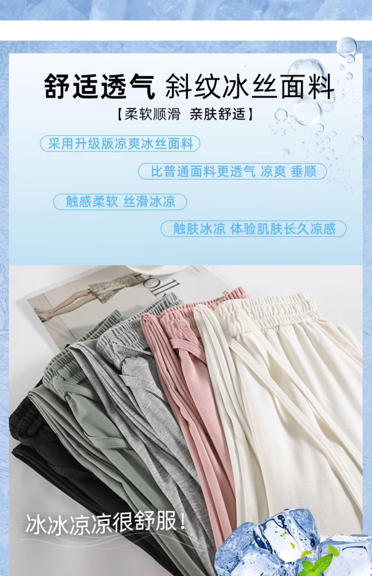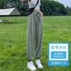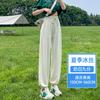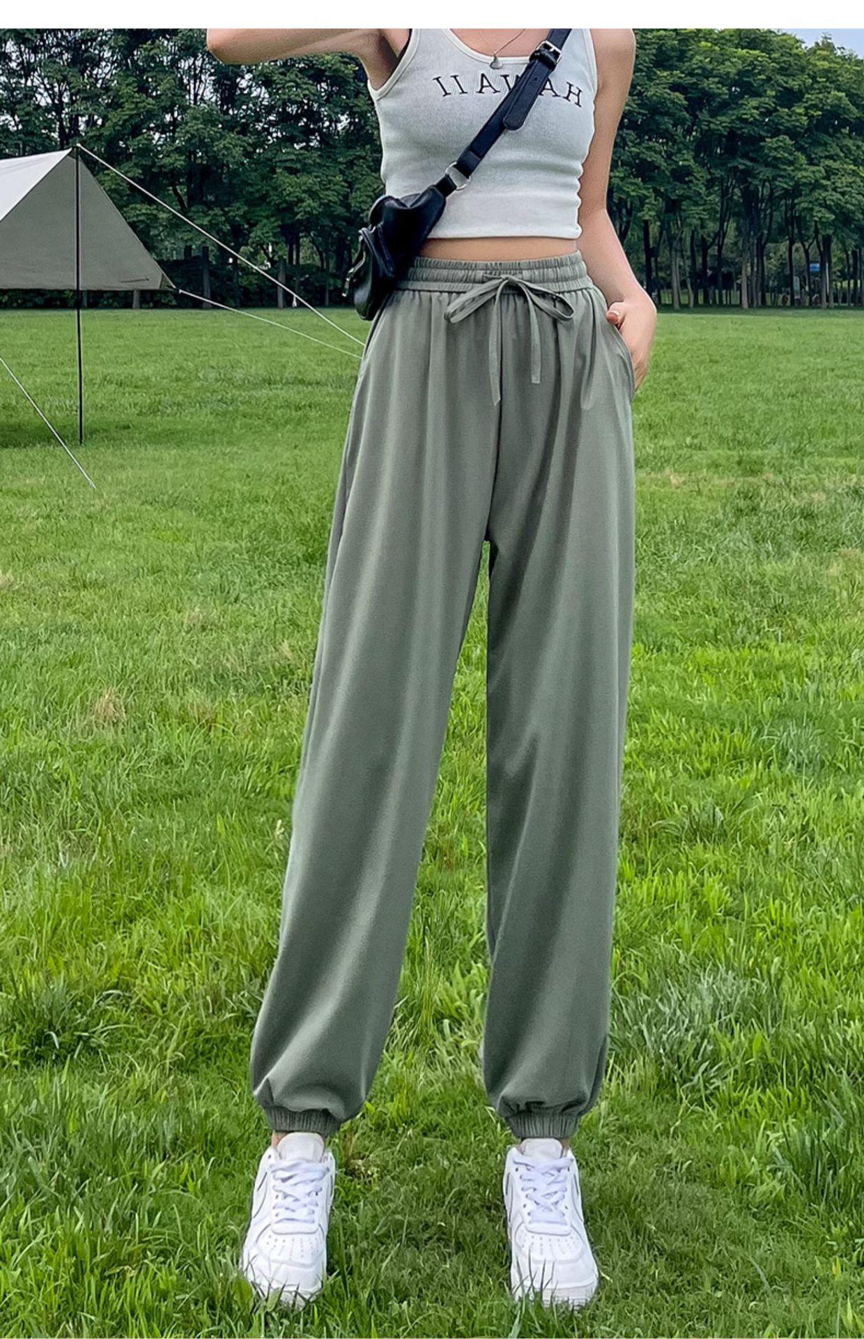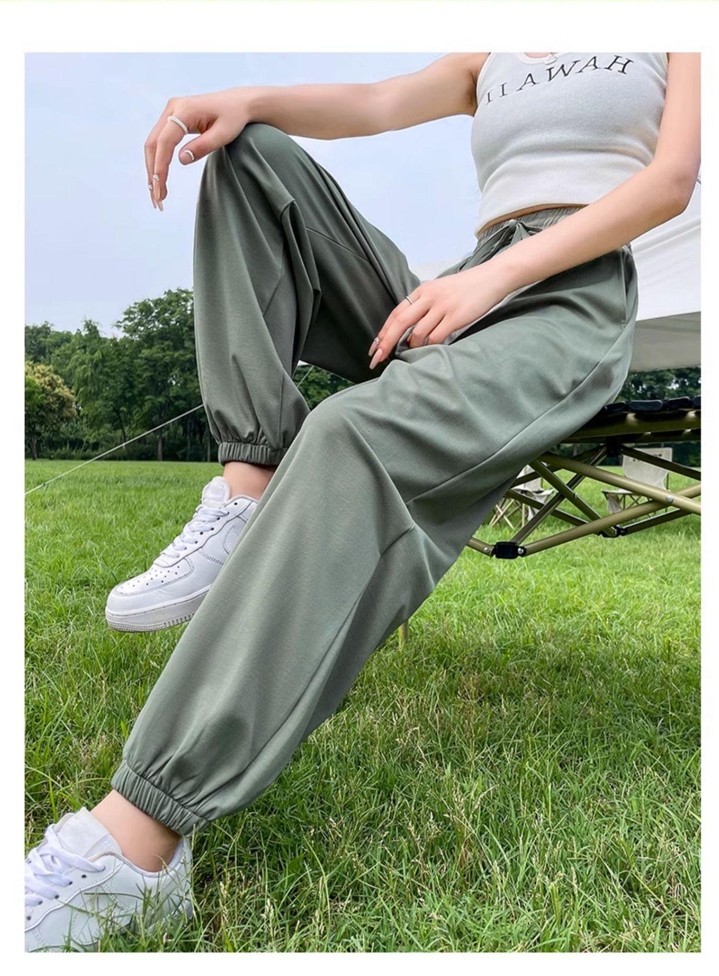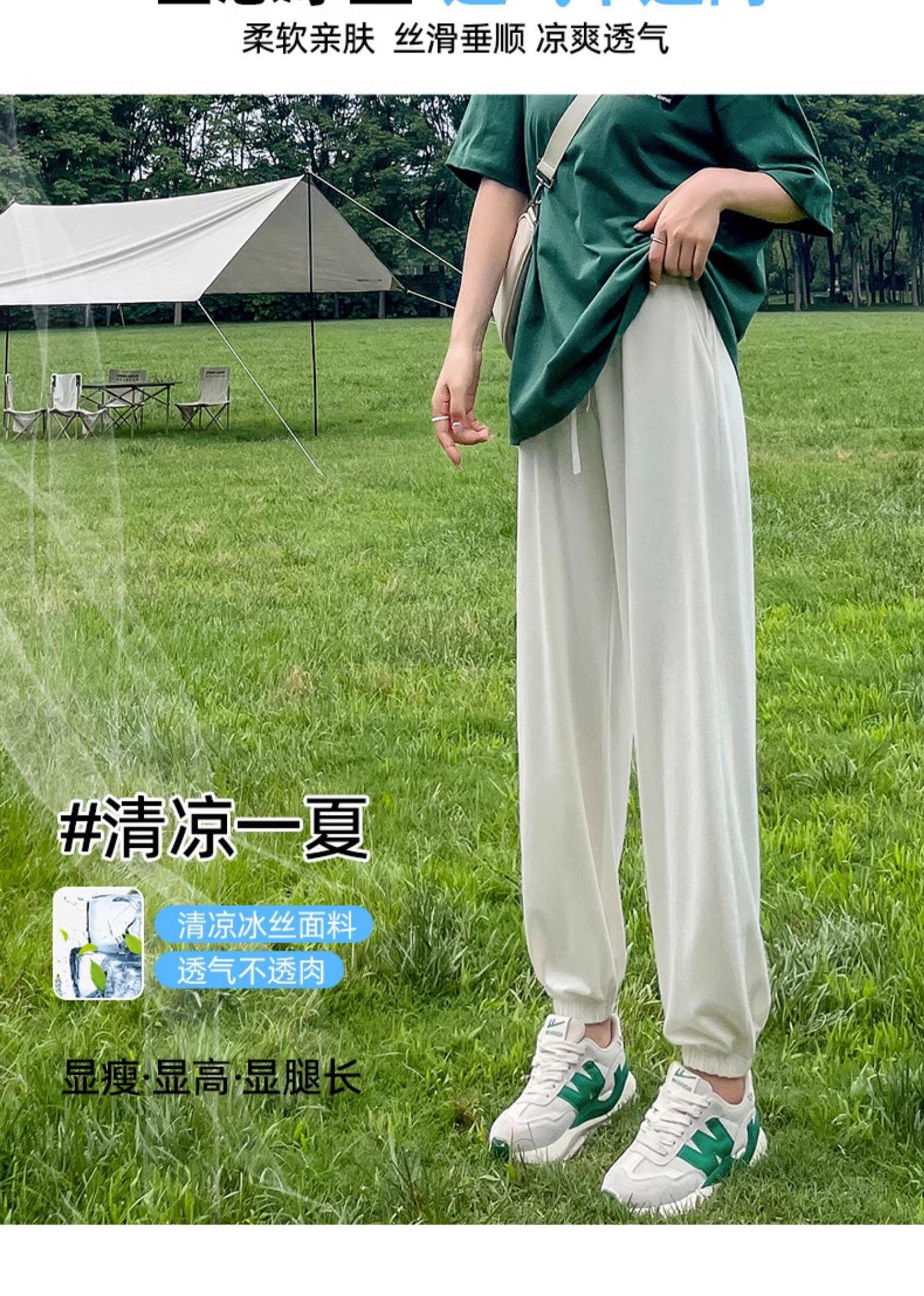 Pantalones deportivos de seda de hielo de talla grande para mujer, nuevos pantalones bombachos holgados de verano, pantalones casuales recortados de cintura alta y finos.