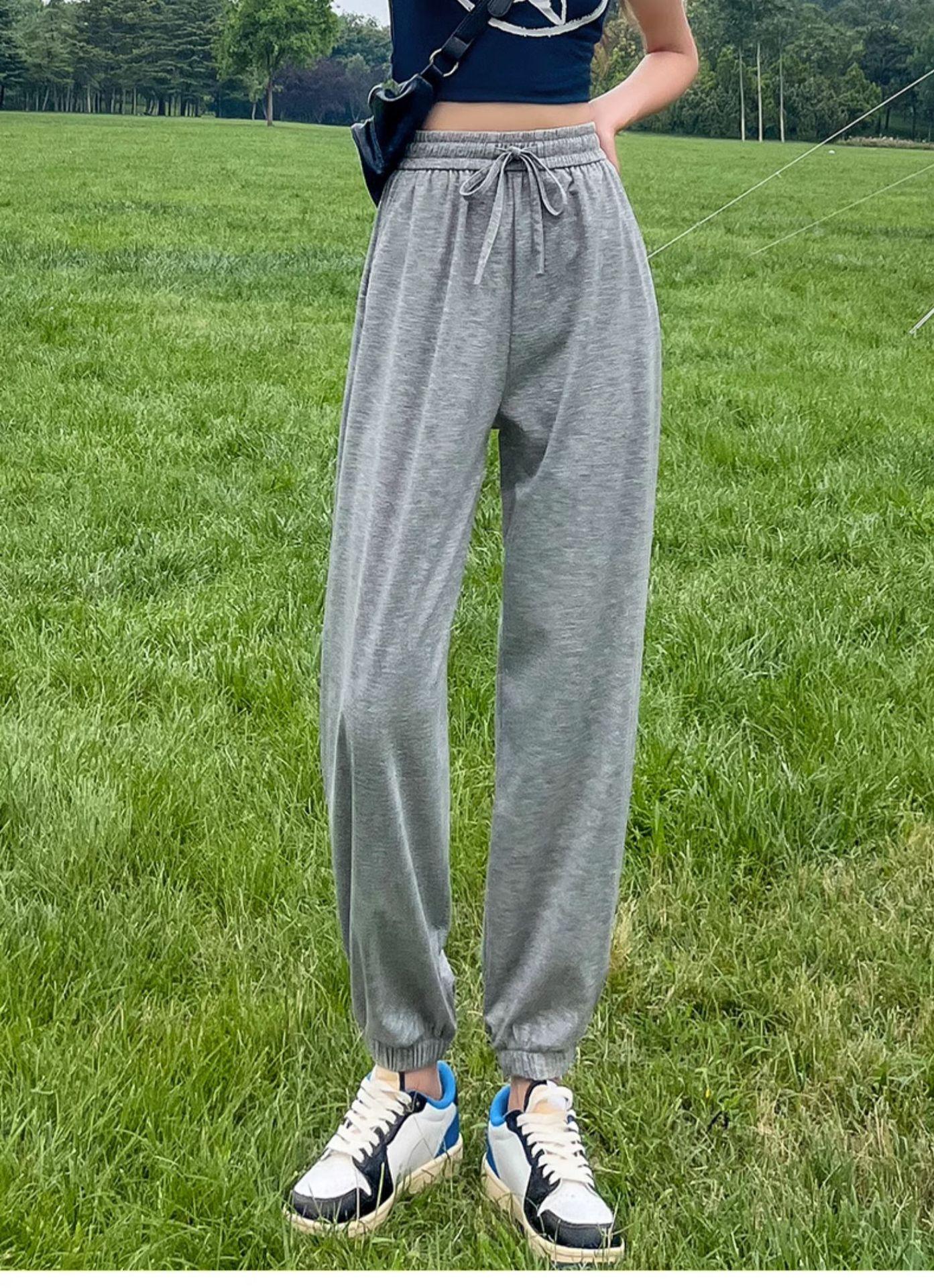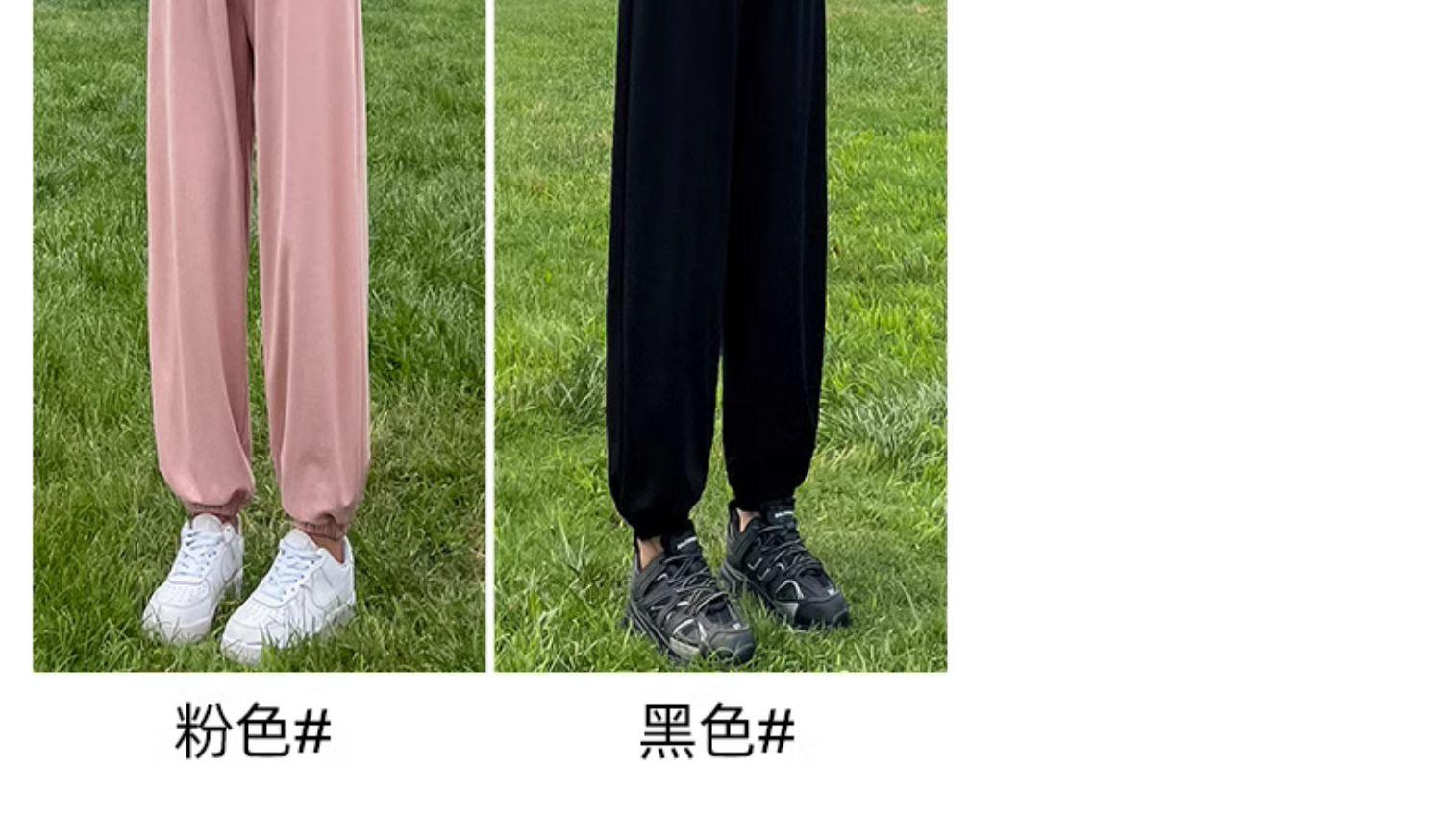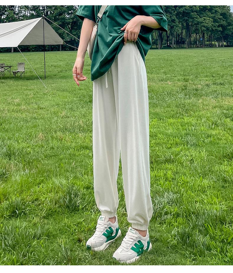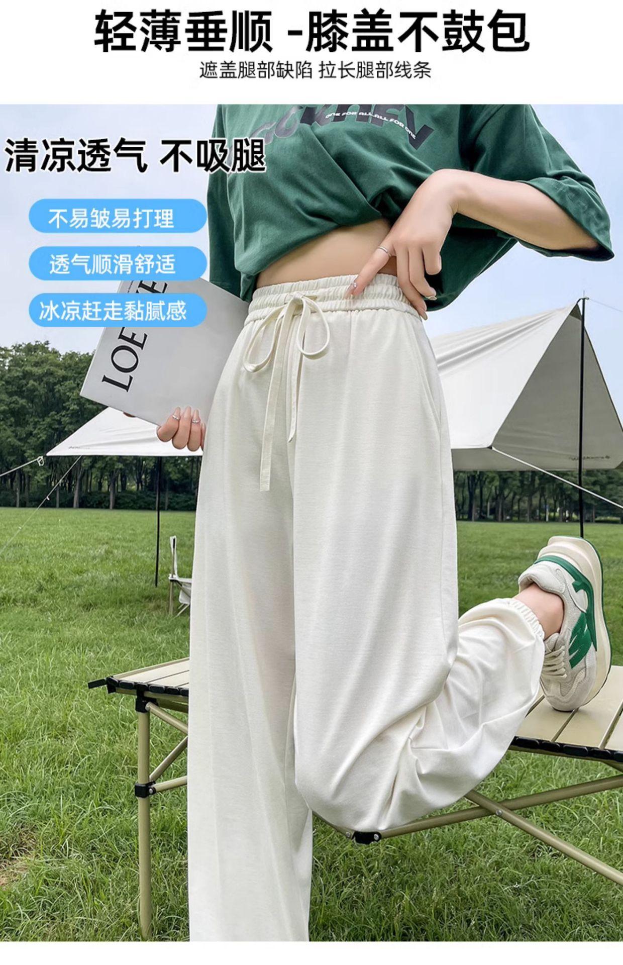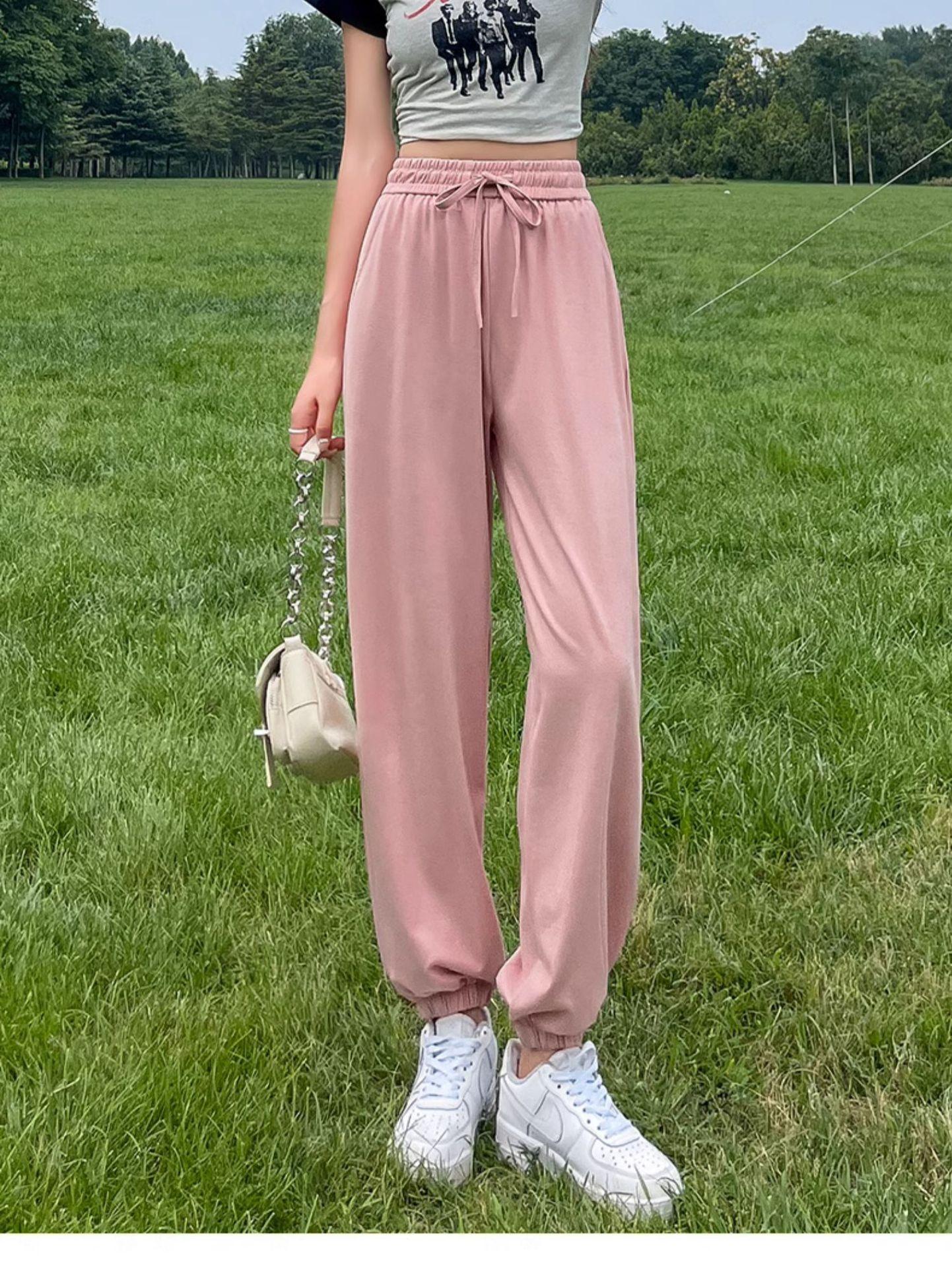 Pantalones deportivos de seda de hielo de talla grande para mujer, nuevos pantalones bombachos holgados de verano, pantalones casuales recortados de cintura alta y finos.