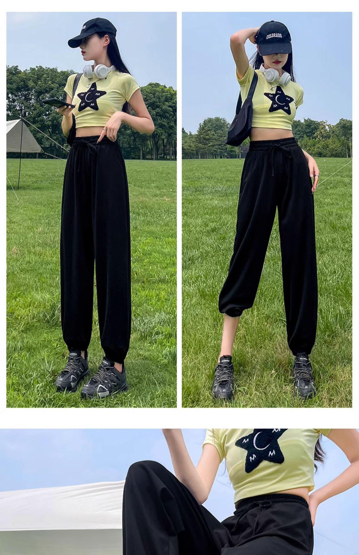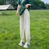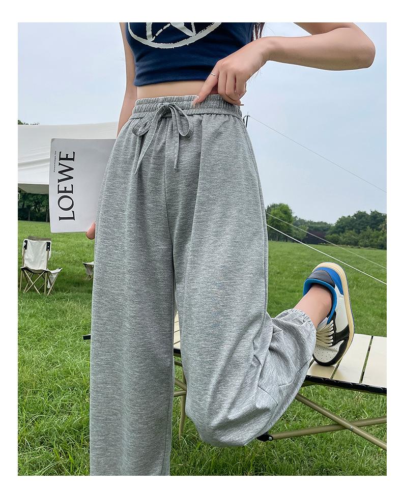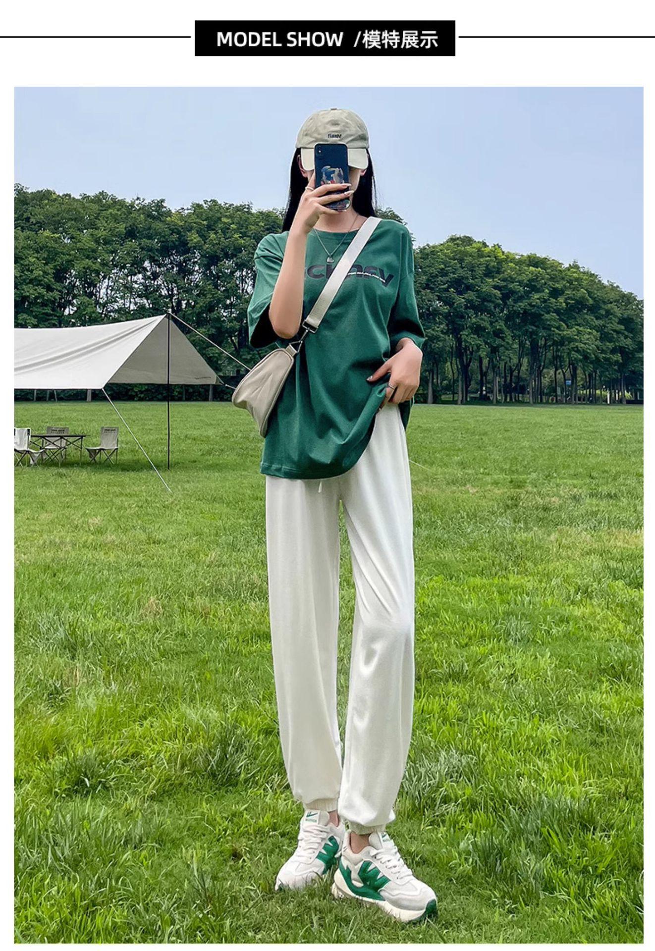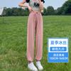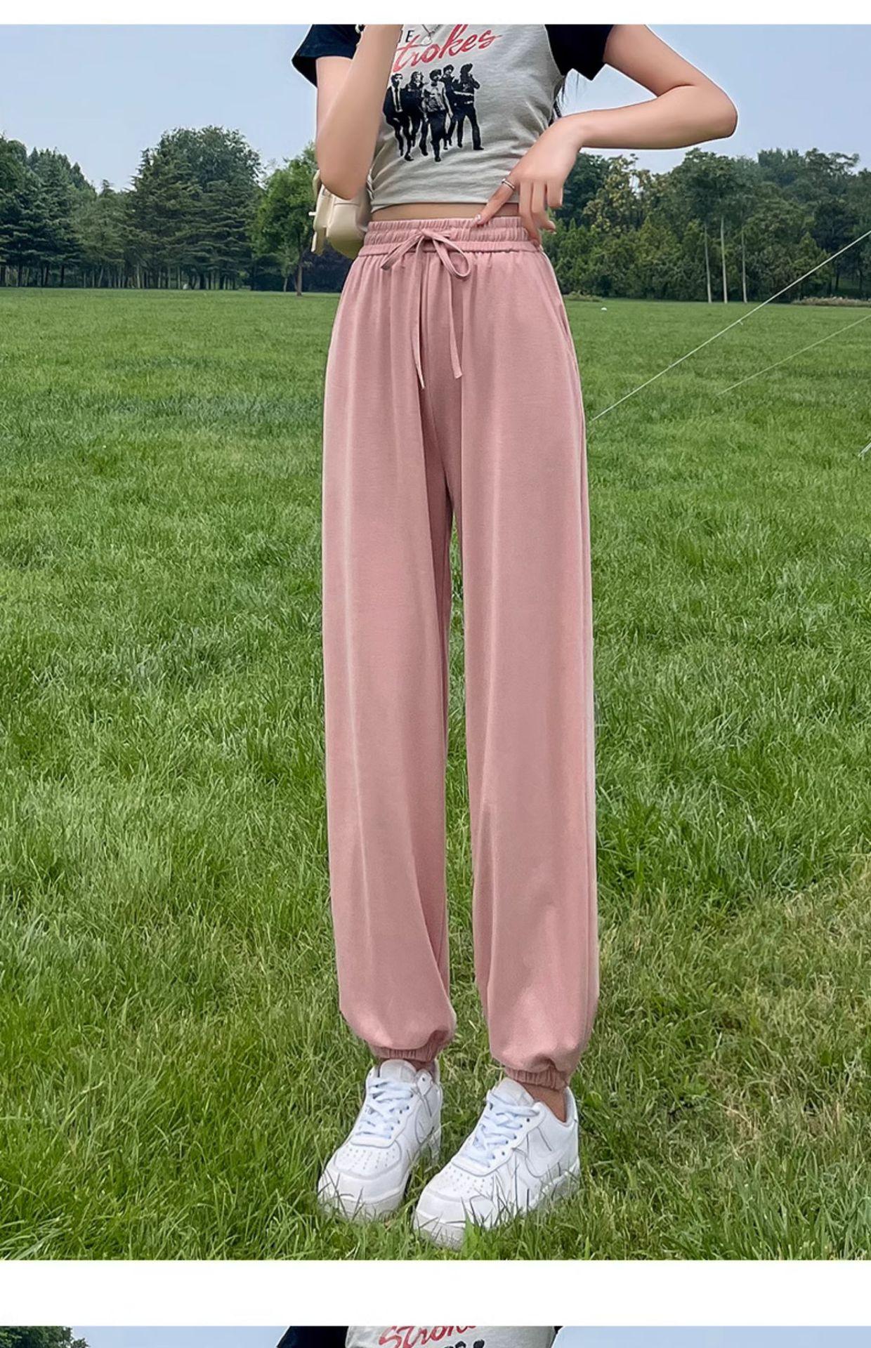 Pantalones deportivos de seda de hielo de talla grande para mujer, nuevos pantalones bombachos holgados de verano, pantalones casuales recortados de cintura alta y finos.