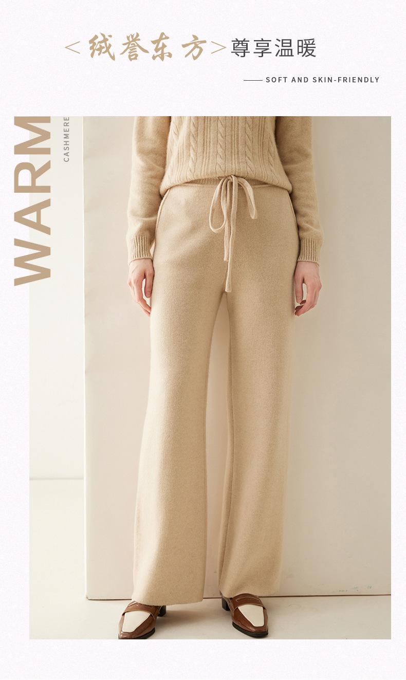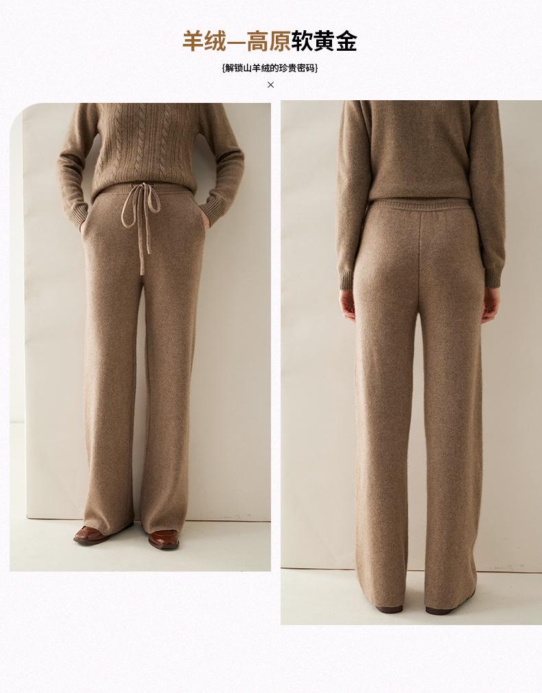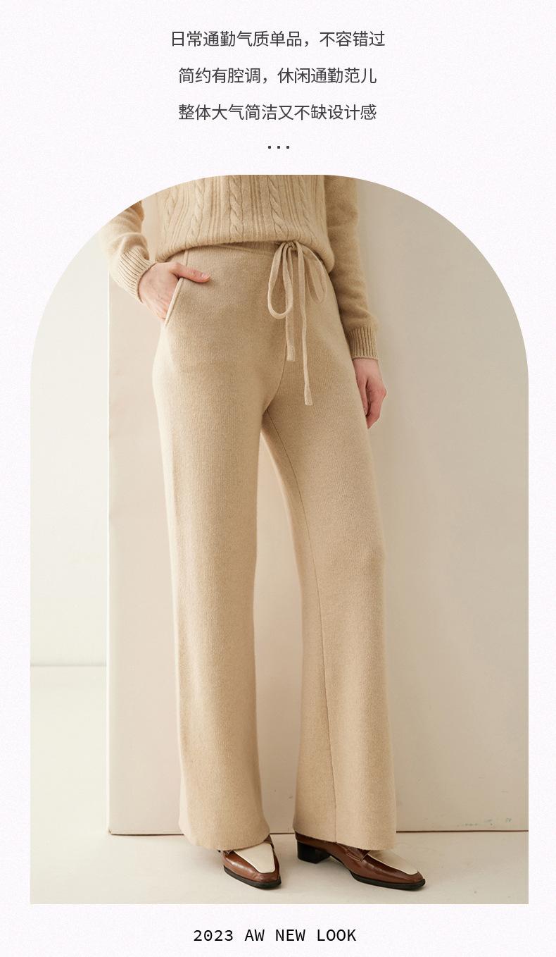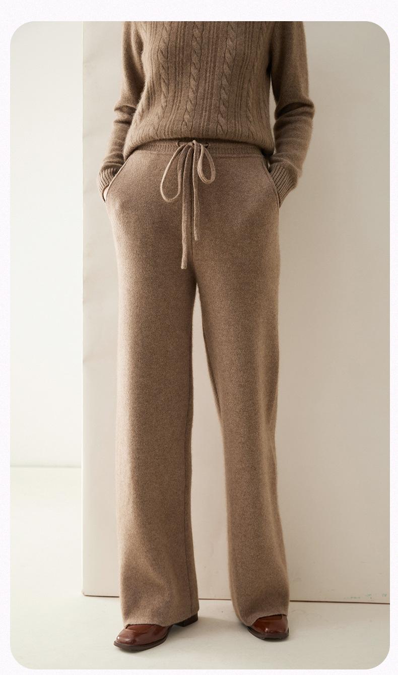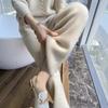 Pantalones de lana adelgazantes para mujer, pantalón de cintura media-alta, elástico, acolchado, de cachemira, rectos y anchos, para otoño e invierno de 2024