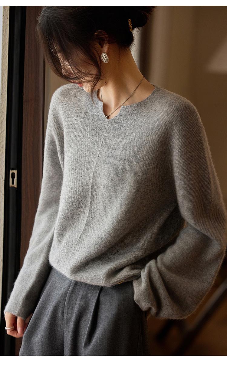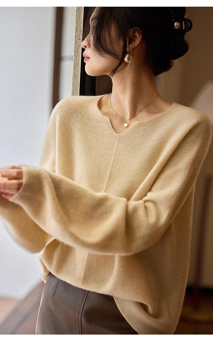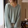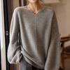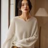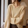 Suéter holgado de lana suave con base encerada de color liso, de manga larga y cuello en V, estilo relajado, para mujer de principios de primavera