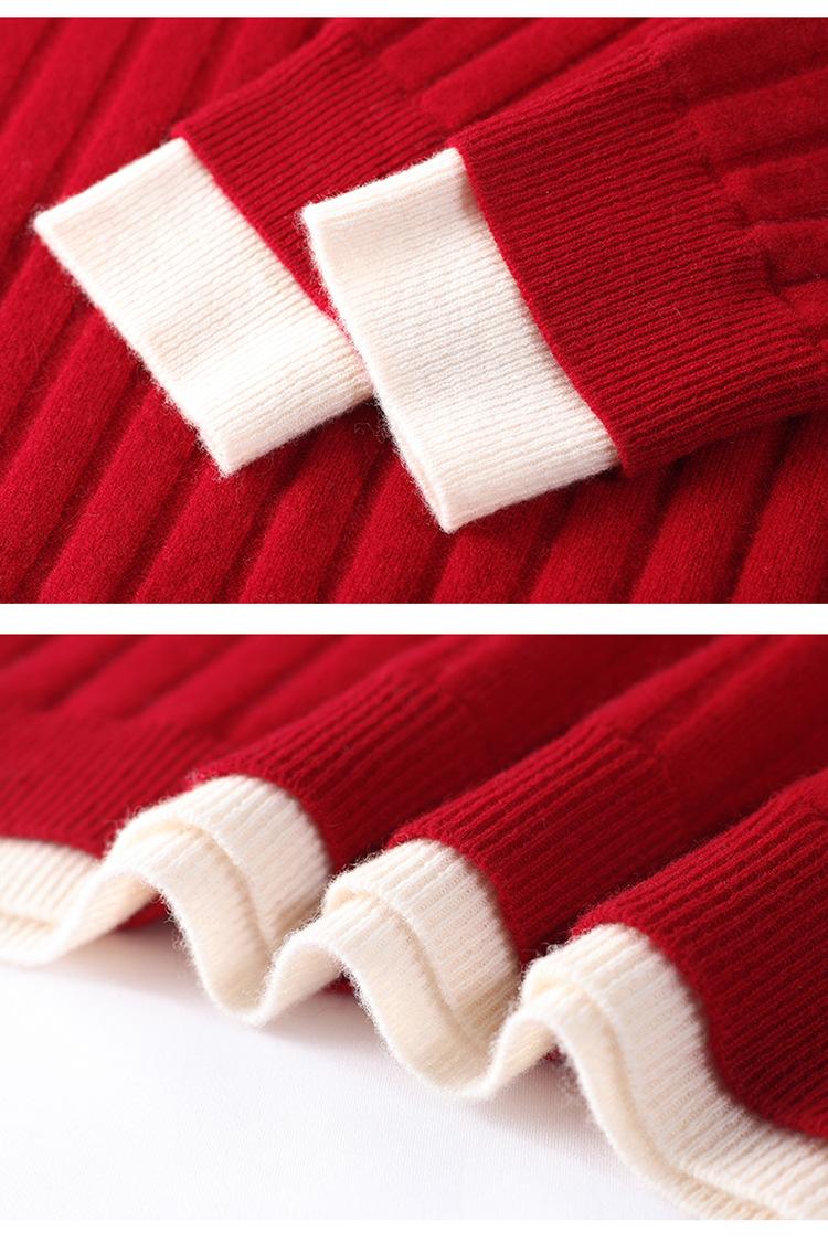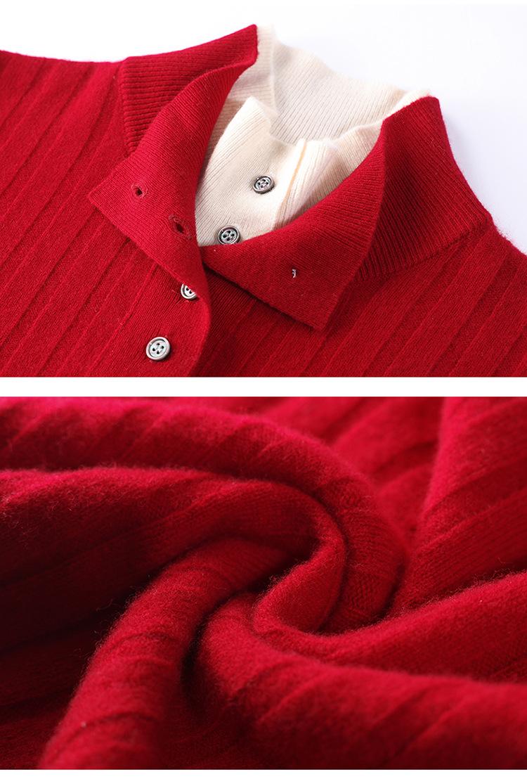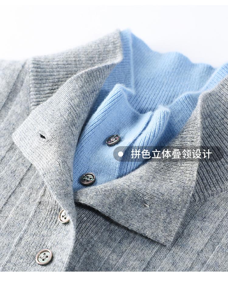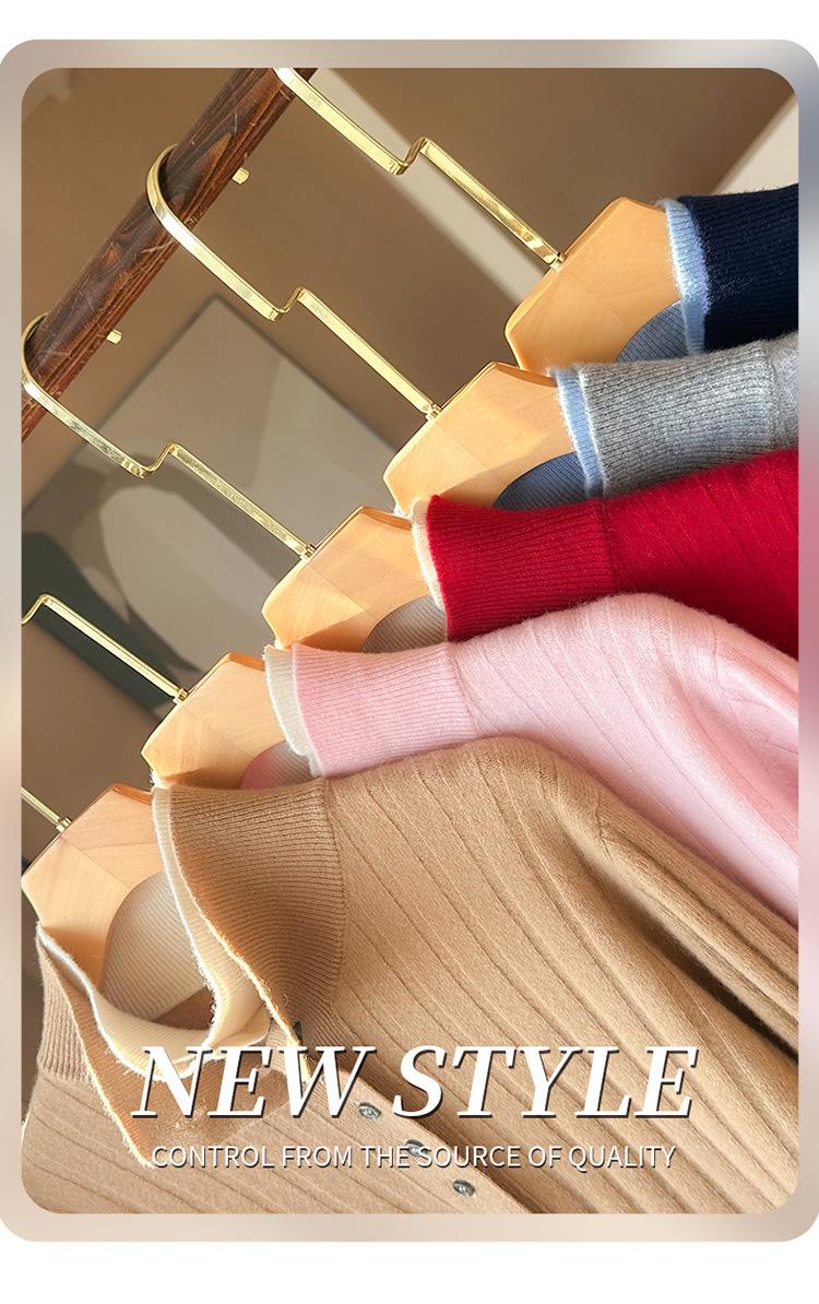 Suéter de Lana Pura Diseño Sensorial Color Contraste Falso Dos Piezas Cuello Alto Top de Punto para Mujer Otoño e Invierno Nuevo Suéter Interior