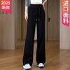 Pantalones anchos de cintura ancha para mujer, primavera 2025, holgados, informales, de cintura alta, rectos, adelgazantes, deportivos