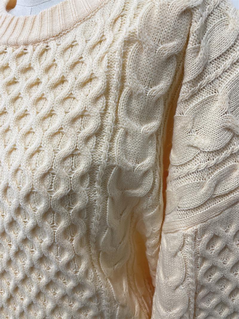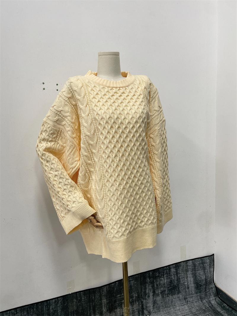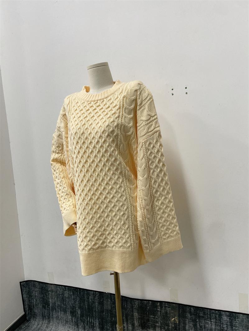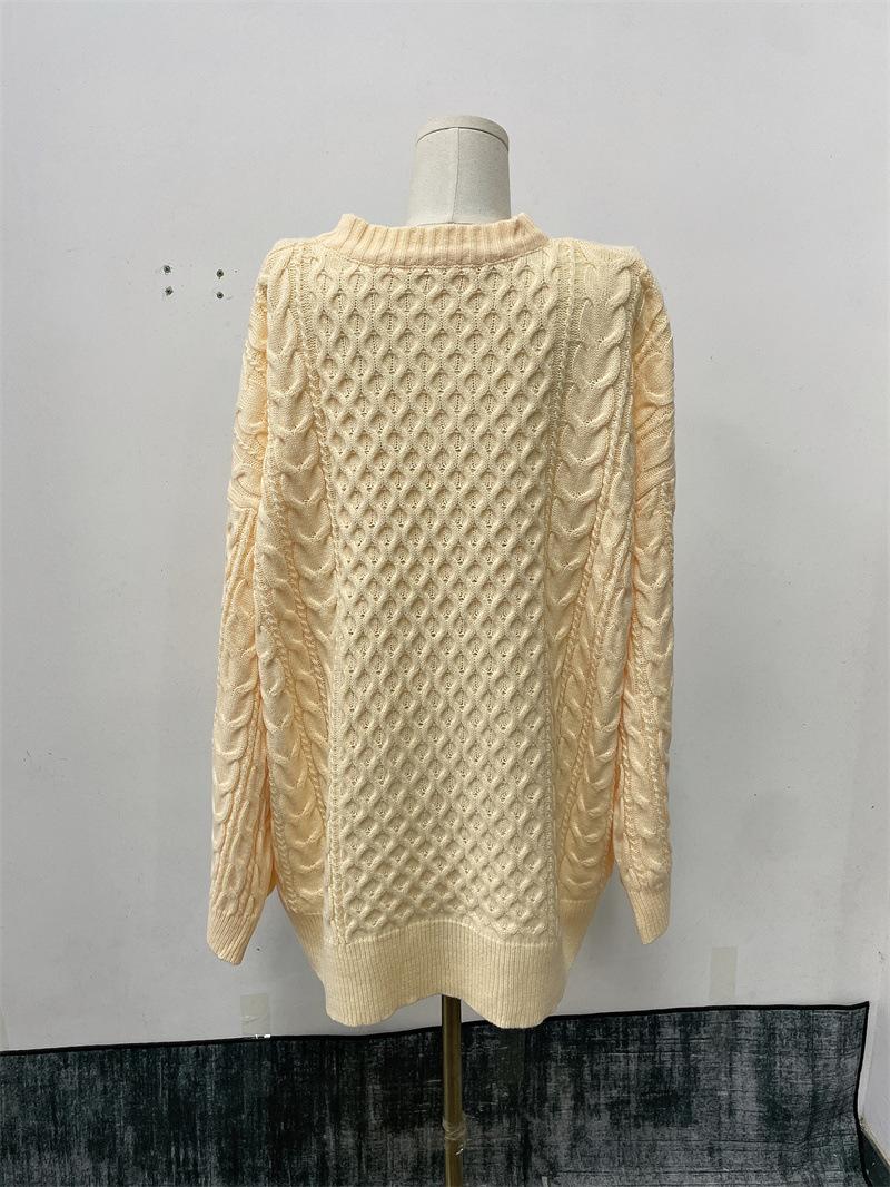 Suéter Holgado Perezoso Torcido de Punto de Manga Larga para Mujer Nuevo Europeo y Americano Transfronterizo Casual de Punto Combinable
