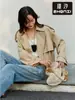 Abrigo corto recto informal, sencillo, moderno y de manga larga con cuello vuelto para mujer de Zhen Xi CQ325