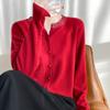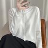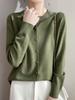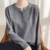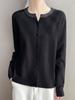 Cárdigan de punto con cuello redondo para mujer, chaqueta interior holgada, sencilla, de color liso, con diseño de diamantes de imitación y fino exterior.