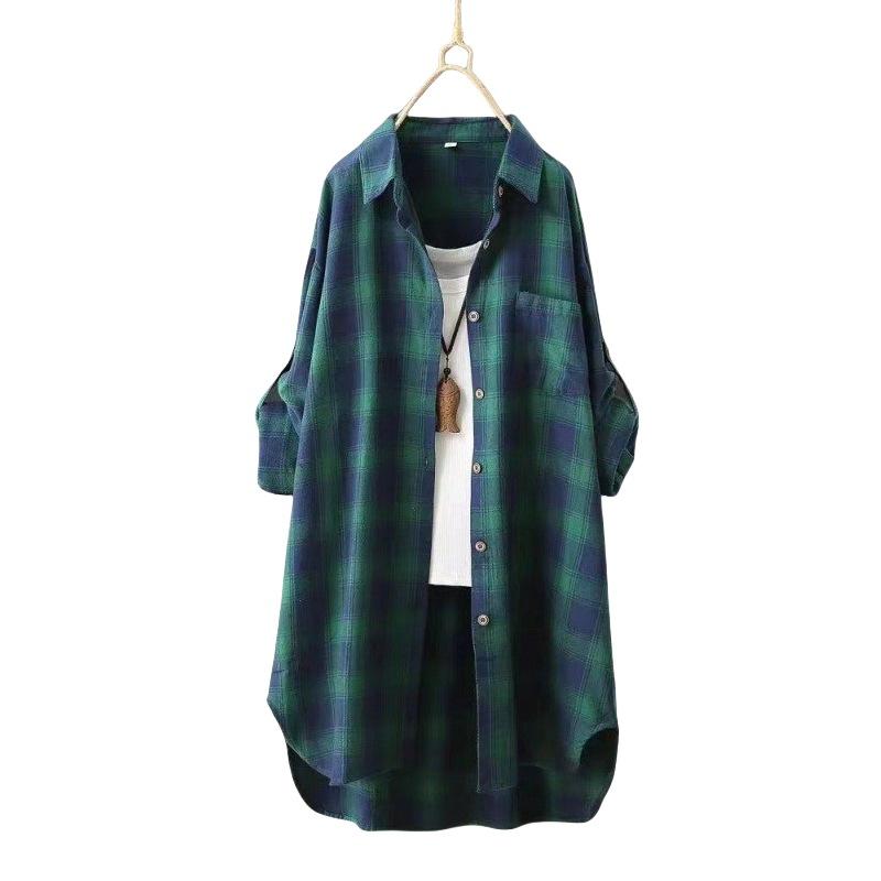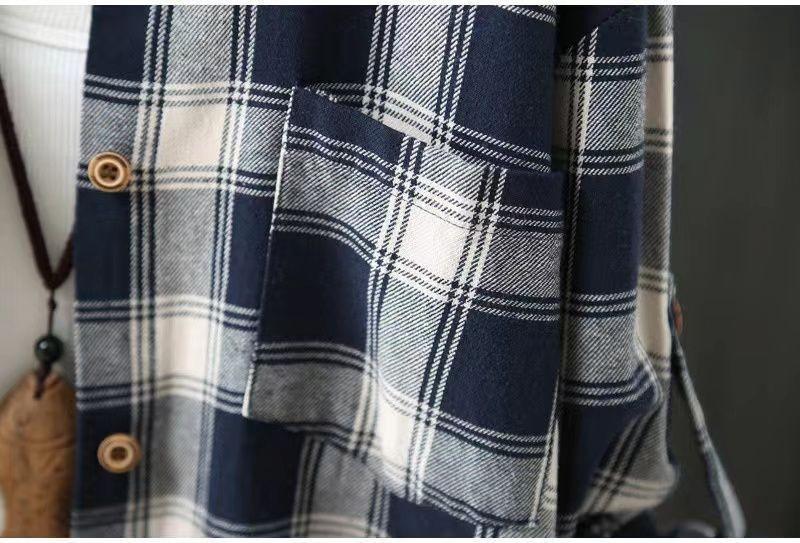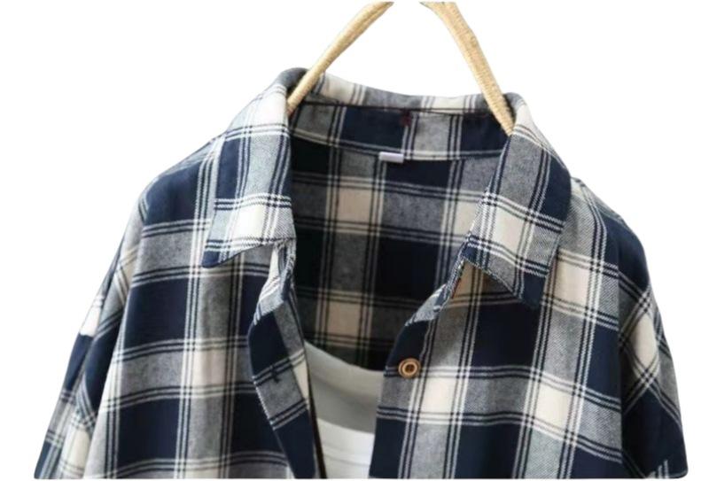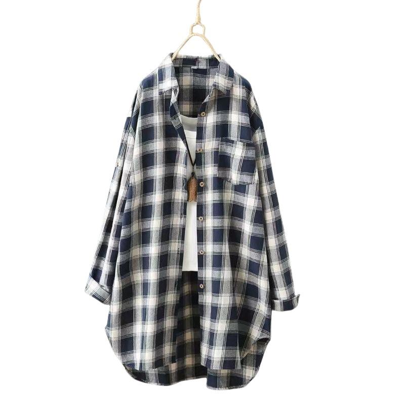 Compra Camisa de manga larga a cuadros para mujer de comercio exterior, top retro de longitud media, chaqueta fina y holgada, camisa transfronteriza de primavera y otoño. al por mayor en Joom.pro