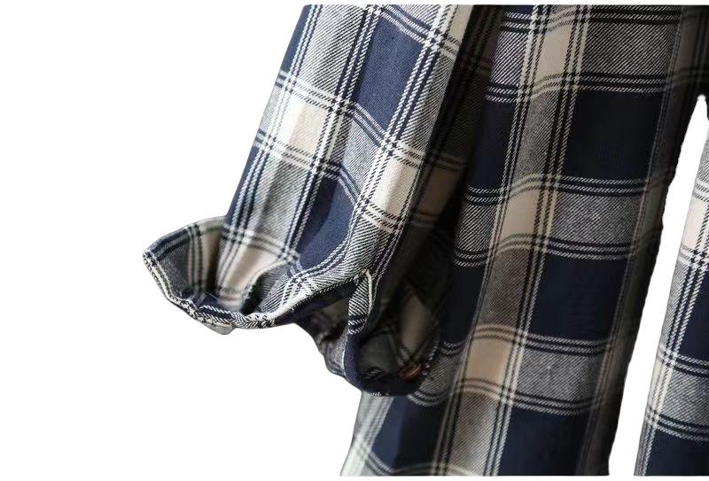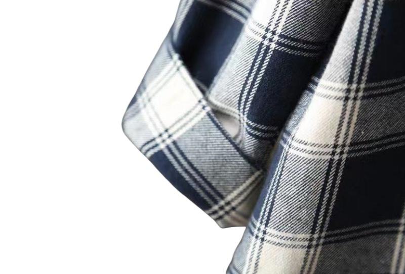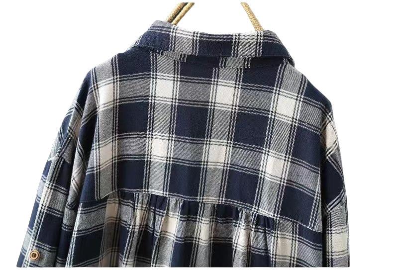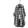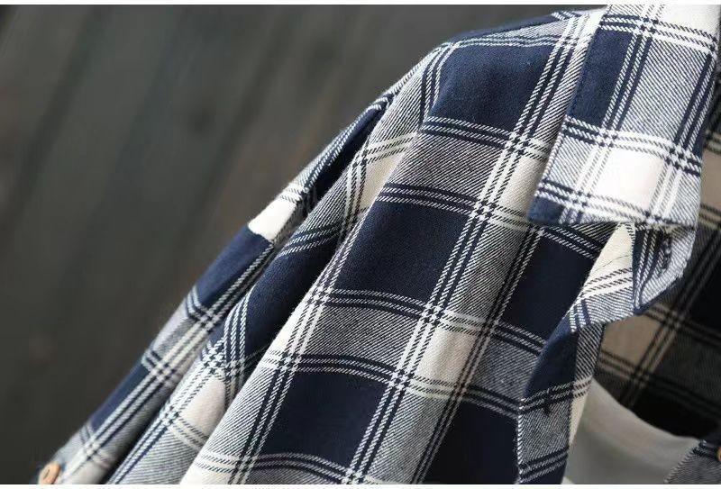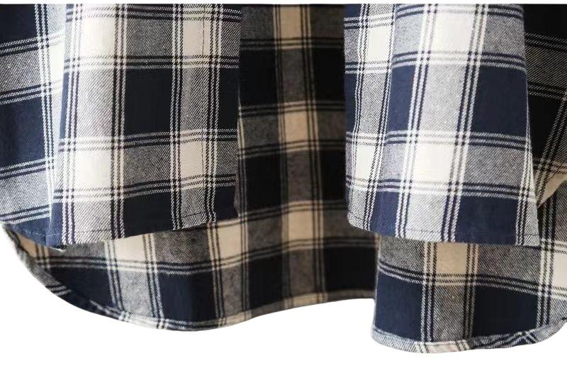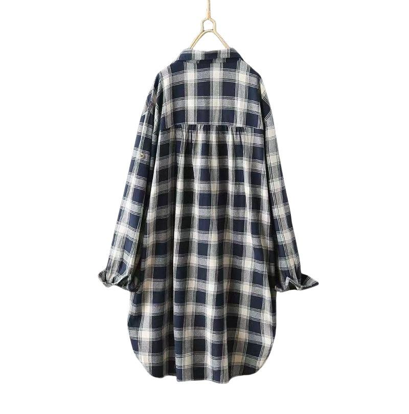 Camisa de manga larga a cuadros para mujer de comercio exterior, top retro de longitud media, chaqueta fina y holgada, camisa transfronteriza de primavera y otoño.