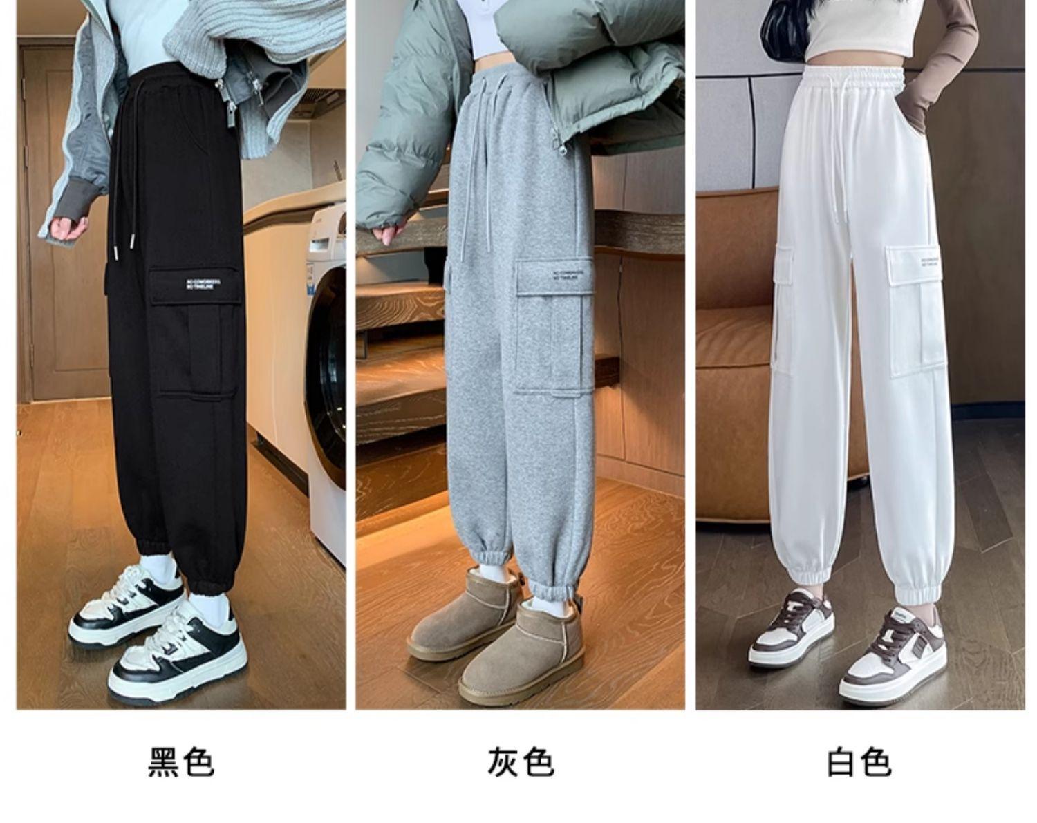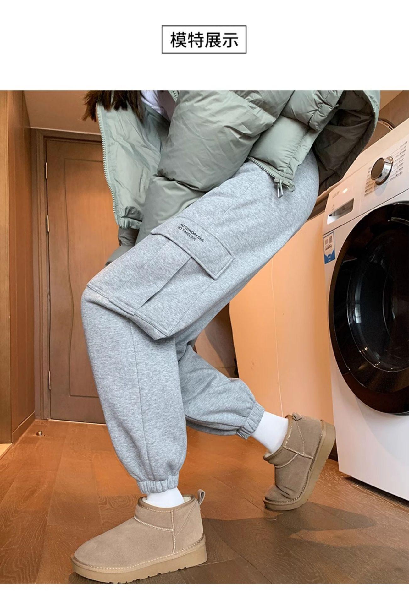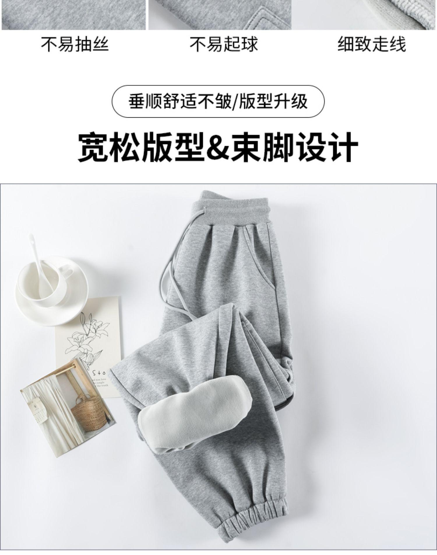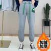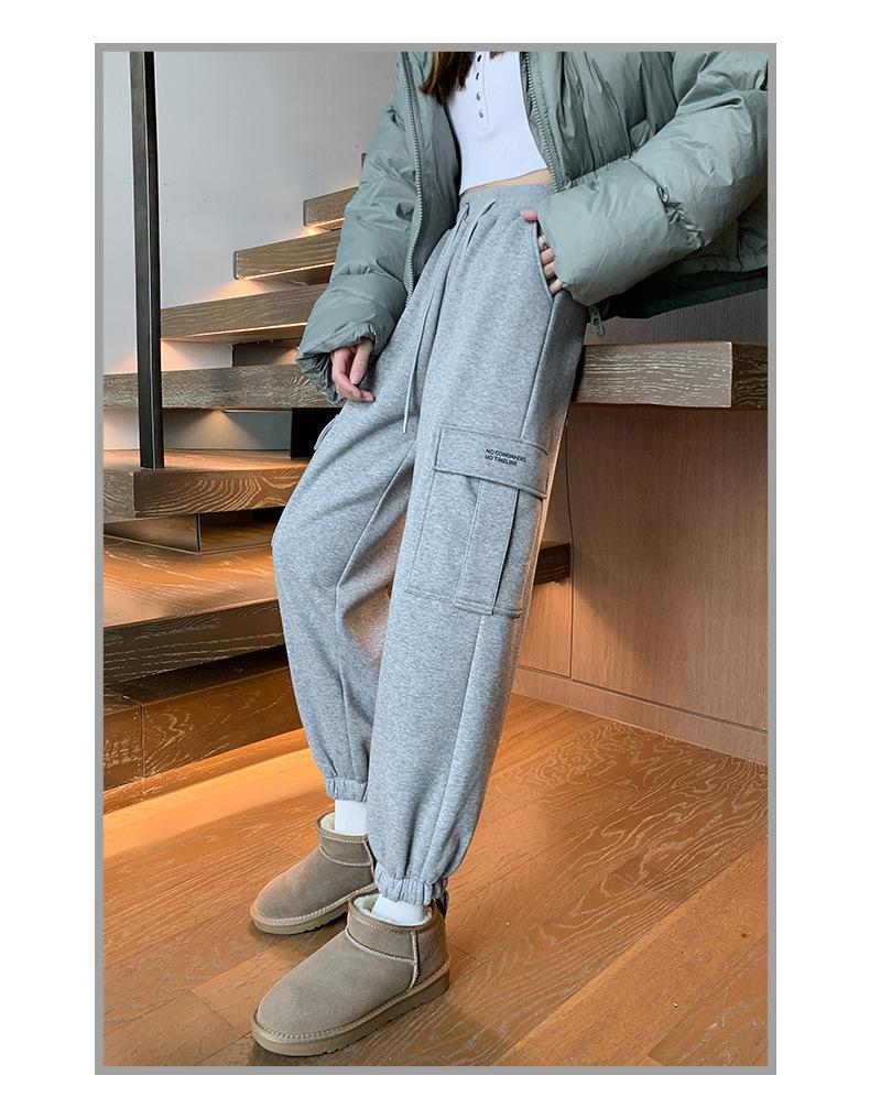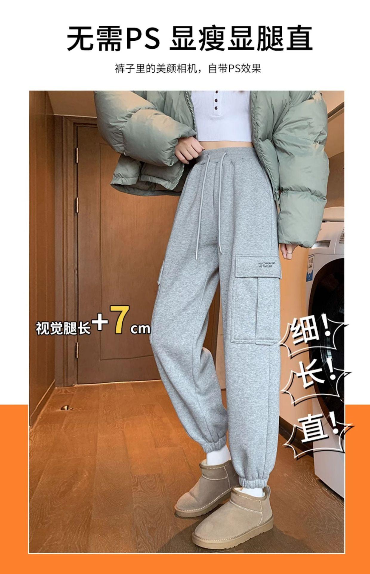 Pantalones deportivos casuales grises para mujer, otoño e invierno, 2024, nuevos pantalones deportivos holgados y adelgazantes con forro polar exterior.