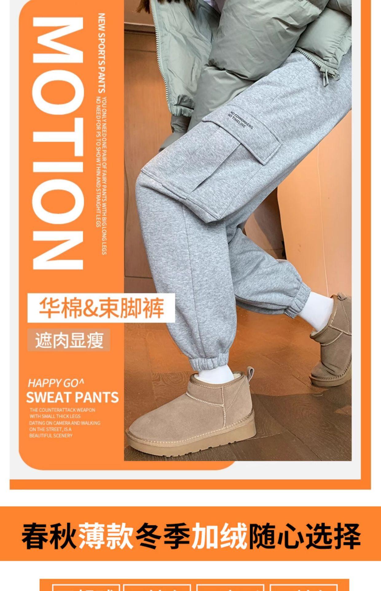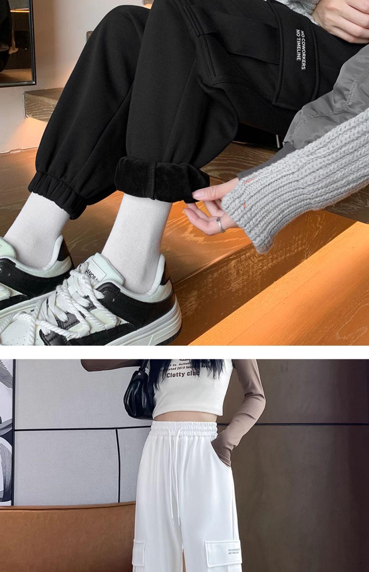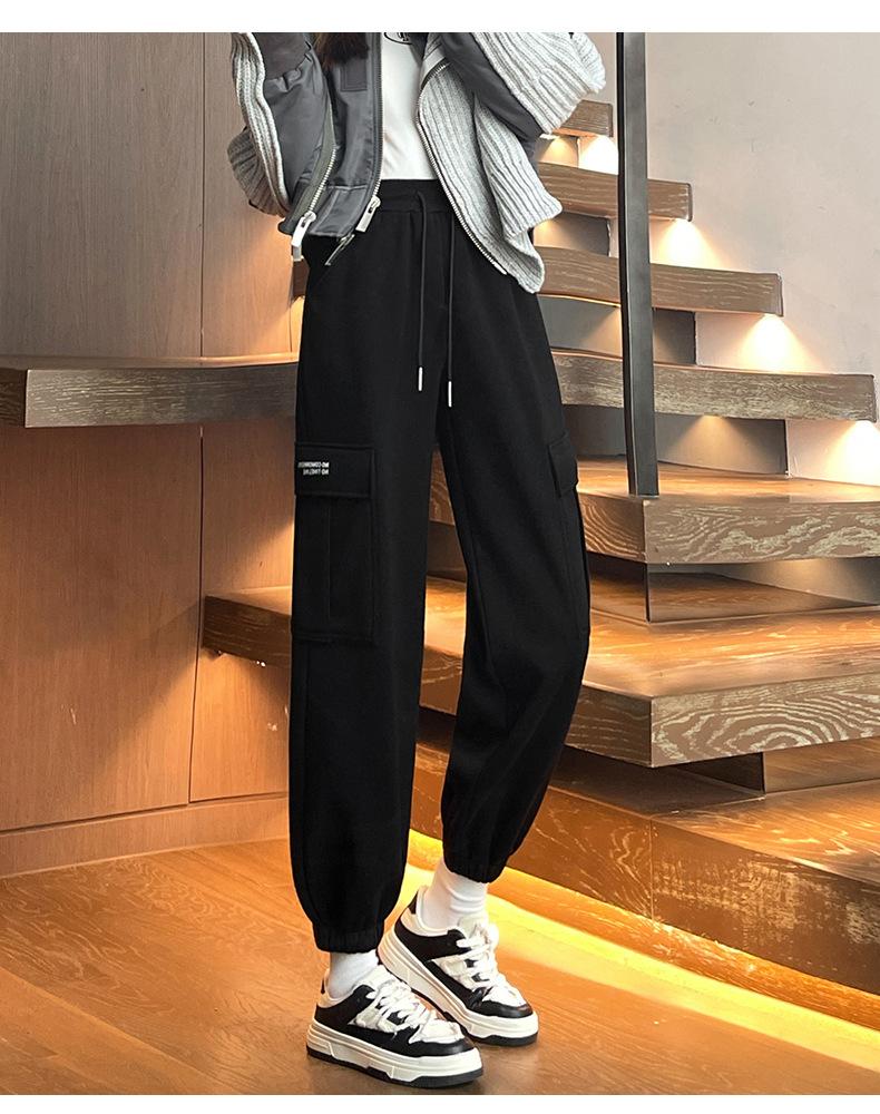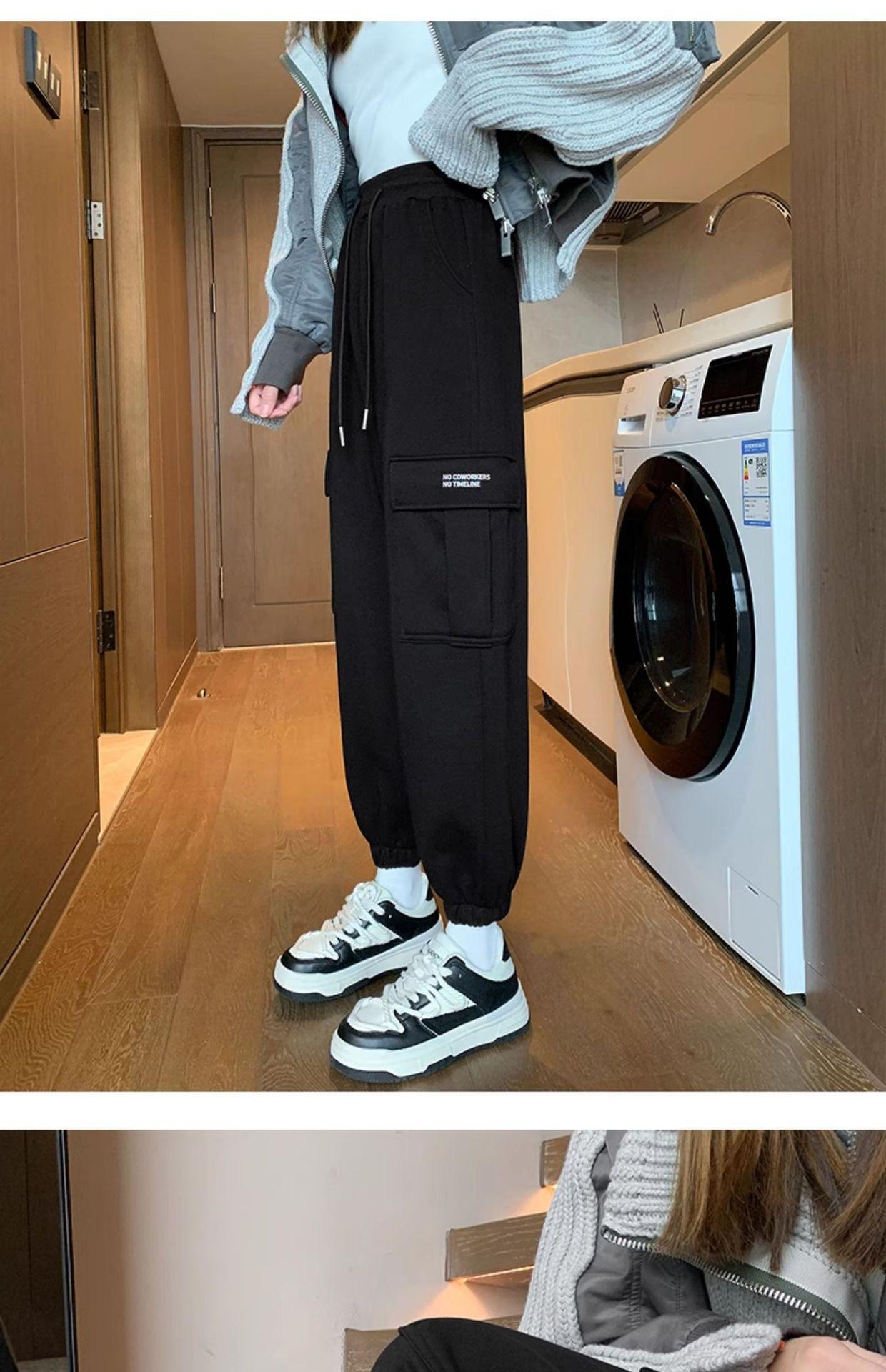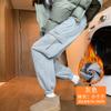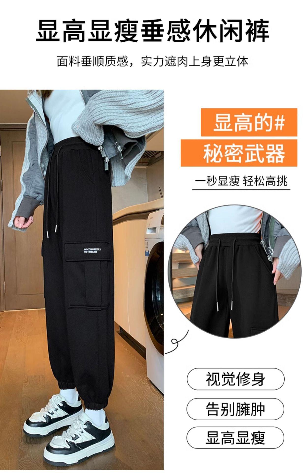 Pantalones deportivos casuales grises para mujer, otoño e invierno, 2024, nuevos pantalones deportivos holgados y adelgazantes con forro polar exterior.