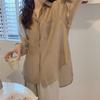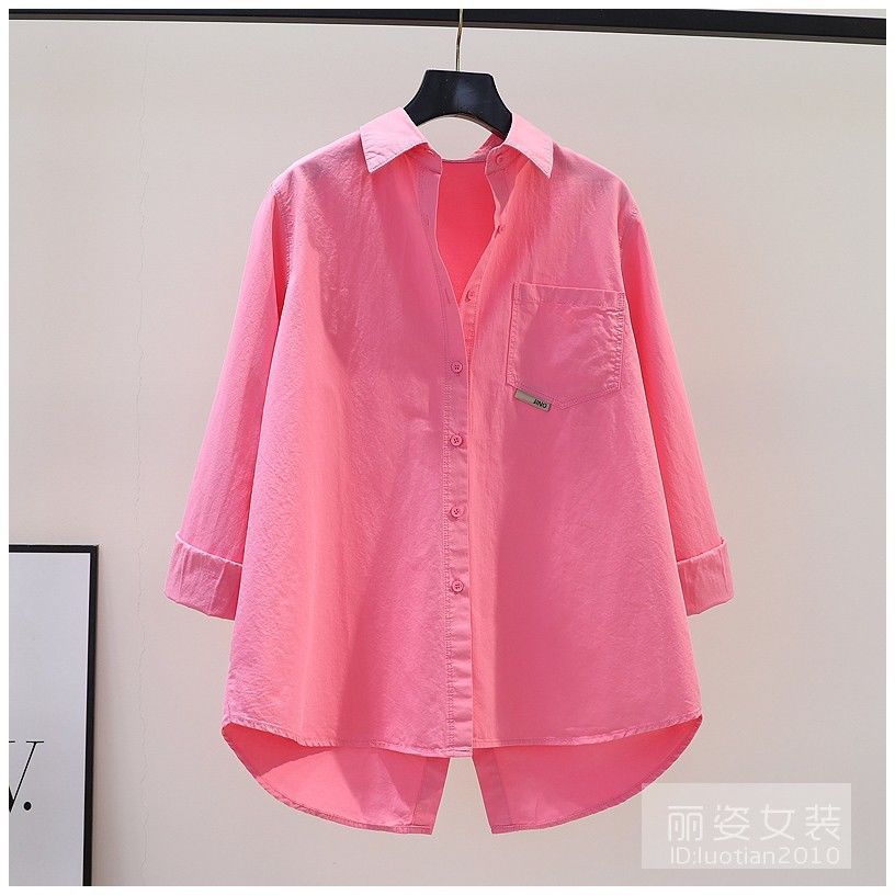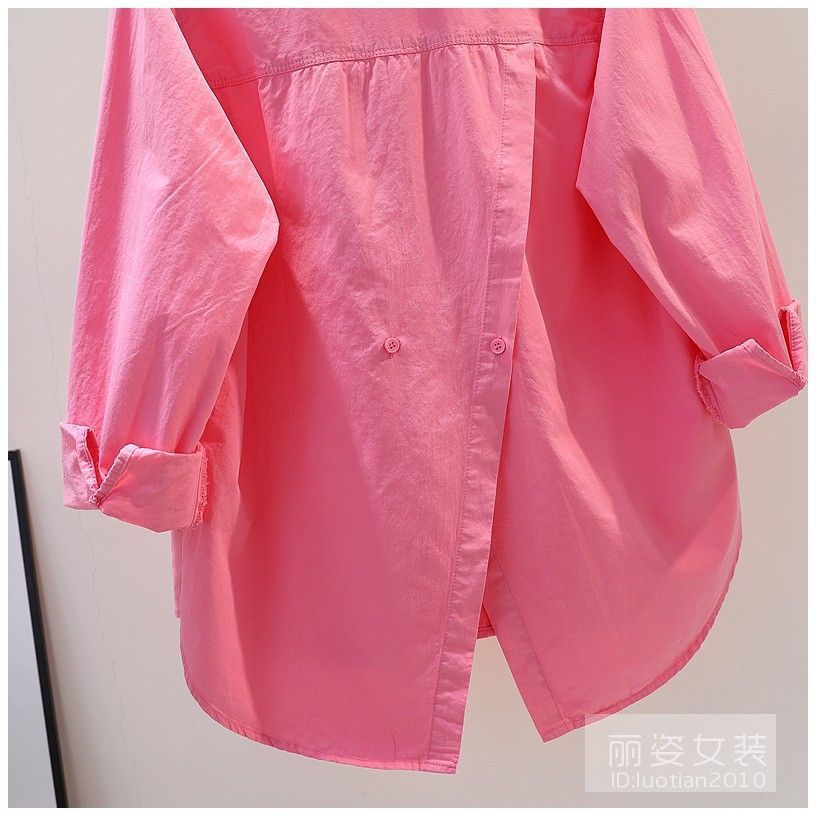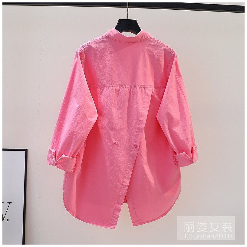 Camisa rosa con abertura en la espalda de Design Sense para mujer, camisa holgada de manga larga para mujer, camisa de gasa combinable para primavera y otoño, top para mujer