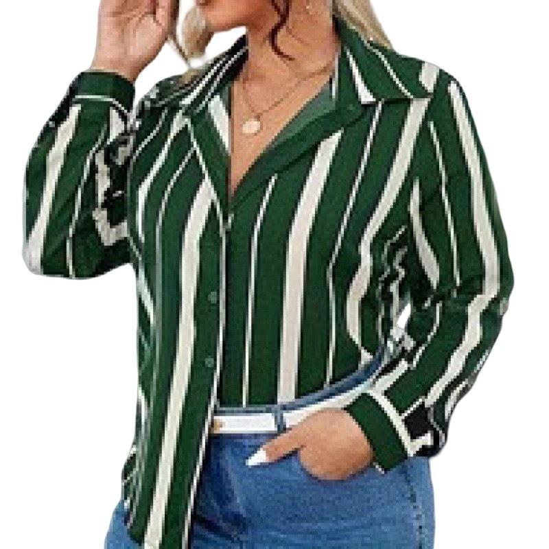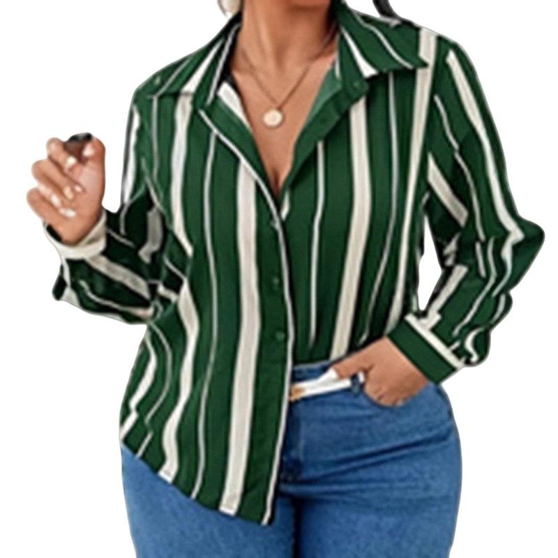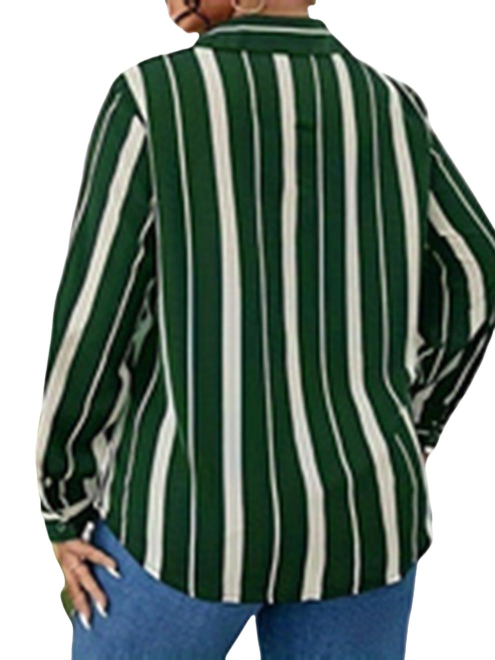 Ropa Europea y Americana de Talla Grande para Mujer 2025 Primavera Nuevo Camisa Rayada de Botones con Cuello en V Camisa de Manga Larga para Mujer