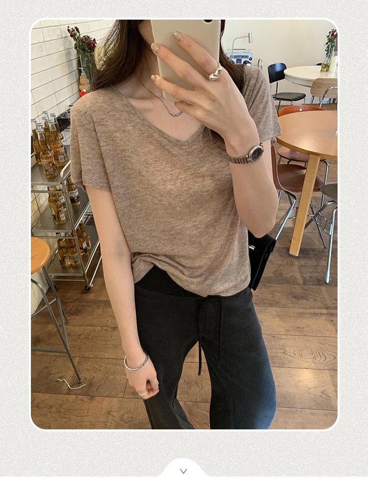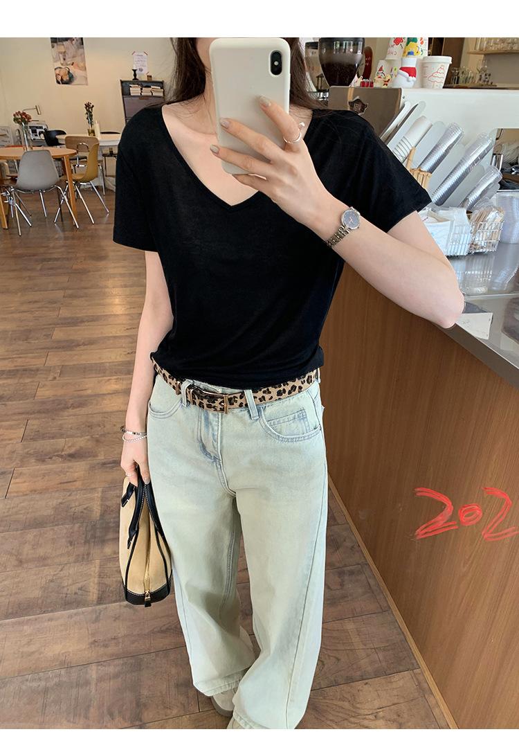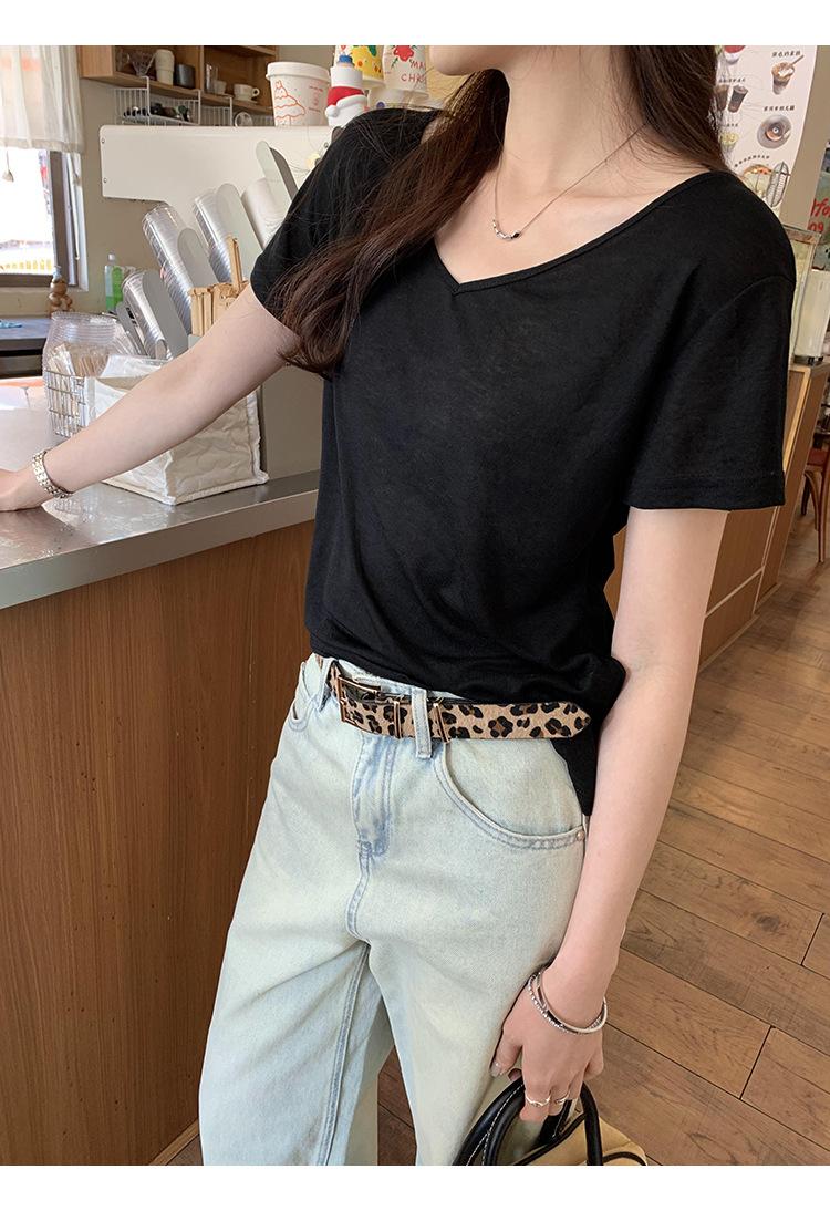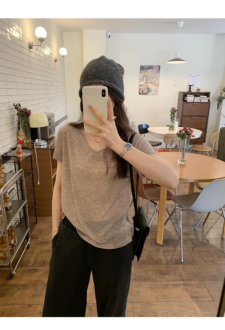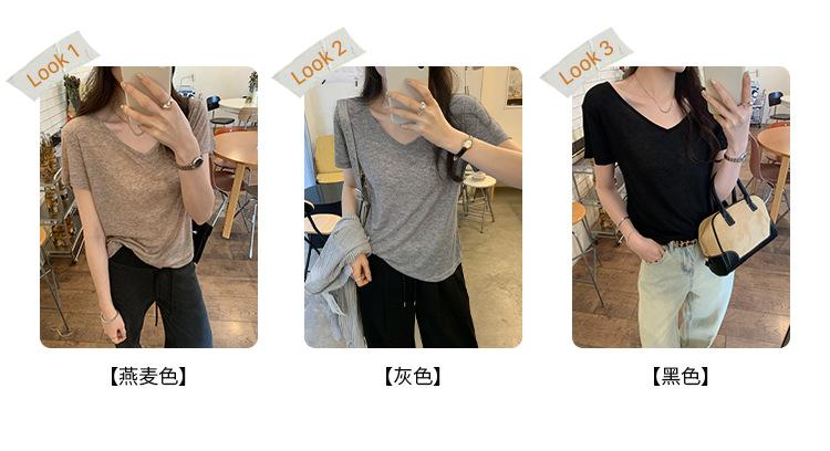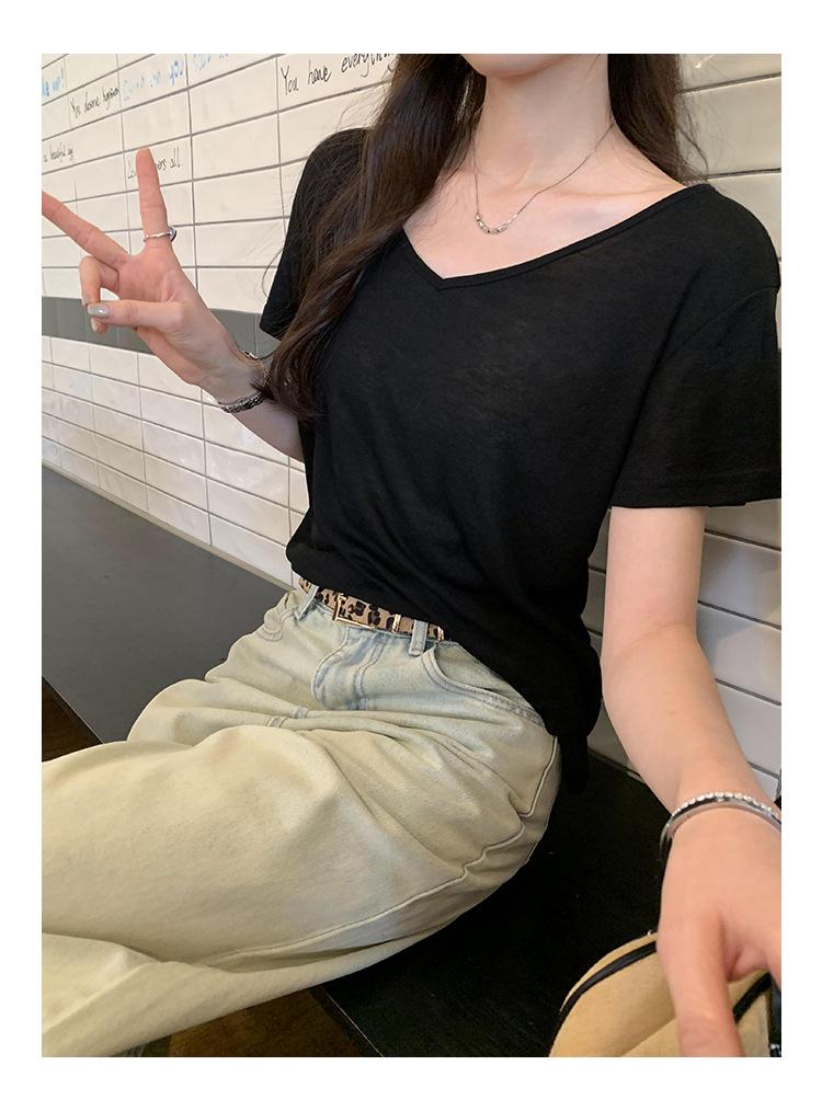 Camiseta holgada de manga corta con cuello en V y diseño de estilo europeo para mujer, buena camiseta ajustada de verano 2025.