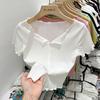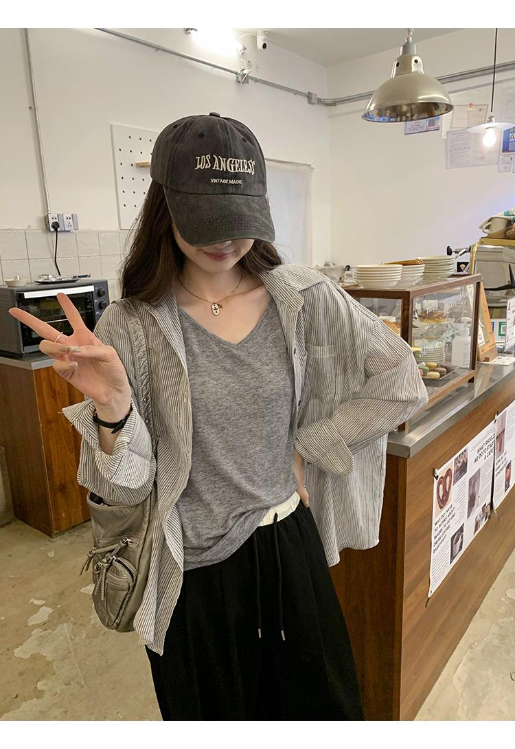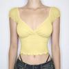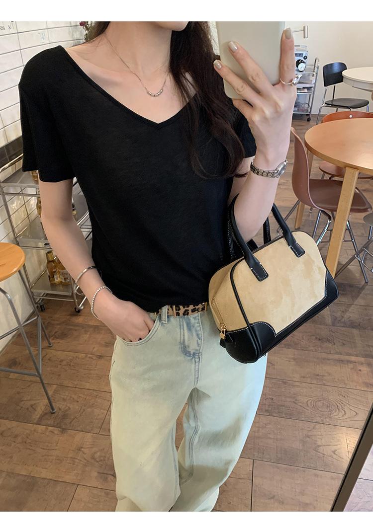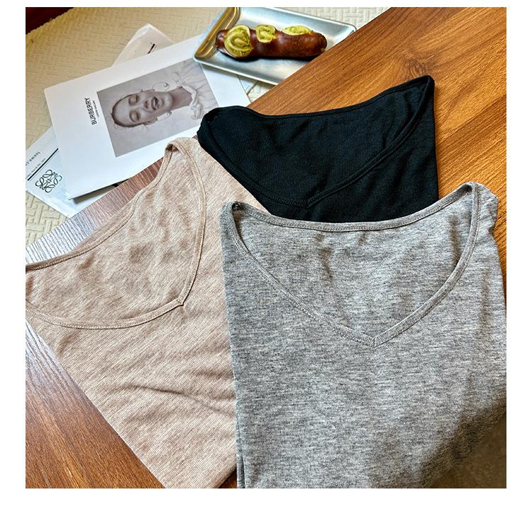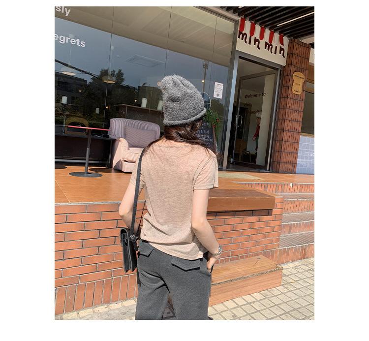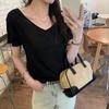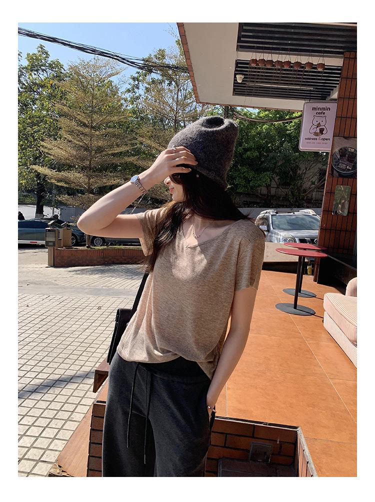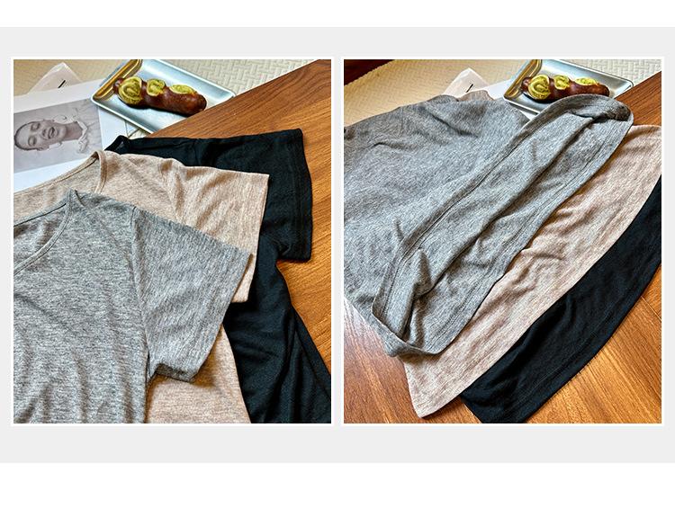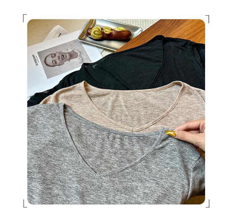 Camiseta holgada de manga corta con cuello en V y diseño de estilo europeo para mujer, buena camiseta ajustada de verano 2025.