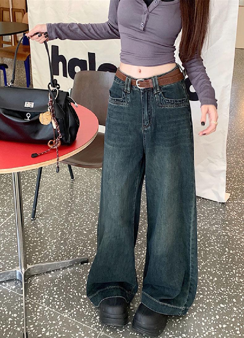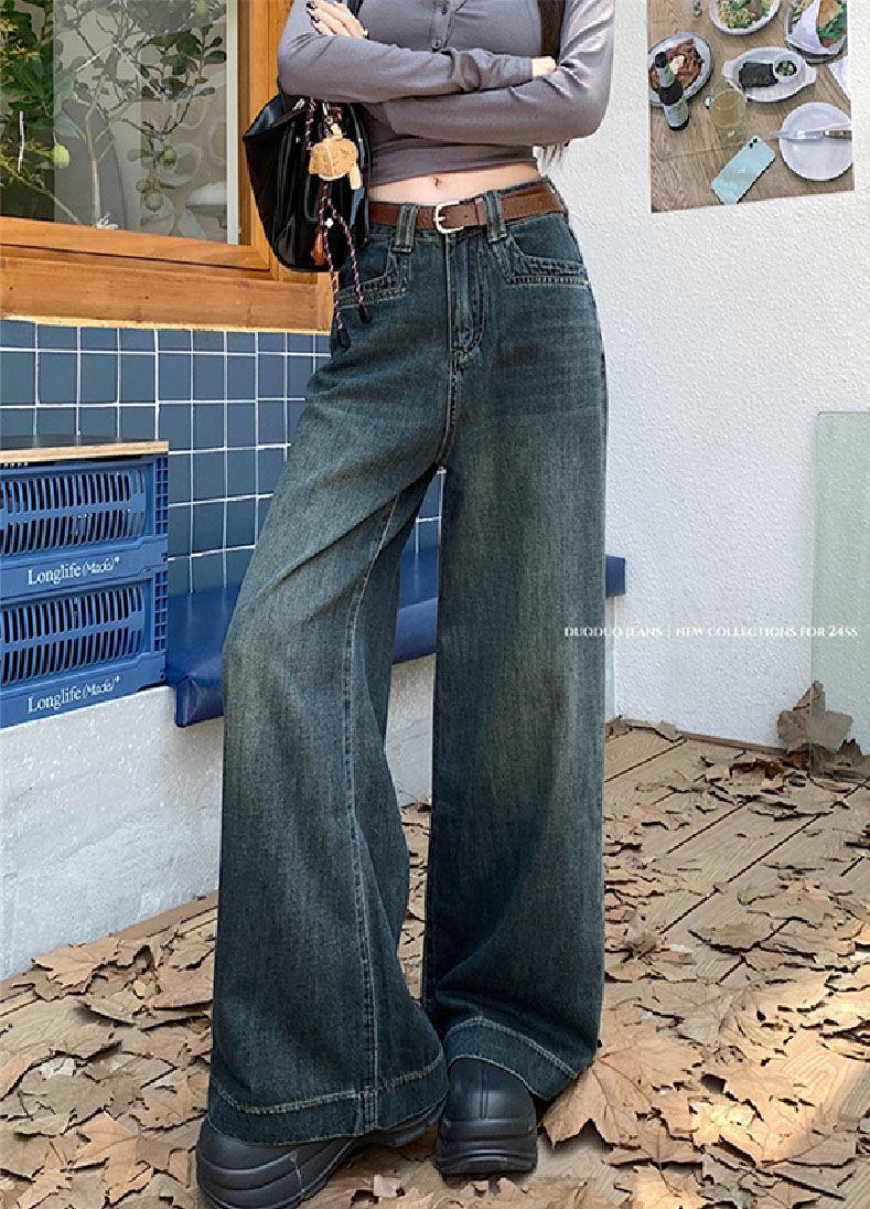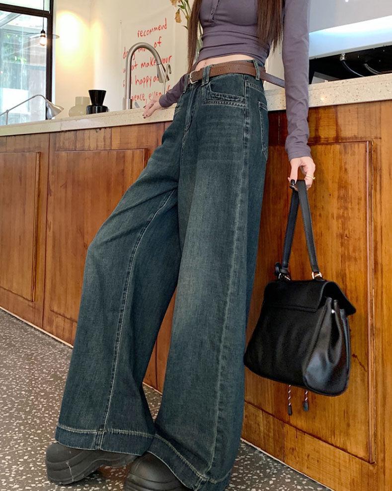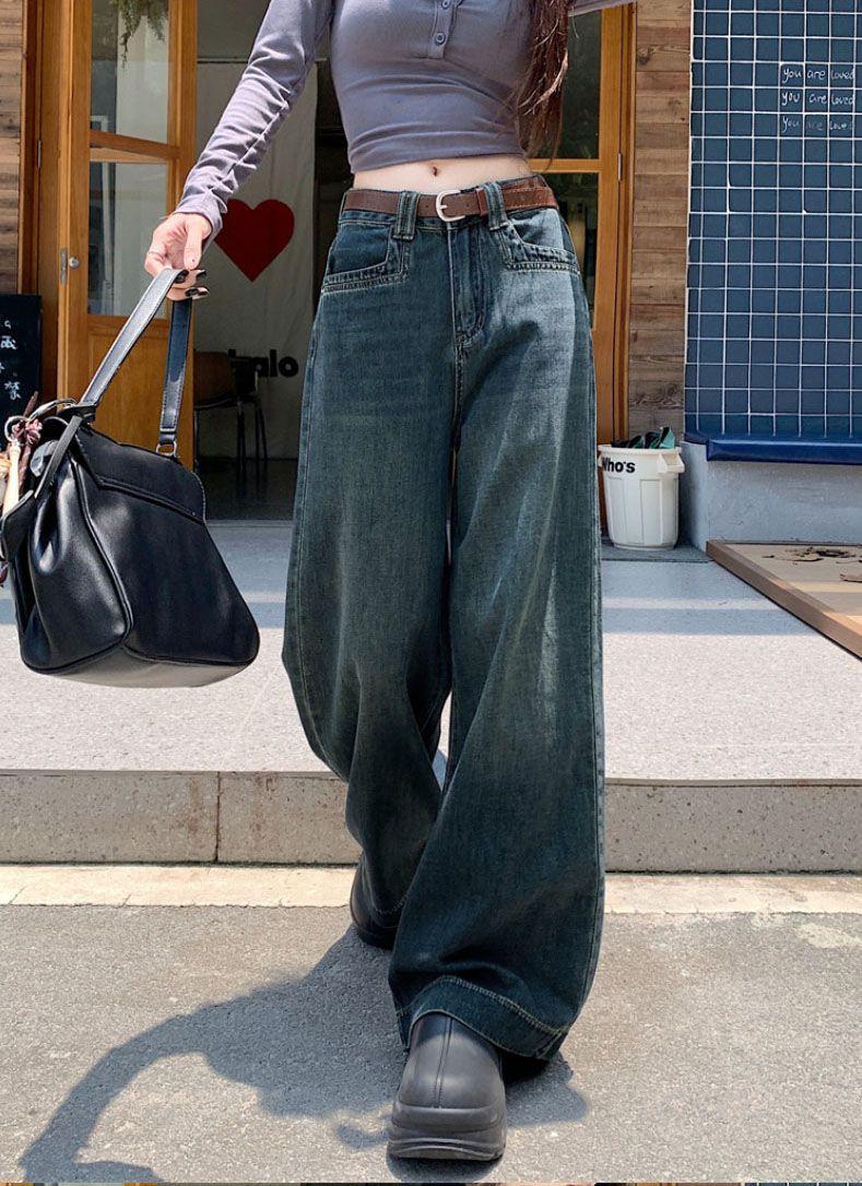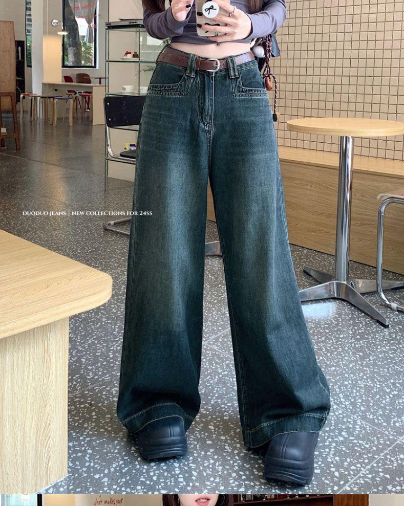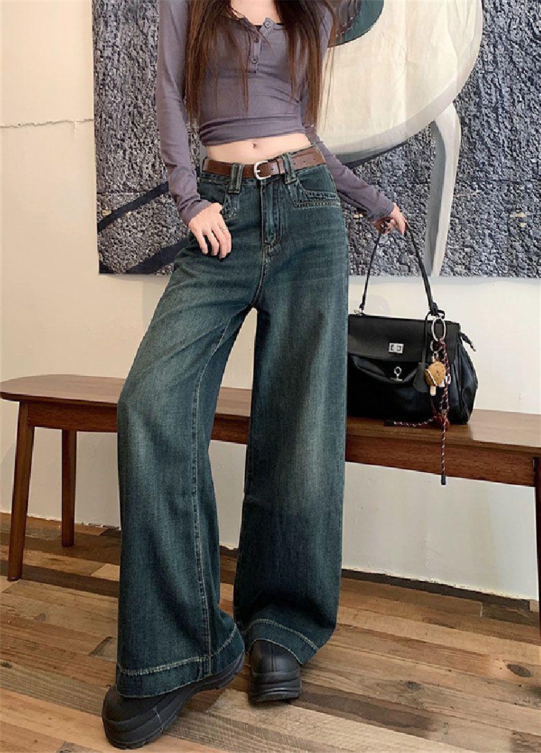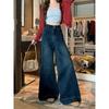 Pantalones anchos de pierna ancha para mujer, vaqueros de cintura alta elásticos azules nostálgicos, de moda 2025, primavera