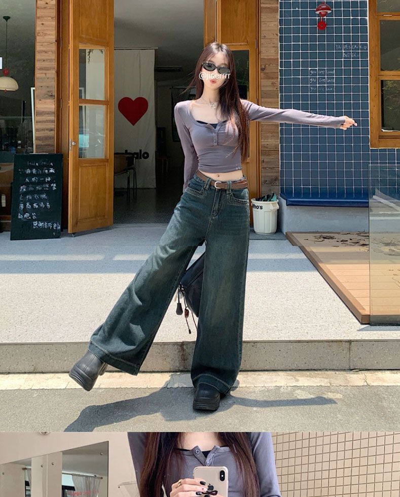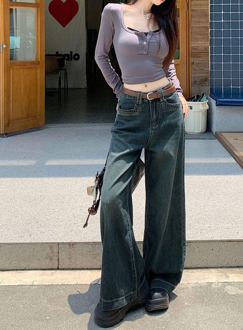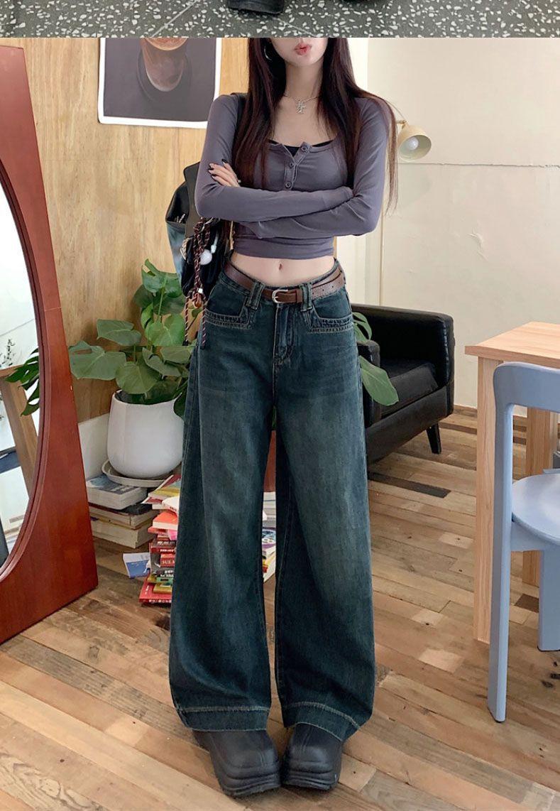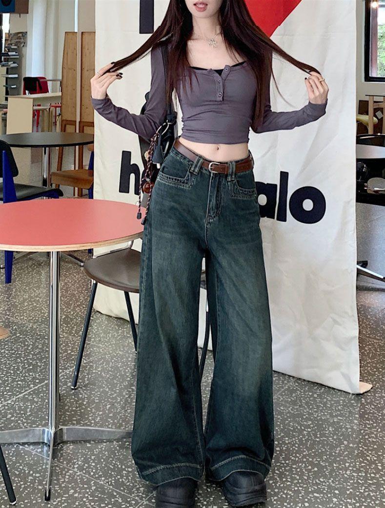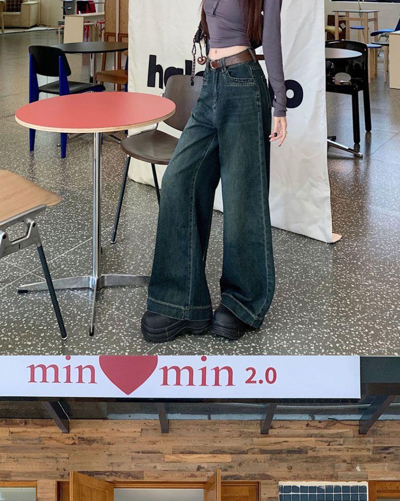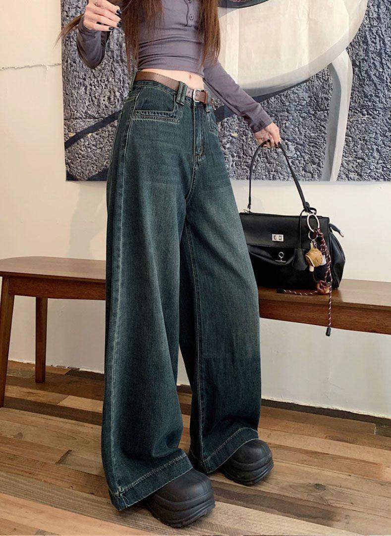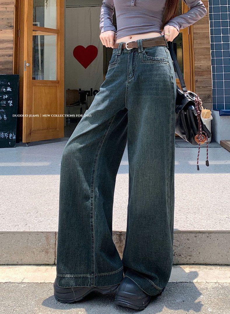 Pantalones anchos de pierna ancha para mujer, vaqueros de cintura alta elásticos azules nostálgicos, de moda 2025, primavera