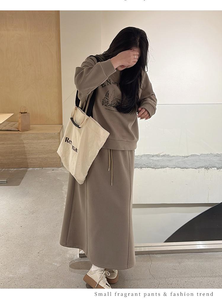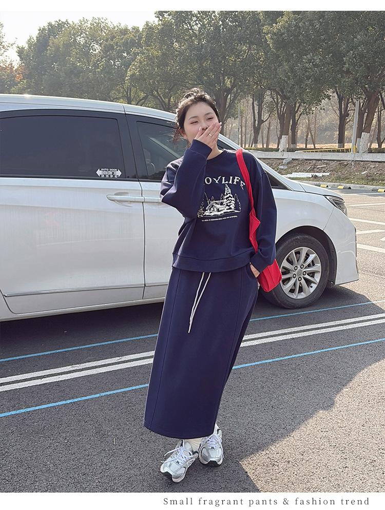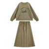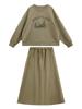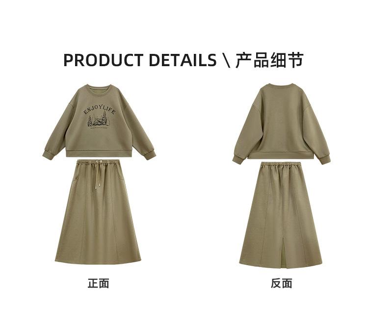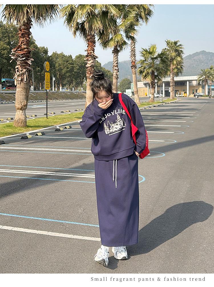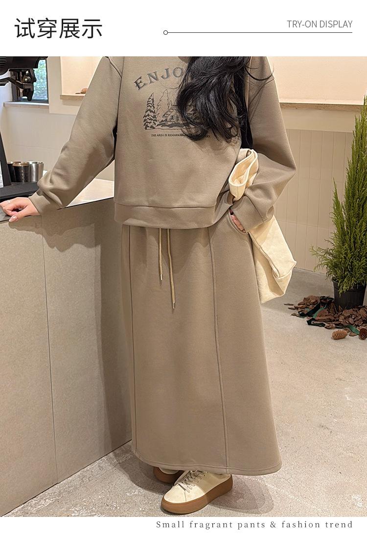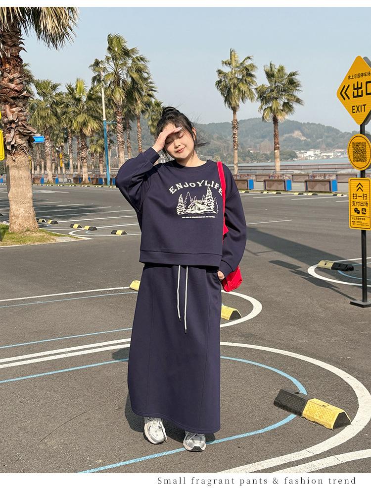 Talla grande Traje de falda sudadera estampada de otoño para mujer Cómodo Estilo holgazán Top Falda midi Conjunto de dos piezas