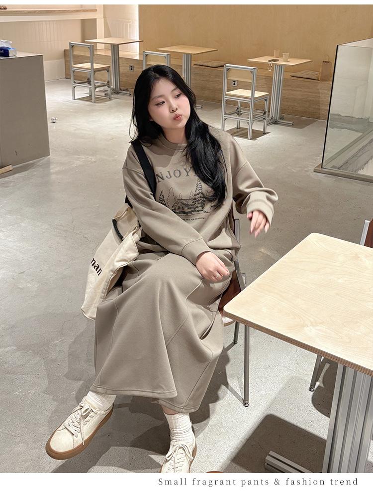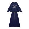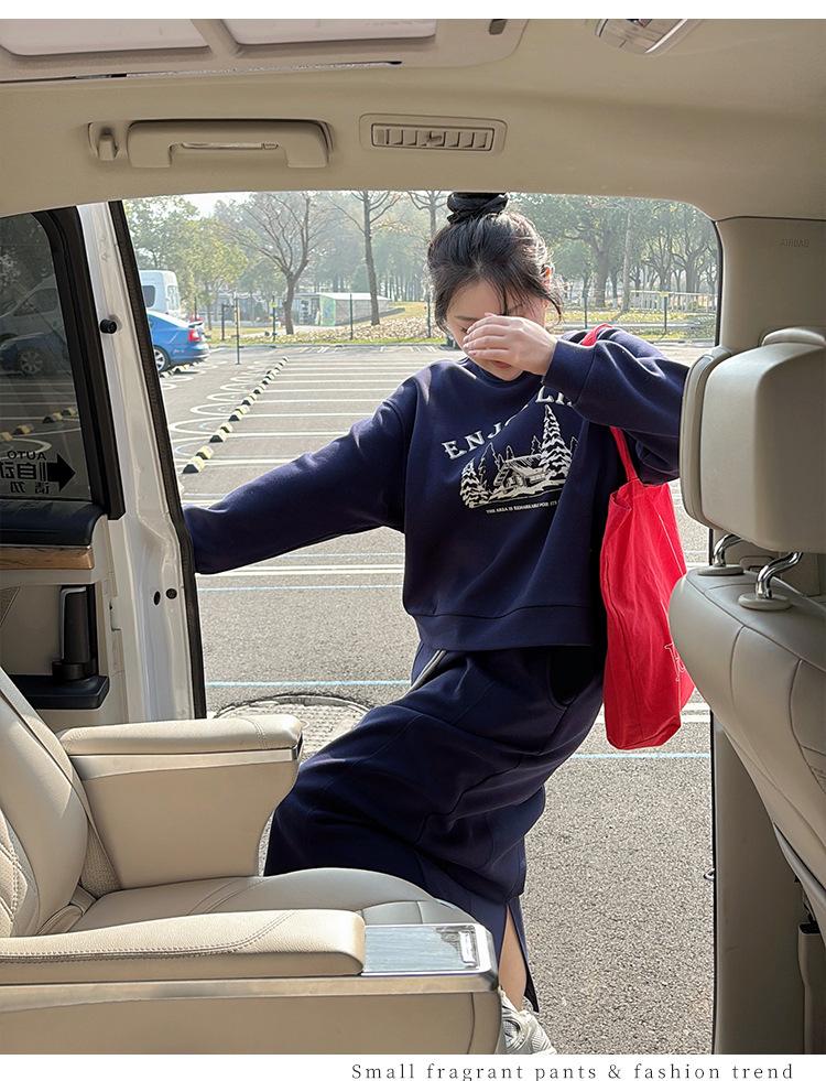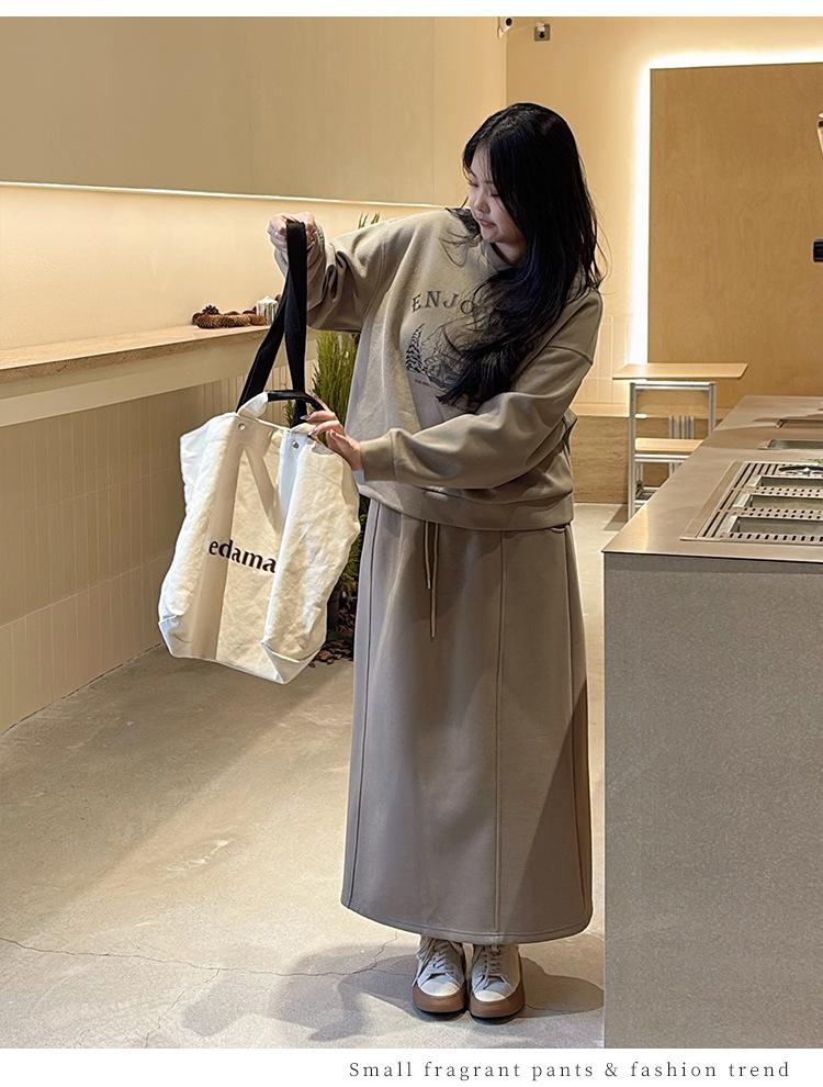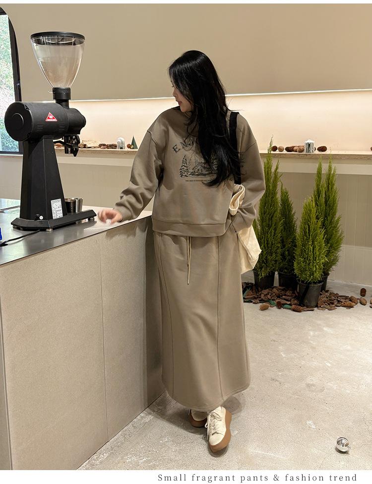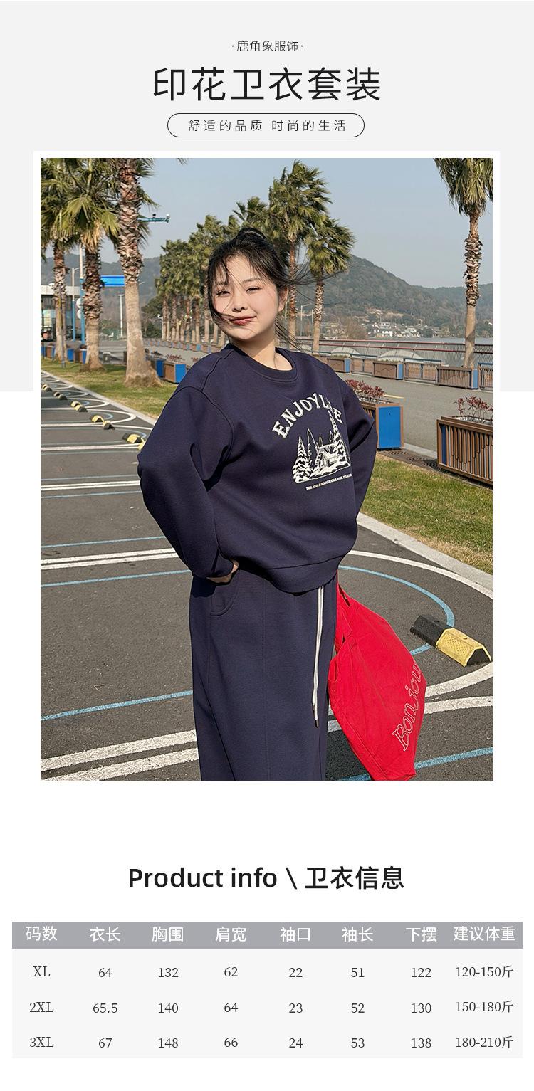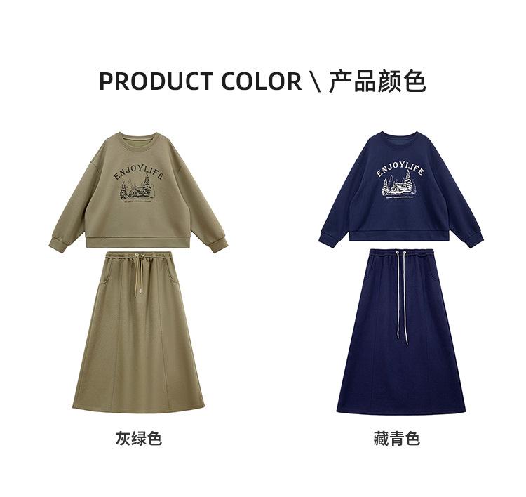 Talla grande Traje de falda sudadera estampada de otoño para mujer Cómodo Estilo holgazán Top Falda midi Conjunto de dos piezas