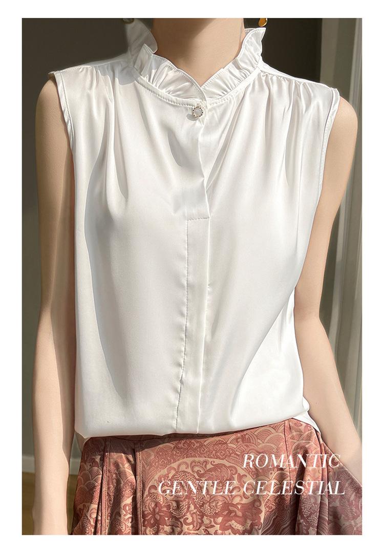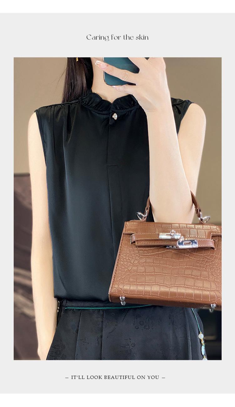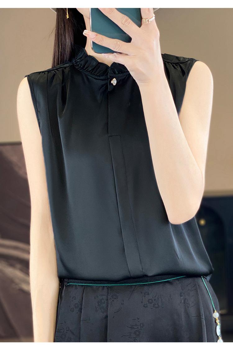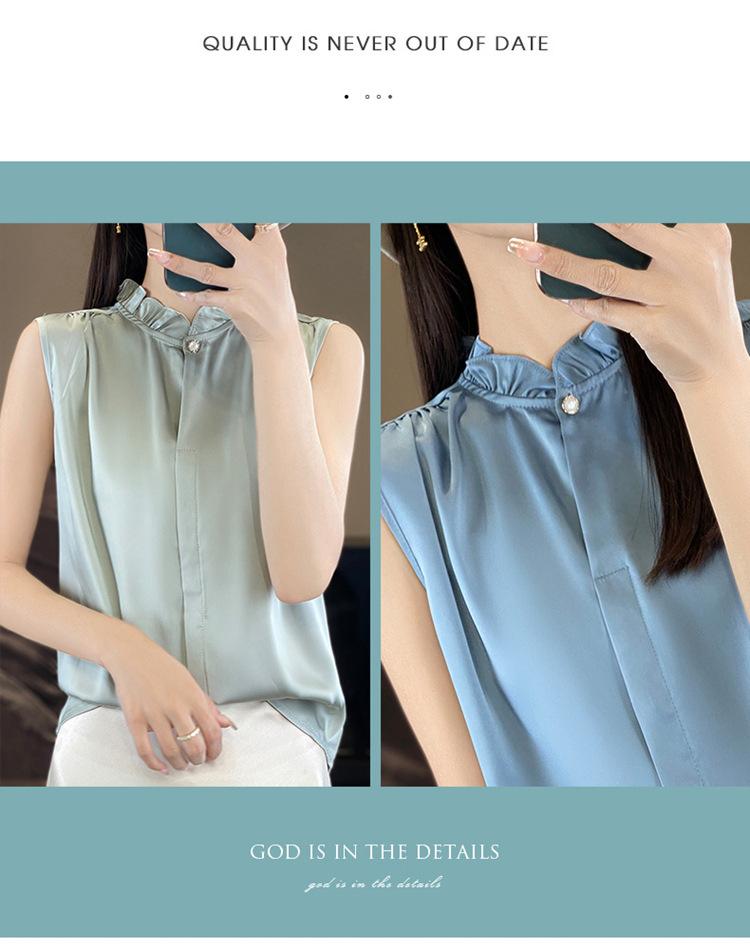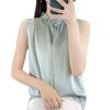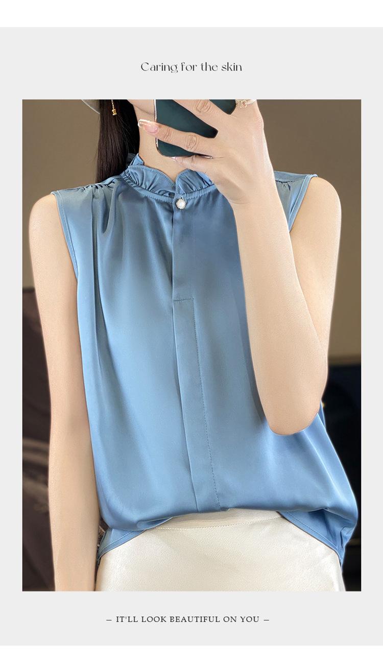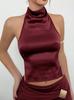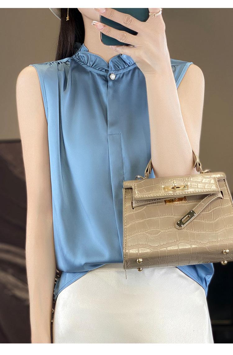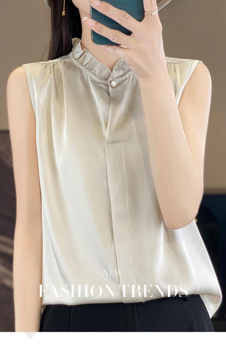 Blusa sin mangas para mujer con tirantes en la espalda, de satén, con cuello alto, elegante camisa francesa para uso exterior.